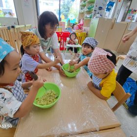 2025.10.10 先生のブログ パラバルーン&ボール遊び 今日はパラバルーンとミニボールを出して遊びました🤗 パラバルーンで音楽に合わせてユラユラ揺らした […] もっと見る 2025.10.09 先生のブログ 新聞紙遊び\(^^)/ 今日はお部屋で新聞紙遊びをしました\(^^)/ 新聞紙でお布団にしたり、お洋服やハチマキにしたり […] もっと見る 2025.10.08 先生のブログ どんぐり拾ったよ♥️ 今日は松の木林にどんぐりを拾いに行きました😆 途中田んぼで収穫前のお米の稲🌾を見たり、工事中の大 […] もっと見る 2025.10.07 先生のブログ 住宅内公園🎶 今日は住宅内公園に遊びに行きました😆 最近滑り台に挑戦するお友達が増え、登って、滑ってを楽しんで […] もっと見る 2025.10.03 先生のブログ 雨が降る前に… 今日は雨が降る前にぞうさん公園に向かって出発しましたが、途中ポツポツ雨が降ってきたので、Uターン […] もっと見る 2025.10.01 先生のブログ 公園へ🎶🎶 10月に入りましたね😊 今日から新しい女の子のお友達が増え、ますます賑やかな緑地園です(^o^) […] もっと見る 2025.09.30 先生のブログ お誕生日会&お別れ会 今日は9月のお誕生日会🎉✨😆✨🎊 今月お誕生日を迎えたのは3名のお友達♥️ それぞれ1人ずつカー […] もっと見る 2025.09.25 先生のブログ 🍠クッキング🍠 今日は皆でクッキング\(^^)/ スィートポテトを作りました🤗 茹でたさつまいもを順番に潰して、 […] もっと見る 2025.09.24 先生のブログ 避難訓練しました 一気に秋の季節がやってきましたね😆 今日は強い暴風を想定した避難訓練をしました。 窓ガラスが割れ […] もっと見る 2025.09.17 先生のブログ 公園~\(^^)/ 子ども達が待ちにまった公園へ\(^^)/ ずっと暑くて行けなかった外遊びに皆、ニコニコ笑顔で準備 […] もっと見る 1 / 14512345...102030...NEXT