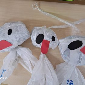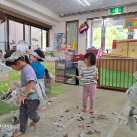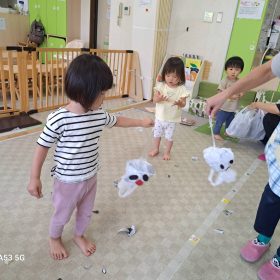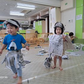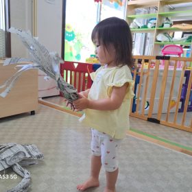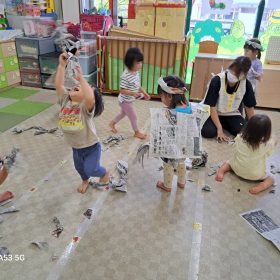 2025.10.09 新聞紙遊び\(^^)/ 今日はお部屋で新聞紙遊びをしました\(^^)/ 新聞紙でお布団にしたり、お洋服やハチマキにしたり、ビリビリに破って、高い所からヒラヒラさせたり…😆 最後は遊んだ新聞紙を袋に詰めて、お化け👻に変身させて遊びました♥ 1人ひとり可愛いお化けができました🤗 楽しかったねー✨ PREV NEXT