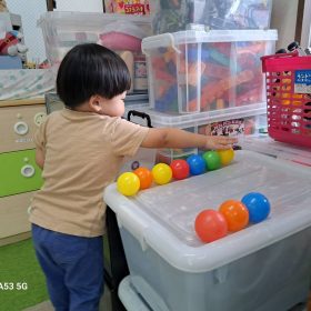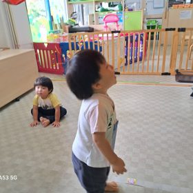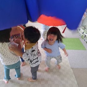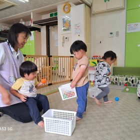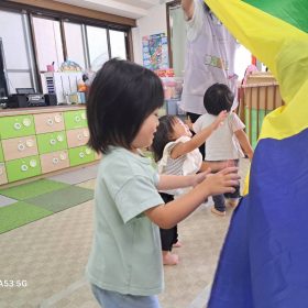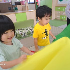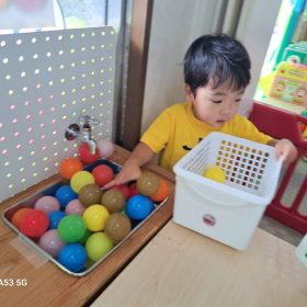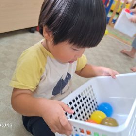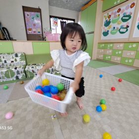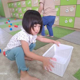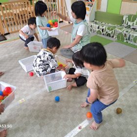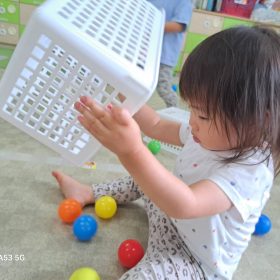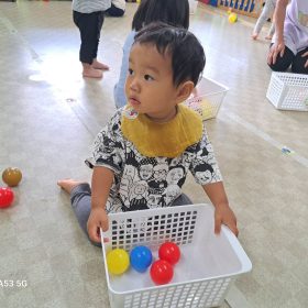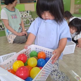 その後パラバルーンで出したボールをかごに集めたり、投げたりお部屋の中で元気に遊びました\(^o^)/