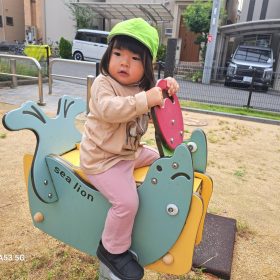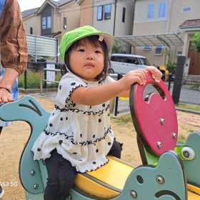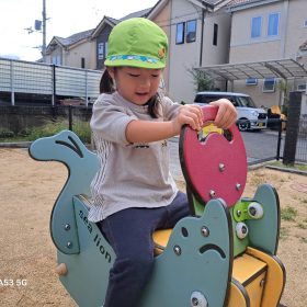 固定遊具に乗ってユラユラしたり、手を真っ黒にしながら砂遊びに夢中の子ども達でした♥️