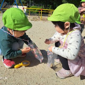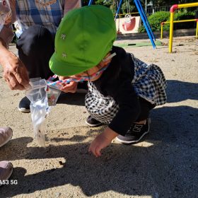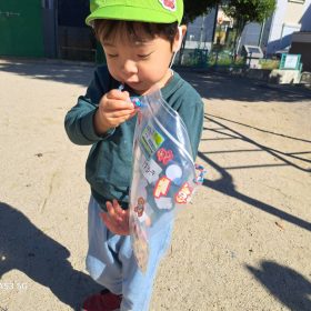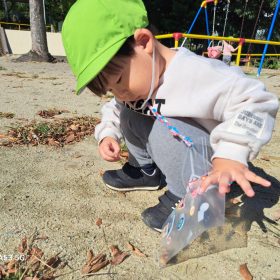 小さなどんぐりを1つひとつ拾って自分のかばんに一生懸命入れている姿がとても可愛いかったです♥️
