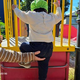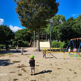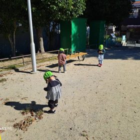 公園に到着して自分のバッグを首から掛けてもらい、どんぐり拾いへ🎶