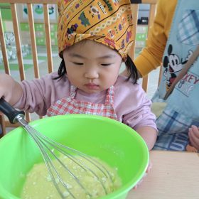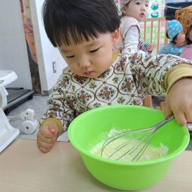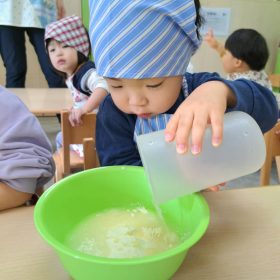 粉とお水を入れて、おいしくなぁれ~♥️の魔法をかけながら、順番にクルクル混ぜました\(^o^)/