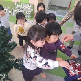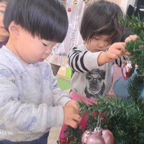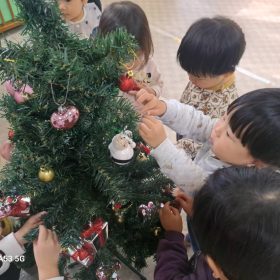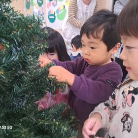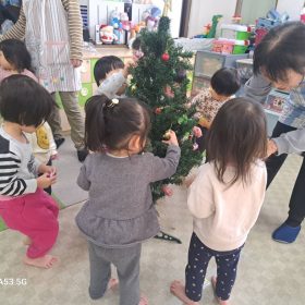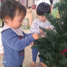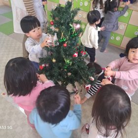 今日は保育園のクリスマスツリー🎄に皆で飾り付けをしました\(^o^)/