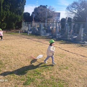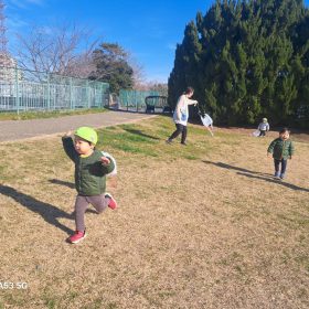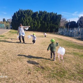 2026.01.07 凧上げ🪁したよ\(^o^)/ 昨日ビニール袋で作ったたこを持ってぐるぐる公園で凧上げ🪁をしました\(^o^)/ たこの紐を持って、広場の端から端まで走ったね😆 ビニール袋が風で膨らんで上手に上がったり、スピードが足りず、たこのお散歩状態になったり(笑)様々でしたが子ども達は皆楽しんで走り回っていました♥️ 楽しかったね🤗また皆で凧上げしようね🎶 PREV NEXT