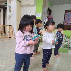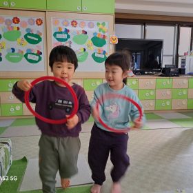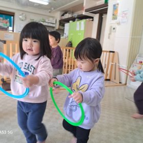 2026.01.08 🎶音楽に合わせて🎶 今日は丸い輪を持って、音楽に合わせて体操したり、運転手さんになって遊びました♥️ 首に掛けたり、くるくる回したり、先生の真似っこしながら楽しく身体を動かしました\(^o^)/ 鈴を持って楽器遊びもし、皆ノリノリ💃でリンリン元気な鈴の音がお部屋の中に響き渡りました🎵 楽しかったねー🥰 PREV NEXT
