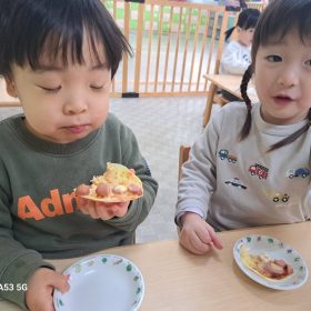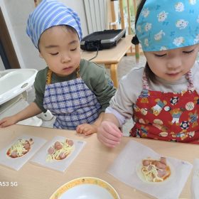 ウィンナーがいっぱいのピザやチーズたっぷりのピザやコーンは少なめ等それぞれ自分好みのピザが仕上がりました♥️
