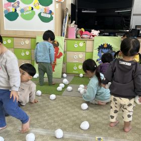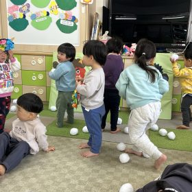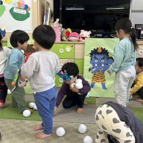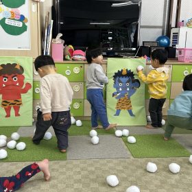 2026.02.03 節分👹 今日は節分👹 お話を聞いてお歌を歌ったあと、自分で作った鬼のお面をつけて、青鬼、赤鬼の的に「おには〜そと〜‼」と豆のかわりにふわふわのボールを投げて鬼退治 ボールを拾っては投げ、拾っては投げ(^O^) いっぱい頑張ったね‼ みんなの頑張りで鬼は退散👹 みんなのお家にもいっぱい福が来ますように🥰💕 PREV NEXT