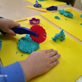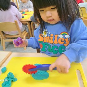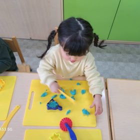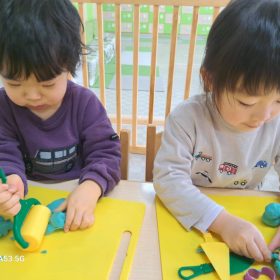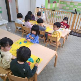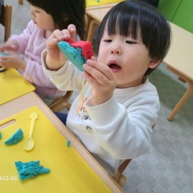 2026.02.05 粘土遊び\(^o^)/ 今日は粘土遊びをしました\(^o^)/ 型抜きやヘラや棒等の道具を使って、工夫しながら楽しんで取り組んでいました♥️ ヘビ🐍やお団子🍡雪だるま⛄、型抜きではお花やお星様等、色んな形ができました😆 お友達と道具を交換しながら出来た作品を、見せ合いっこする姿はとても可愛いかったです🤗 皆上手にできたね💮 PREV NEXT