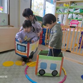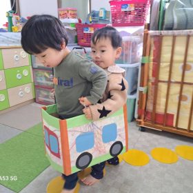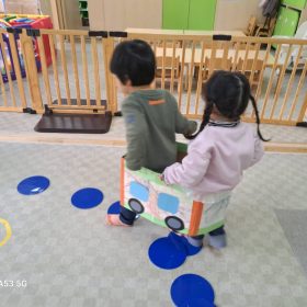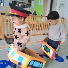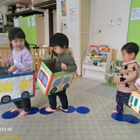 2026.02.10 🚃出発進行!🚃 今日は電車ごっこをして遊びました\(^o^)/ パネルで線路、フープで駅をつくって順番に運転手さんの帽子を被って、出発進行~!! 脱線しないように線路の上を上手に走って、駅で止まったり、お客さんを乗せてあげたり、お友達と関わりながら楽しく遊びました♥️ 最後は暴走列車がいっぱいでしたが🤣皆元気一杯の緑地園電車でした🤗楽しかったね😆 PREV NEXT