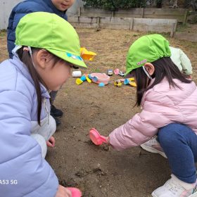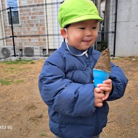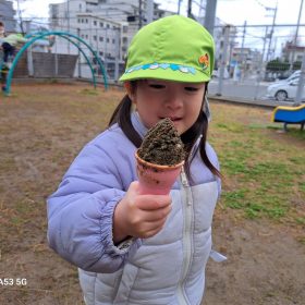 昨日の雨で少し地面が湿っていましたが、砂遊びで型抜きをするには最高で😆ケーキ🍰にアイス🍦などきれいに形が作れて、子ども達も楽しんで遊ぶ事ができました😆
