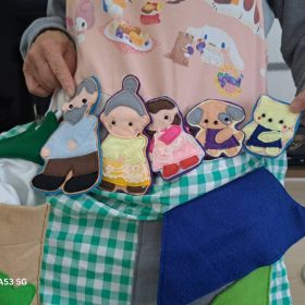 おじいちゃん、おばあちゃん、孫娘…とエプロンから出てくる登場人物にくぎ付けの子ども達🤭