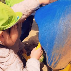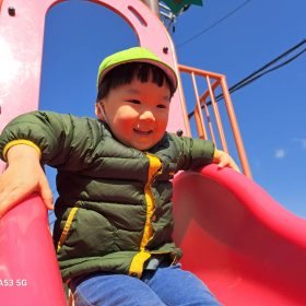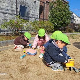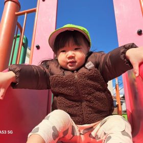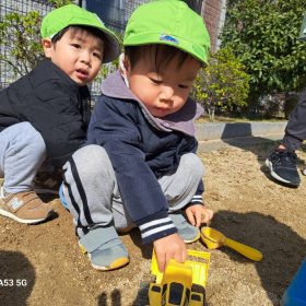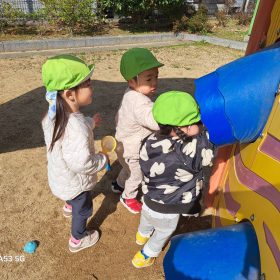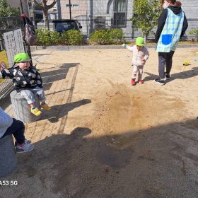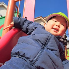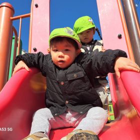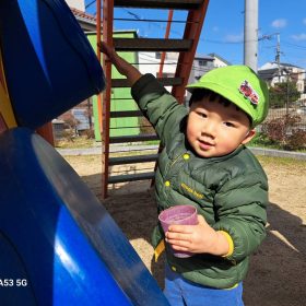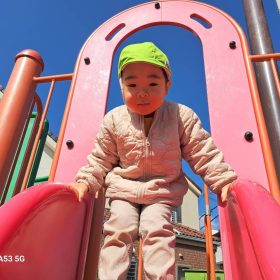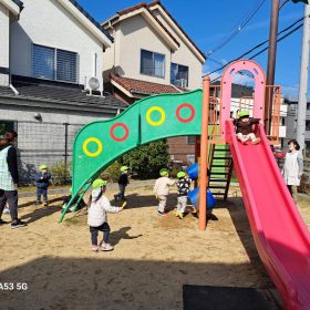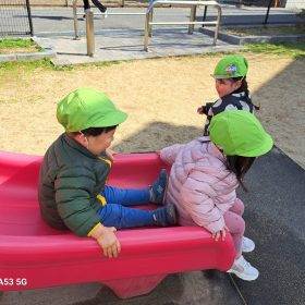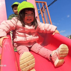 ポカポカ陽気の中、久しぶりの滑り台に砂遊びと思う存分遊んで楽しい時間を過ごしました♥️