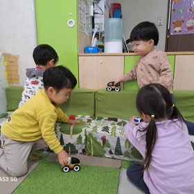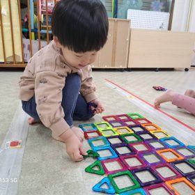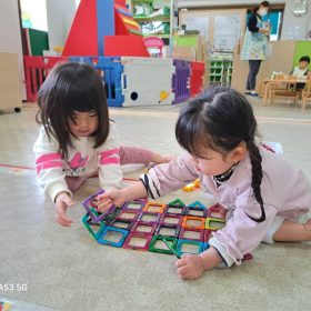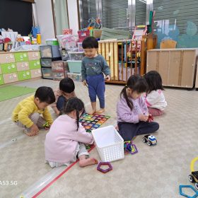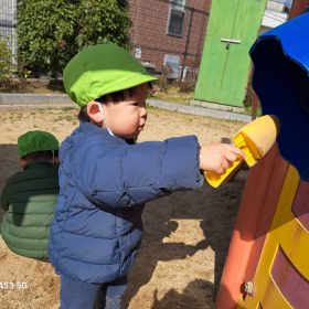 公園に着くと大きな水たまりを発見!!皆興味津々でキラキラ光る水面を覗き込んでいました😆