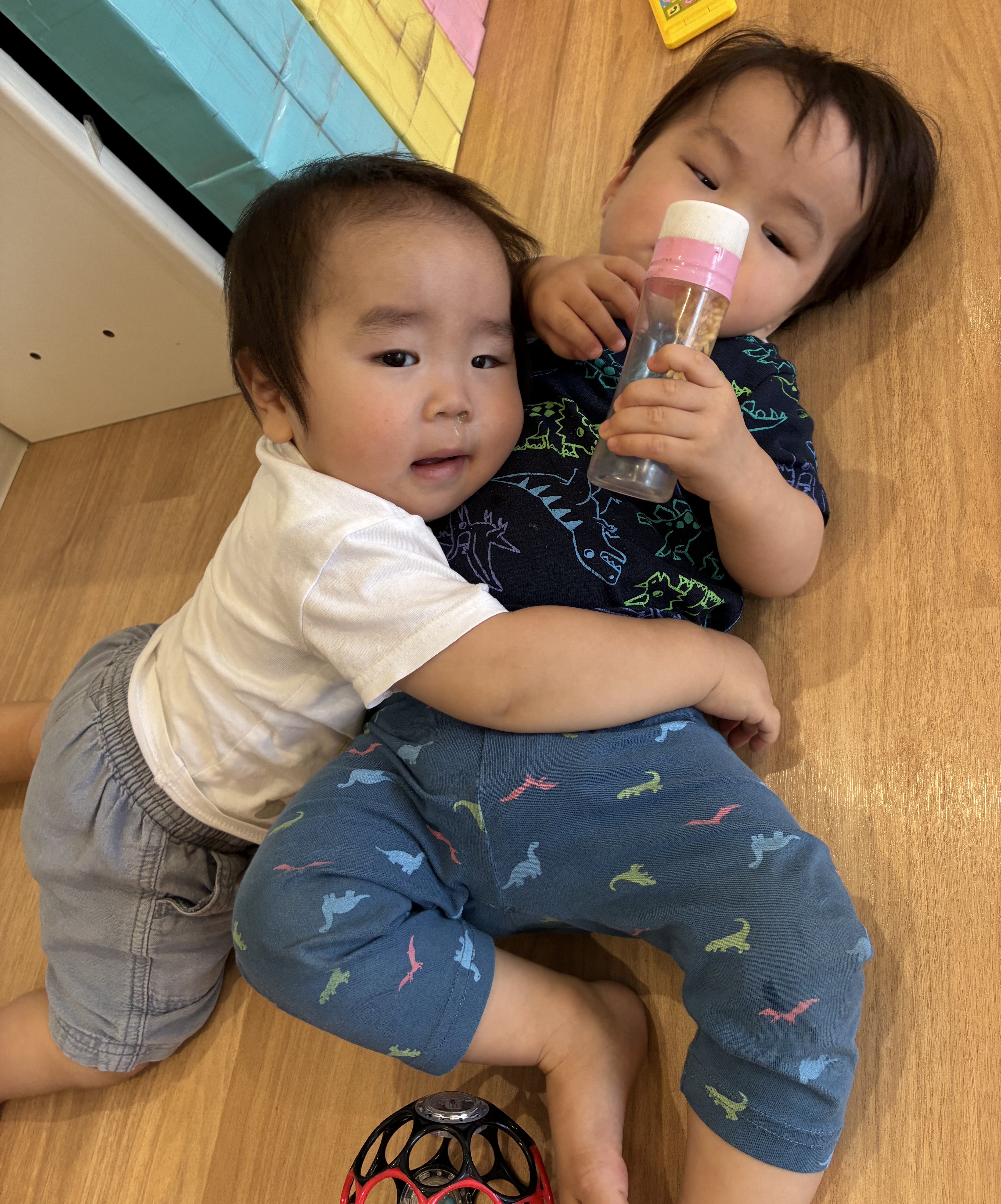 2025.09.22 みんな仲良し❤️ ゆきぐみ 本日も朝からご機嫌な子どもたち😁 「ここ開けて〜」と柵をガタガタ‥無事入れましたよ✨ 仲良くおやつの時間です 今朝は涼しかったので園庭に出ることにしました。が‥暑い🥵 早々に切り上げ、お部屋で遊ぶことにしました 床が気持ちいいのか、ゴロゴロしてる子が多いです。仲良しですね☺️ お昼寝の時、トントン待ちで寝落ち‥可愛過ぎます🥰 終わりの会ではノリノリでご挨拶してくれました🤣 今日も楽しいゆきぐみさんでした😊 PREV NEXT