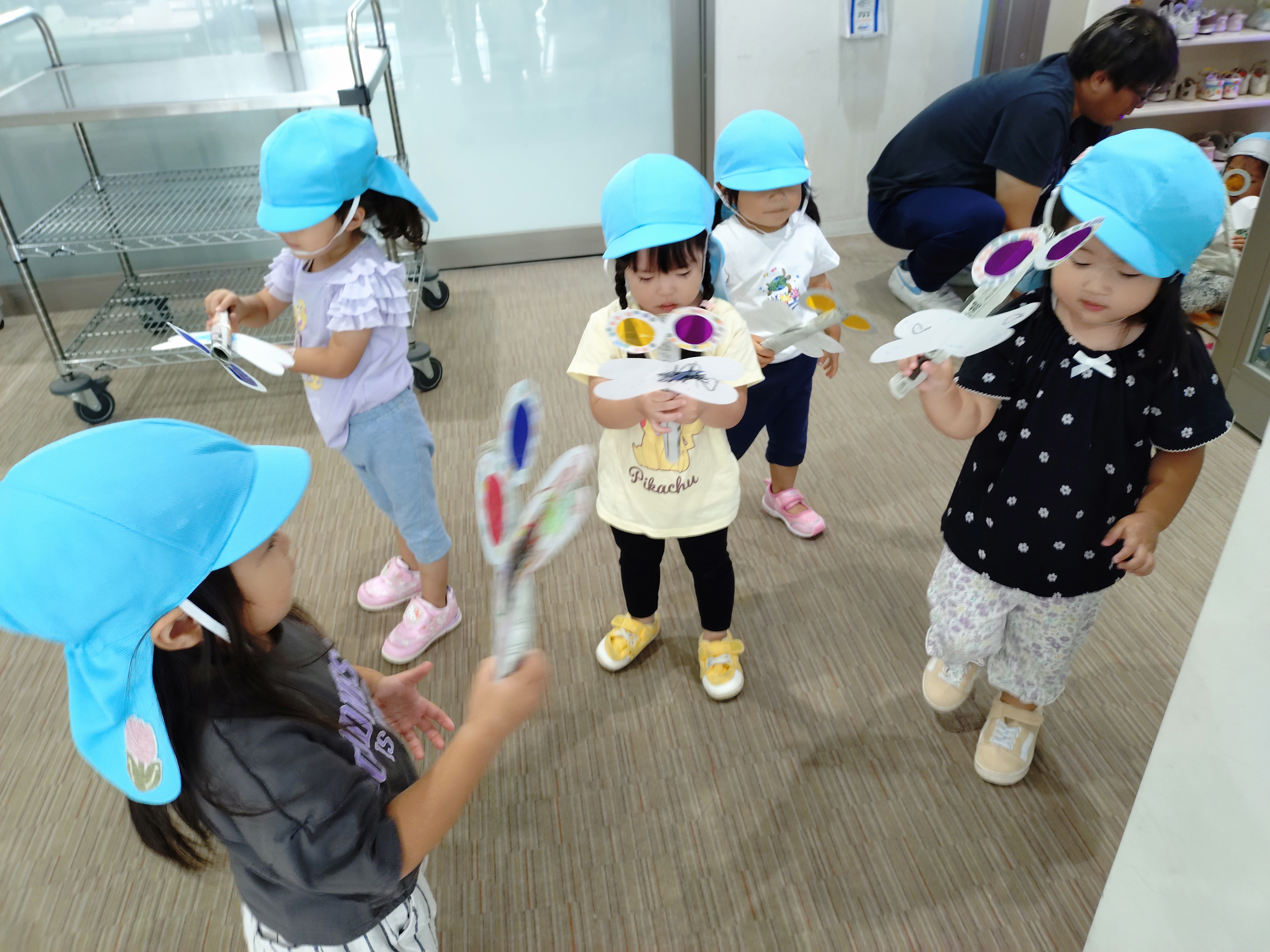 覗き込んだ世界を楽しんだり、カエルさんに眼鏡を掛けてみたり…と、思い思いに楽しんでいましたよ🎵