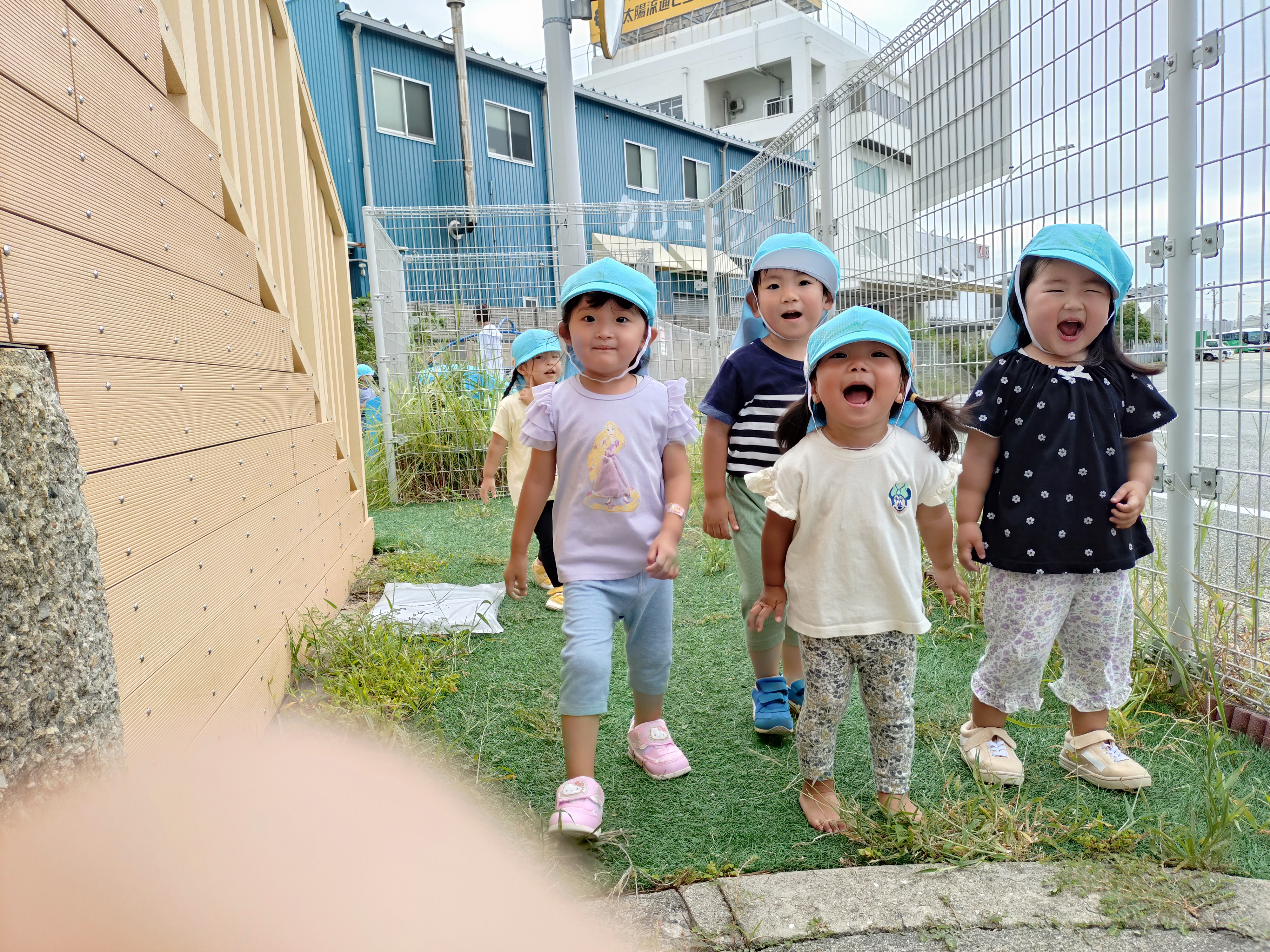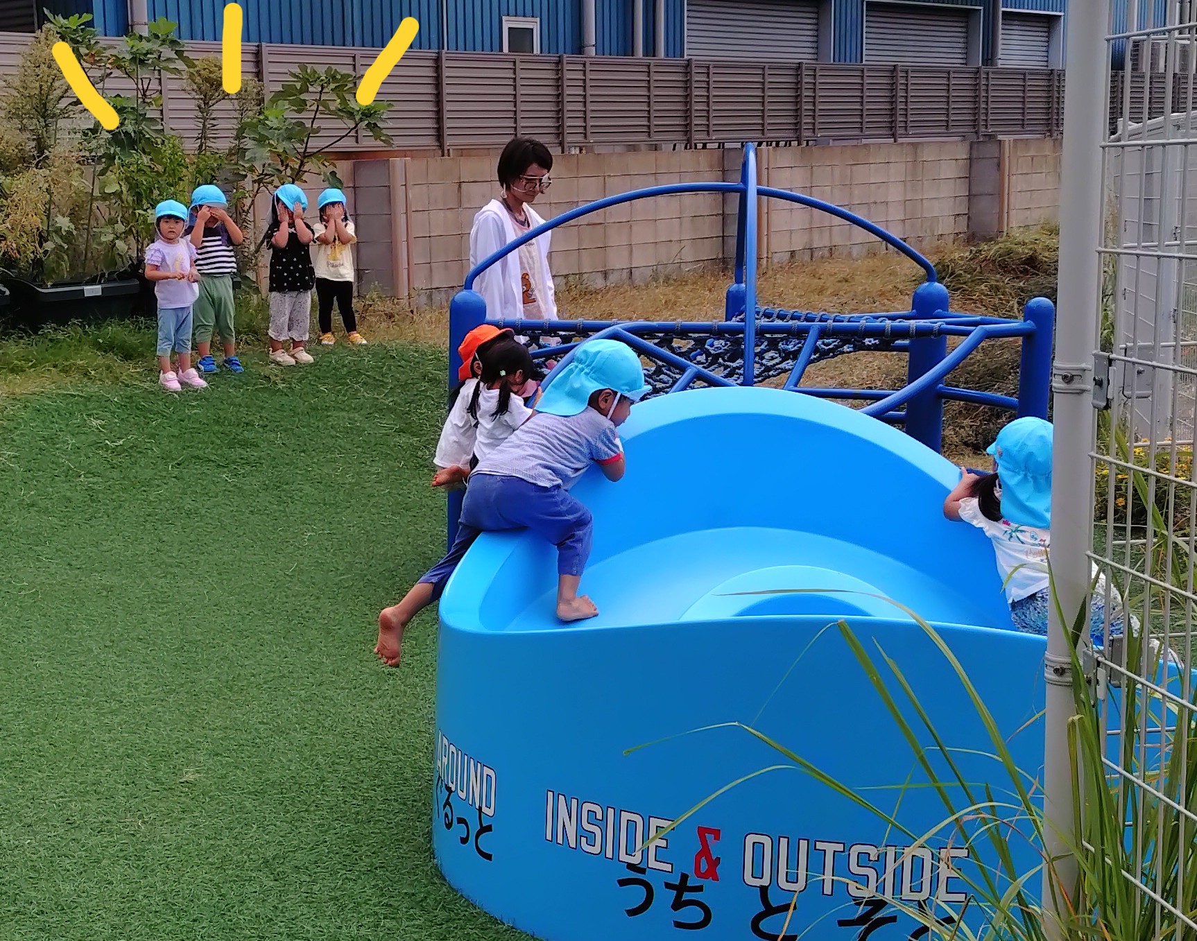 そのまま園庭に出たのですが、園庭でもかくれんぼが始まりましたよー!