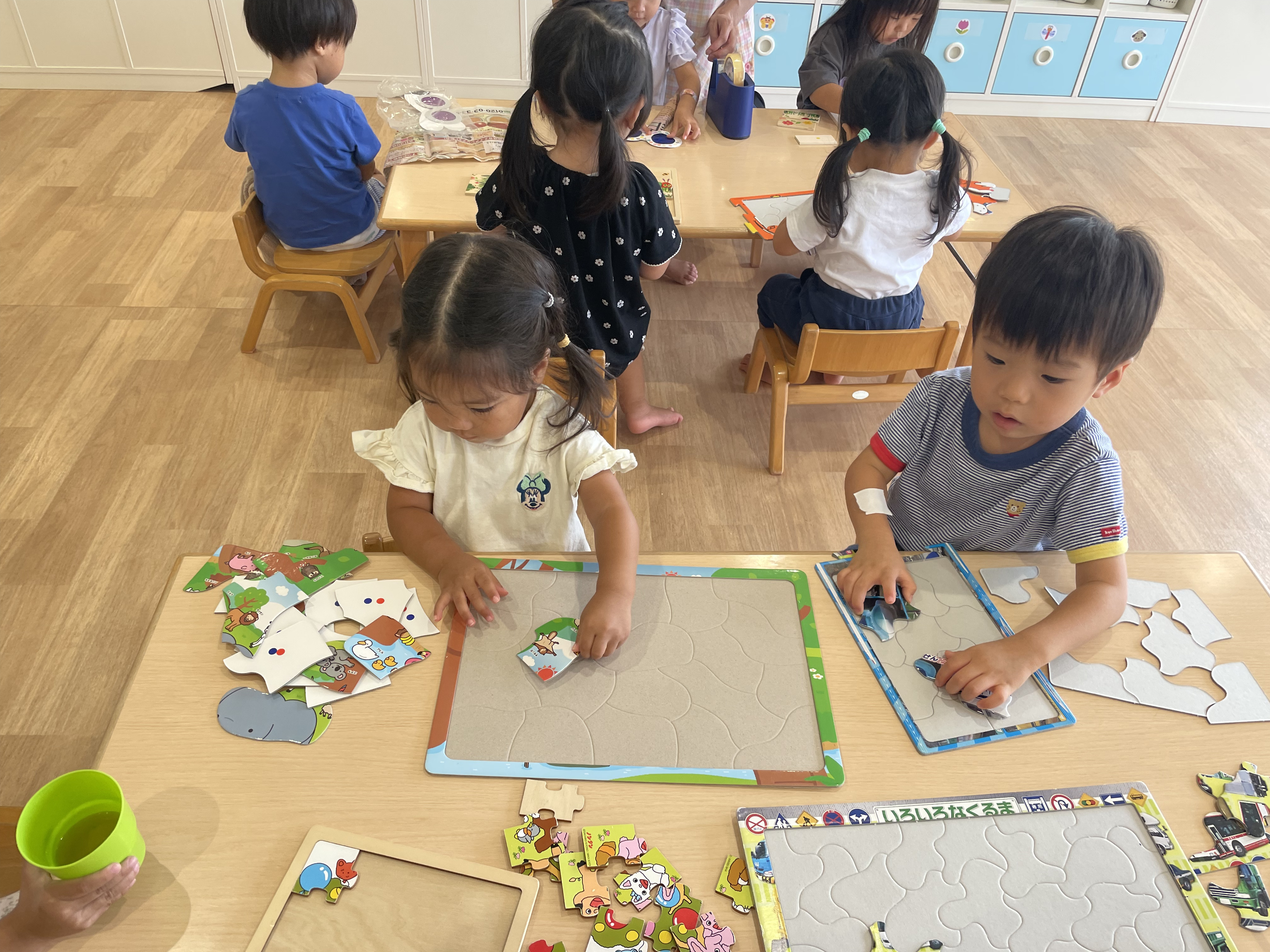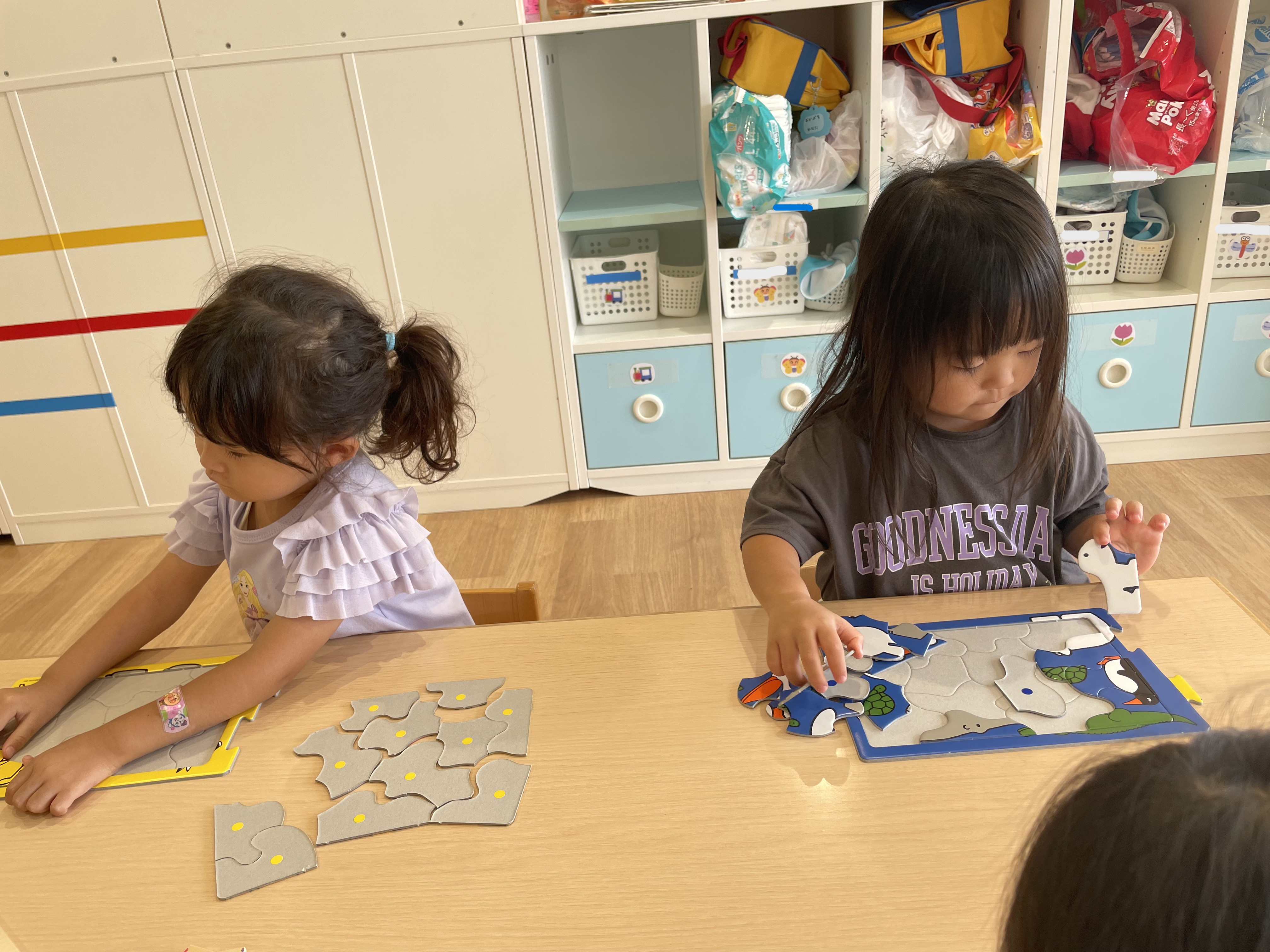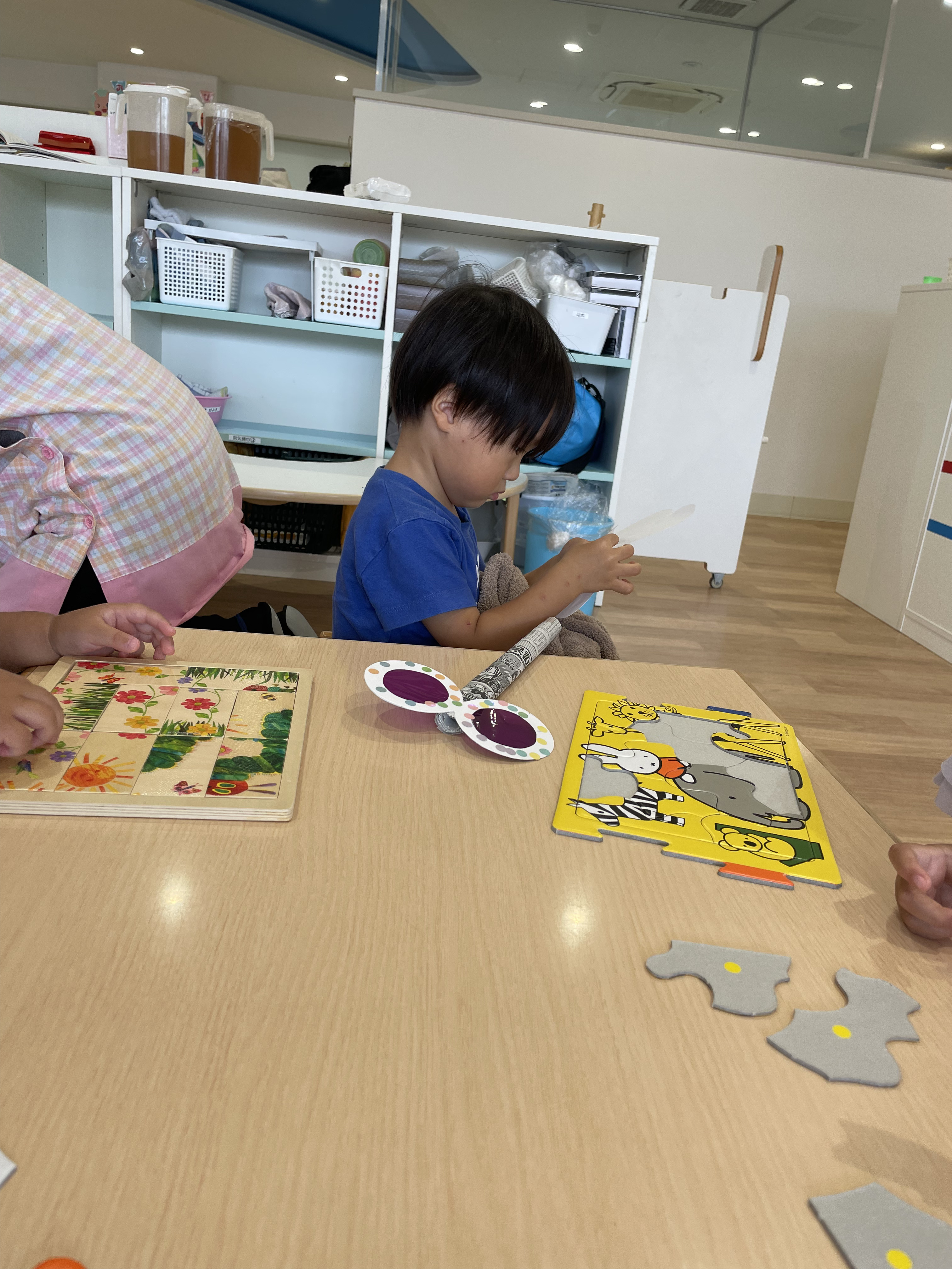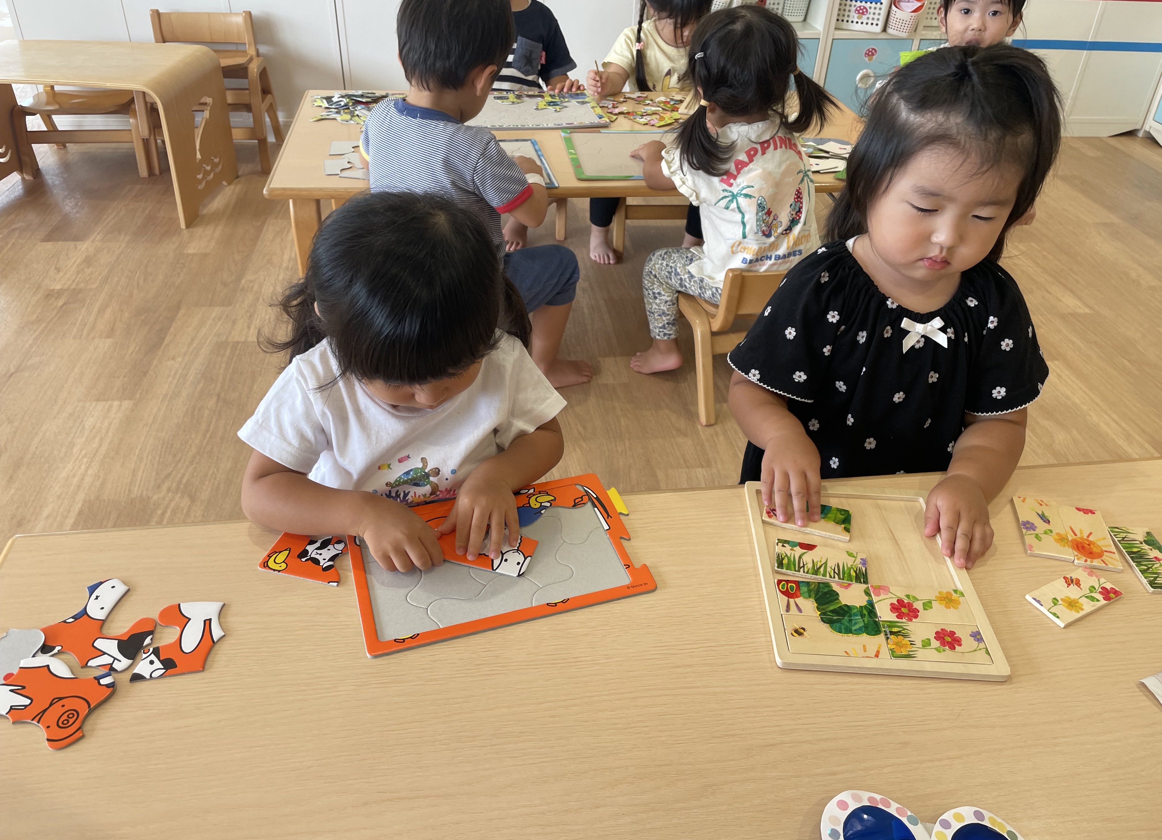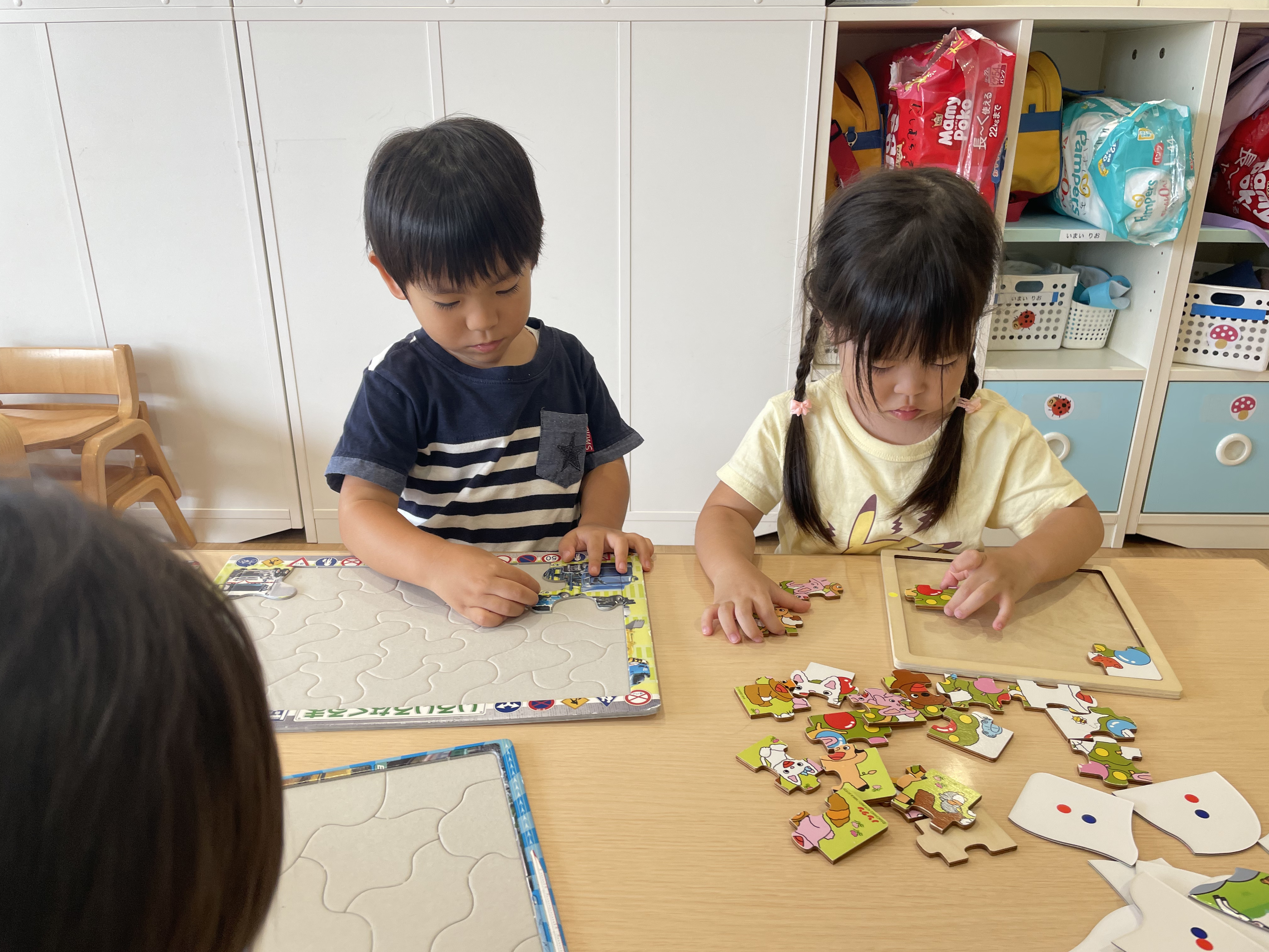 最初は解らず、「これはー?」「一緒にしようー」となかな出来なかったのですが、少しずつ好きな絵柄を覚え一人で完成させる事が出来る子も出てきていますよ!