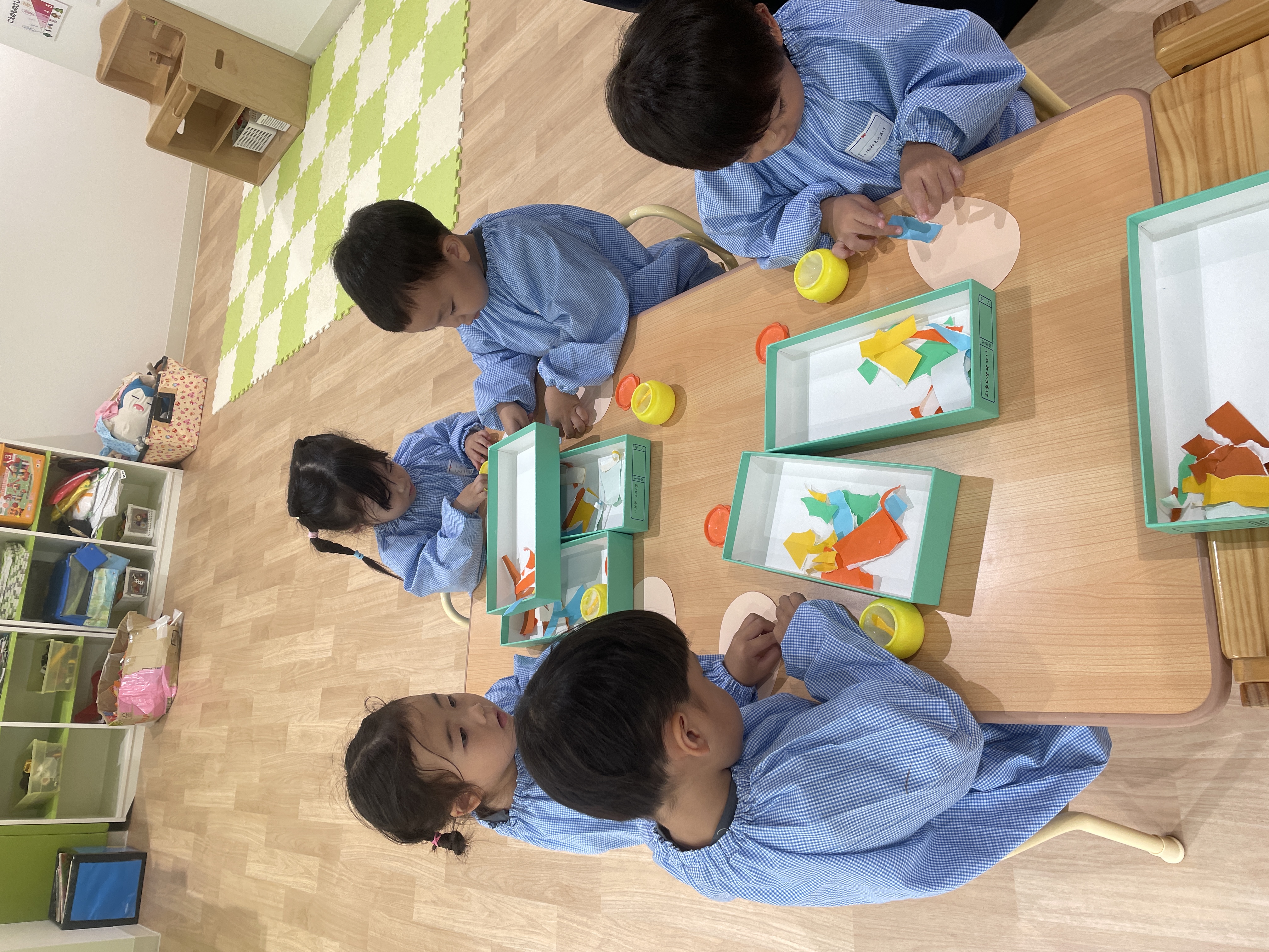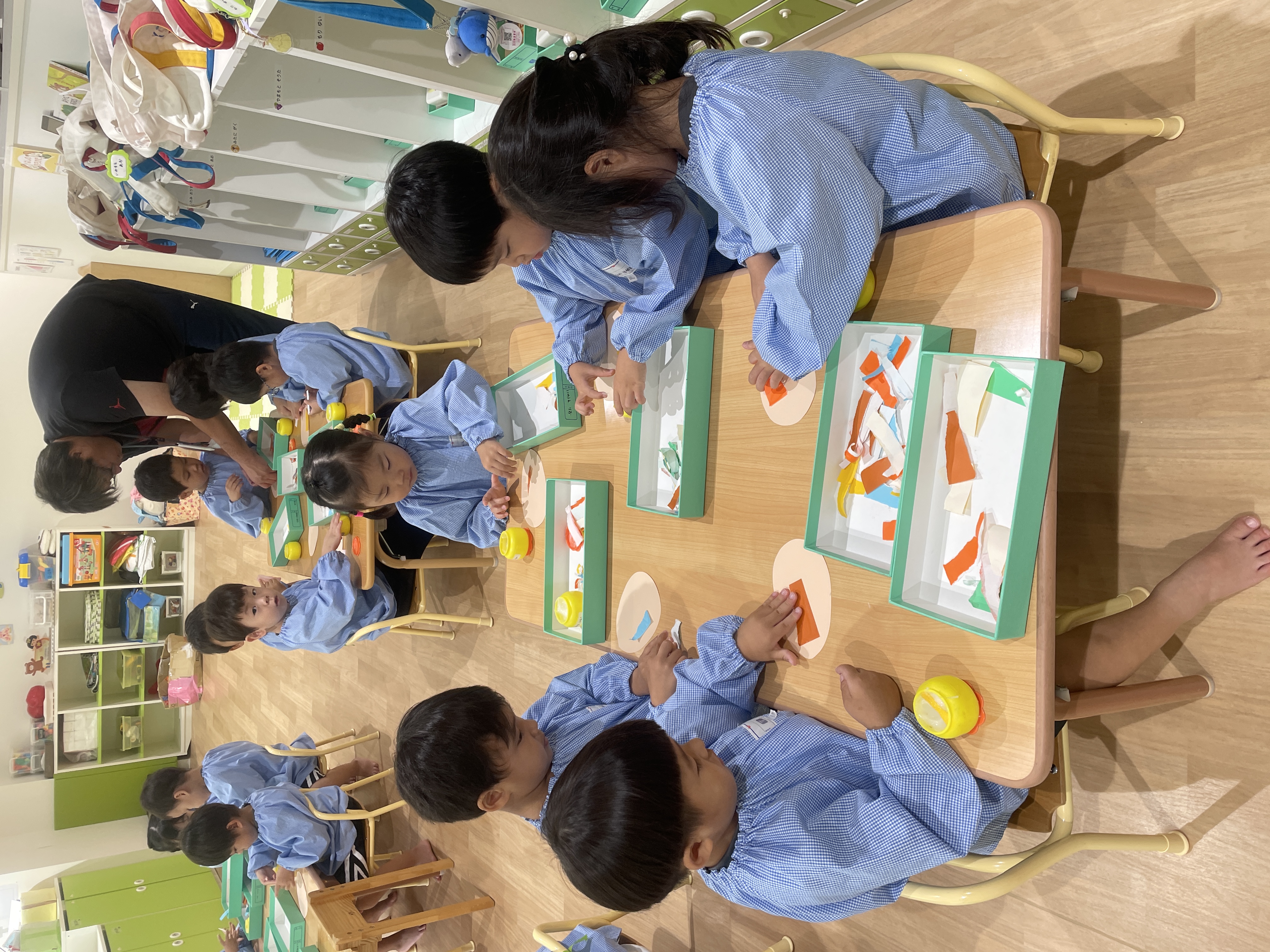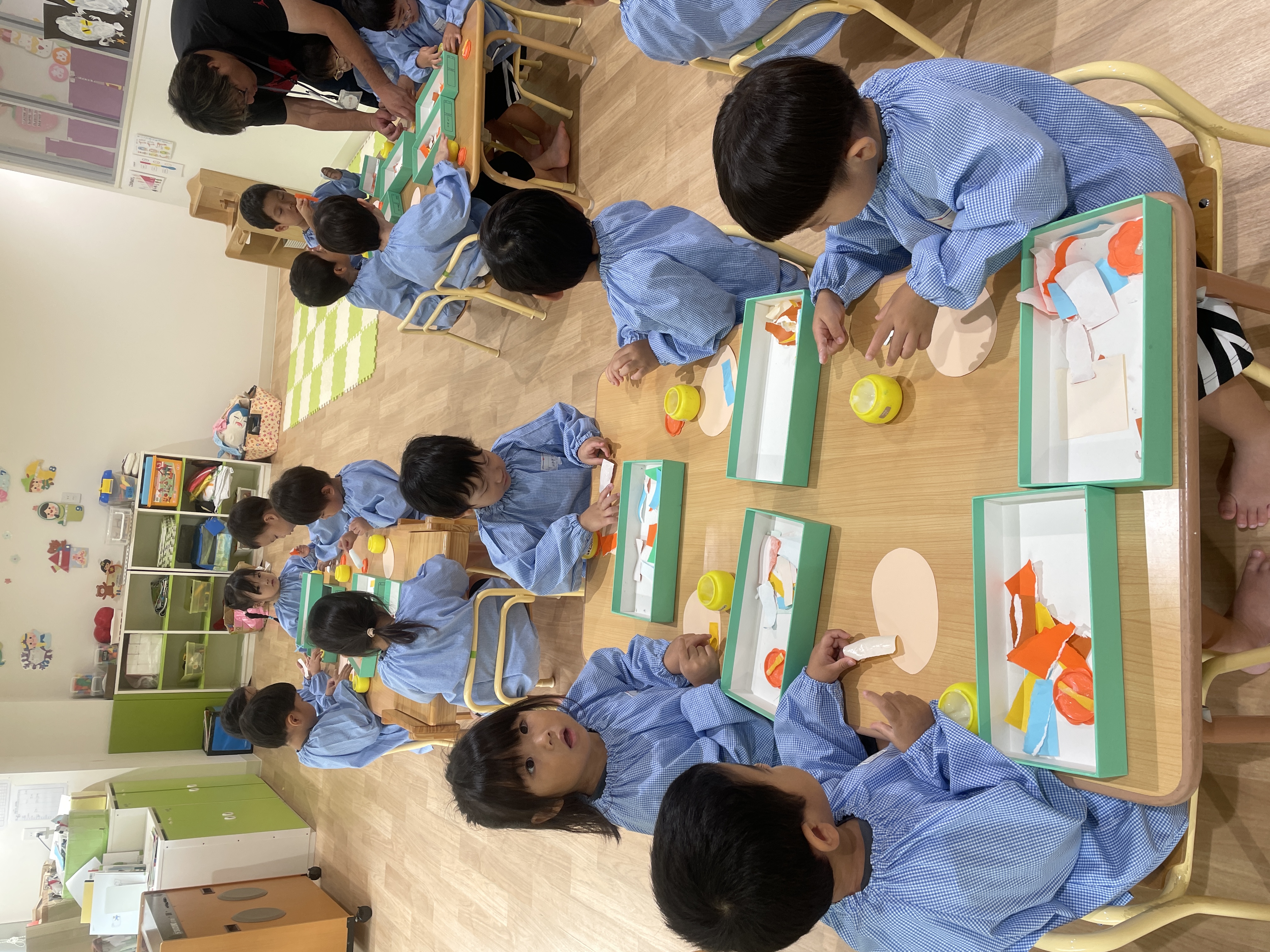 折り紙のちぎり方、貼り方、顔の表情が1つひとつちがうかわいい作品になりましたよ🥰