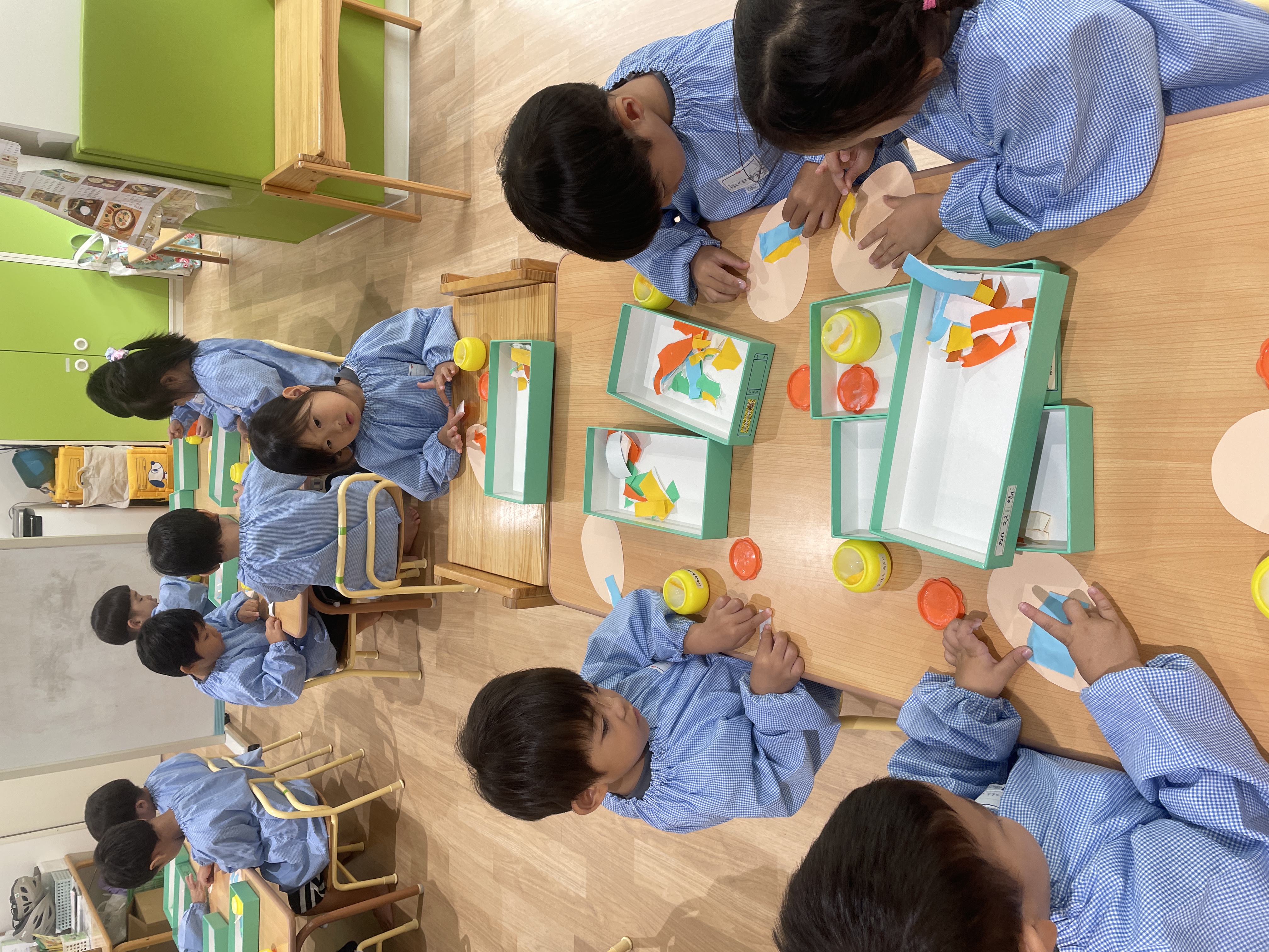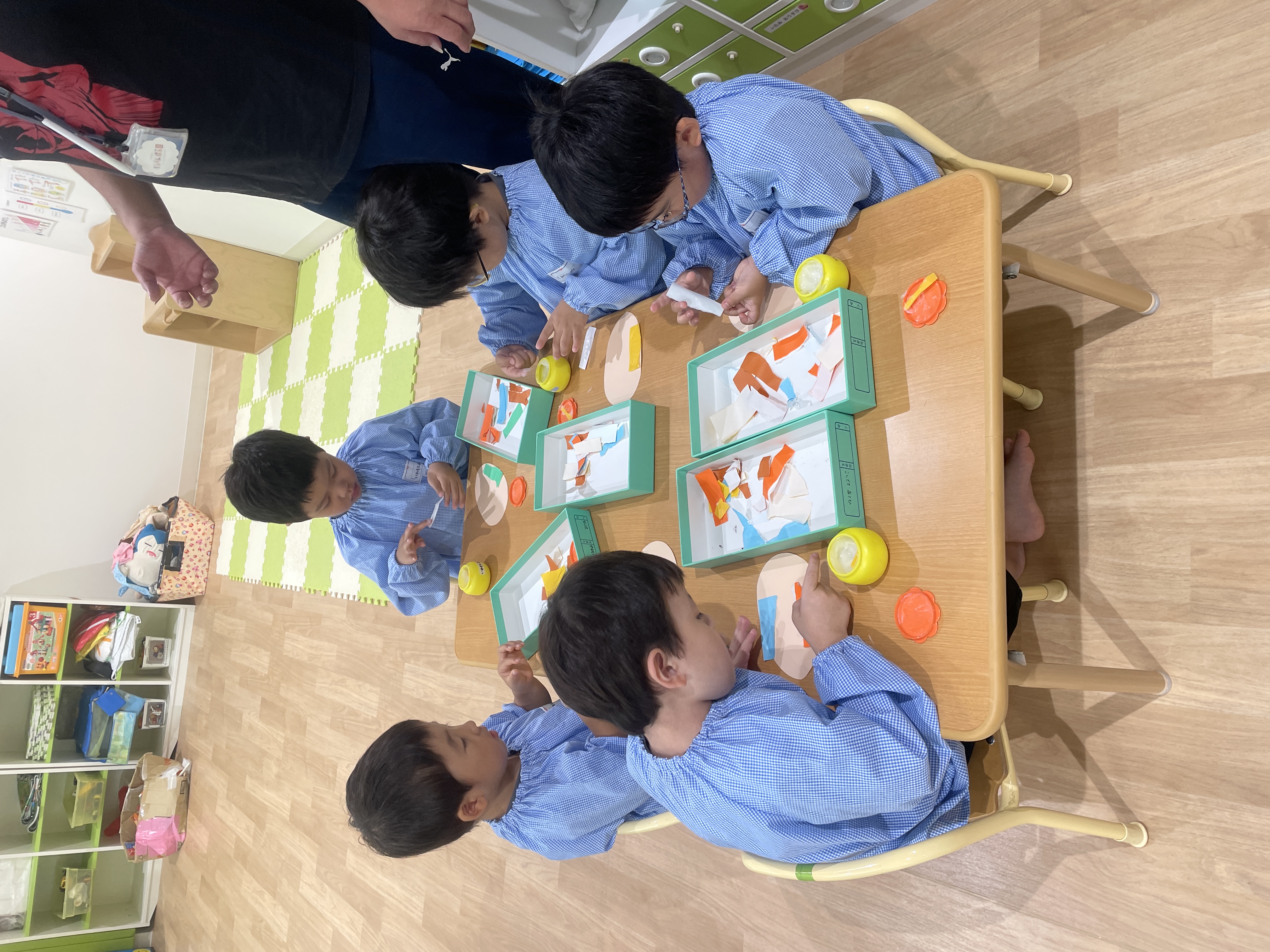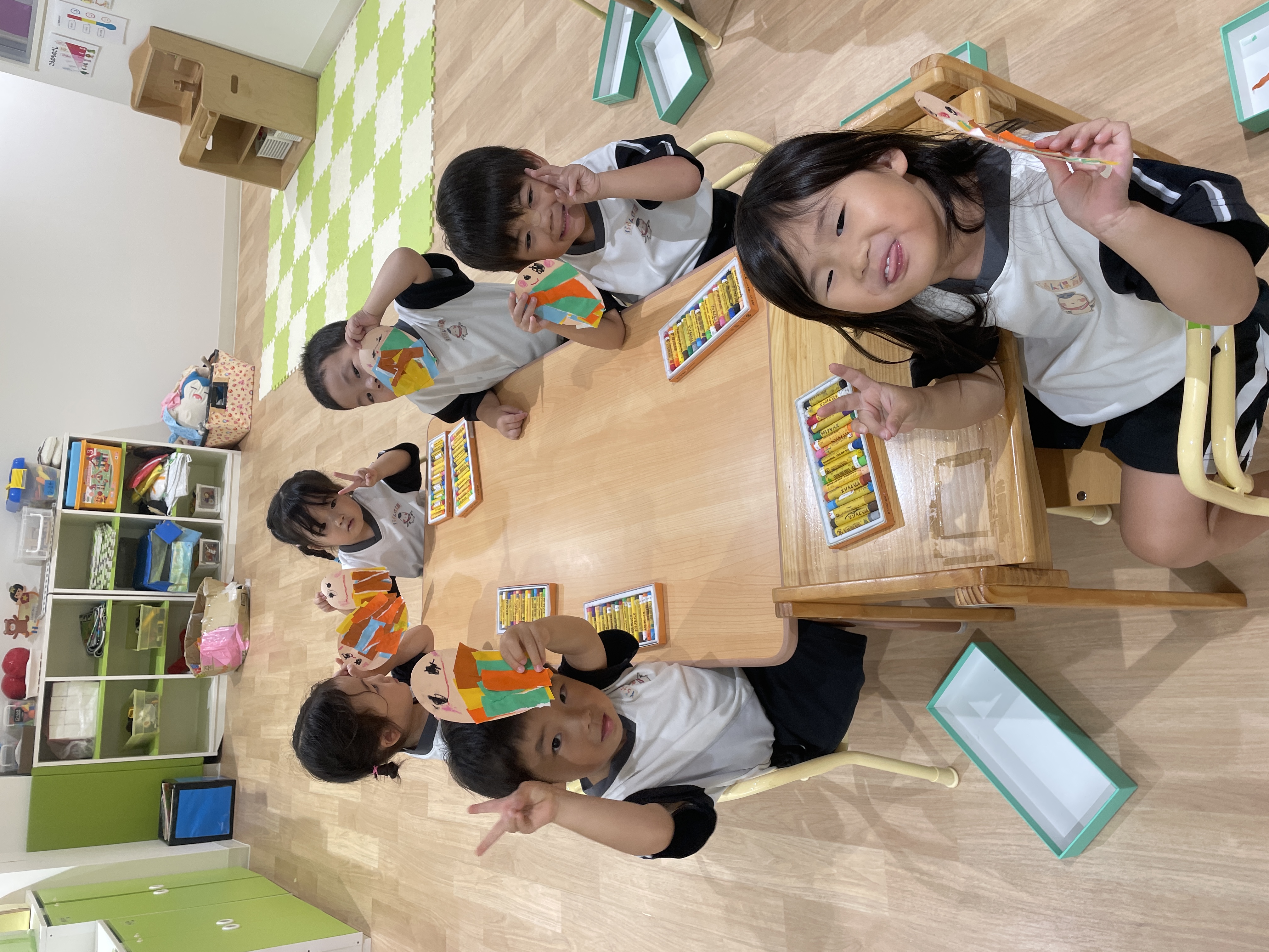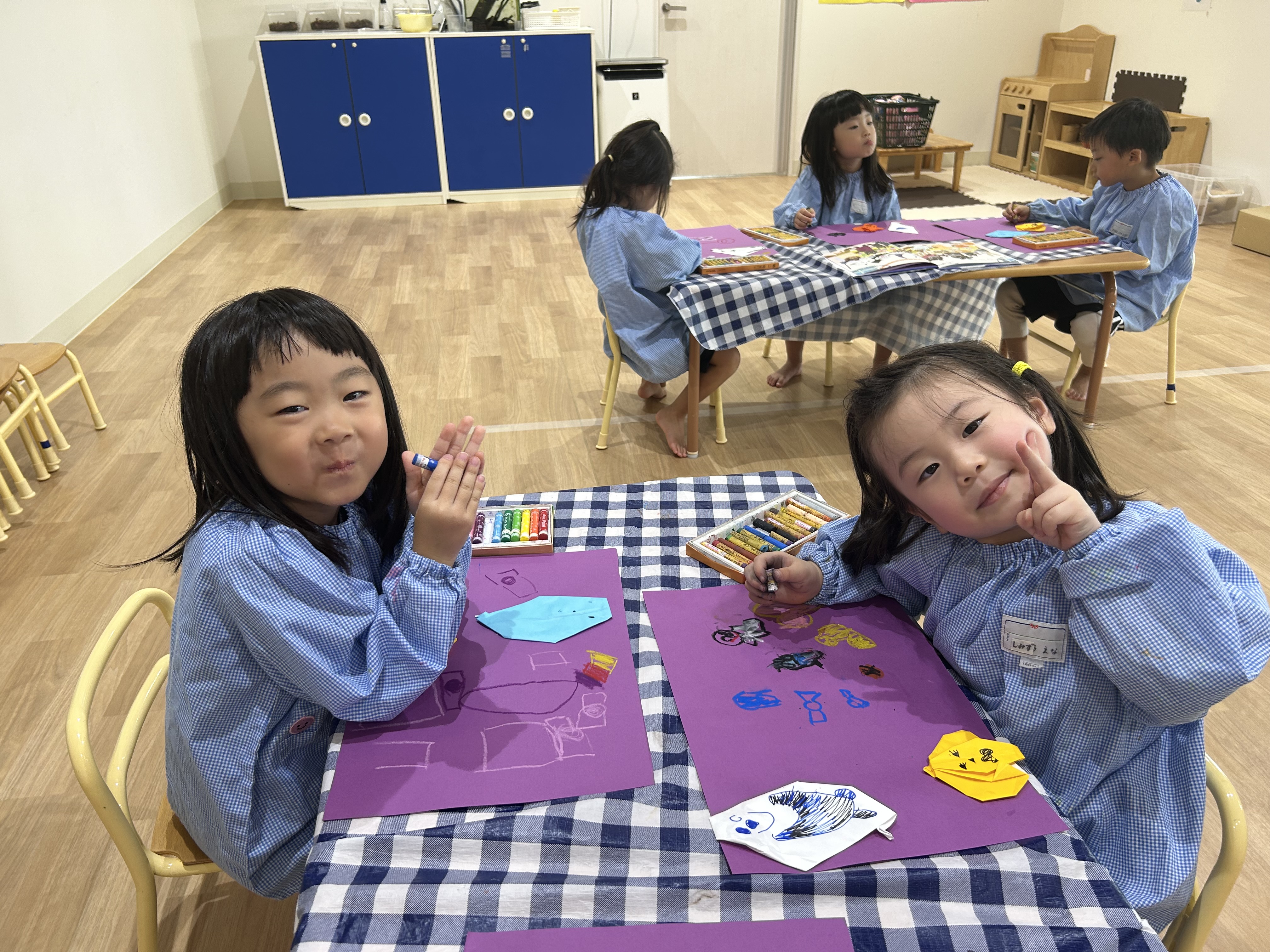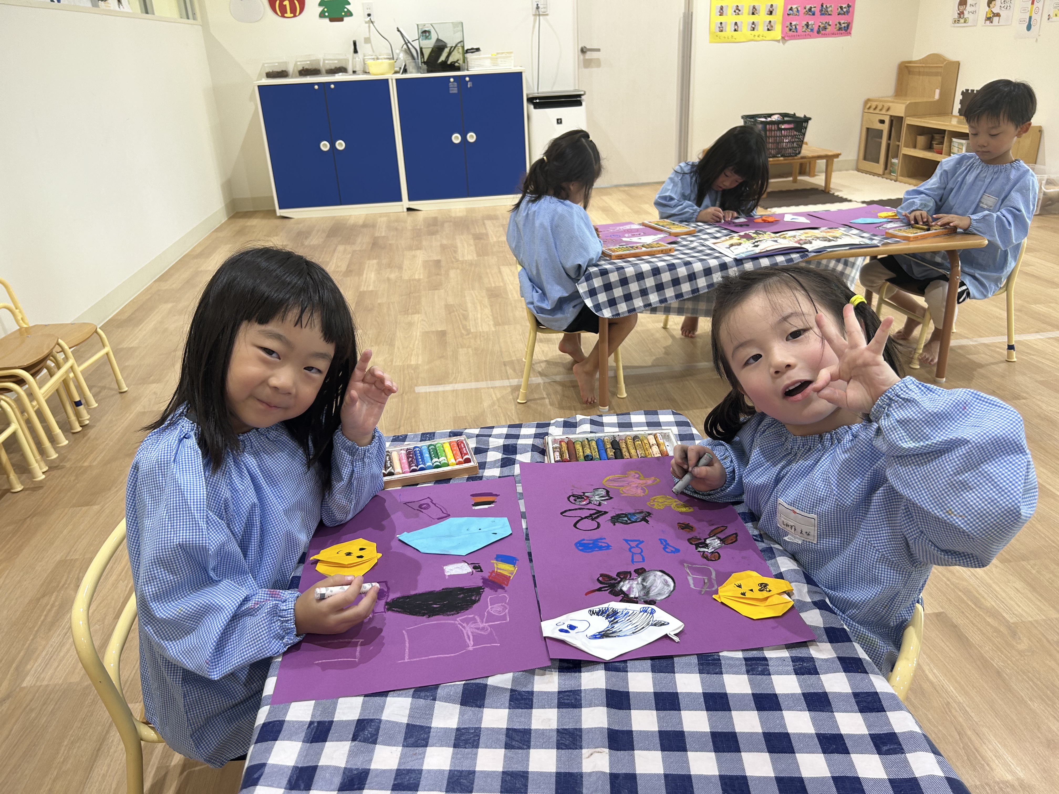 折り紙を糊で貼り、クレパスで思いおもいに絵を描いて仕上げました🎃みんなすごく上手に仕上がりましたよ🎵