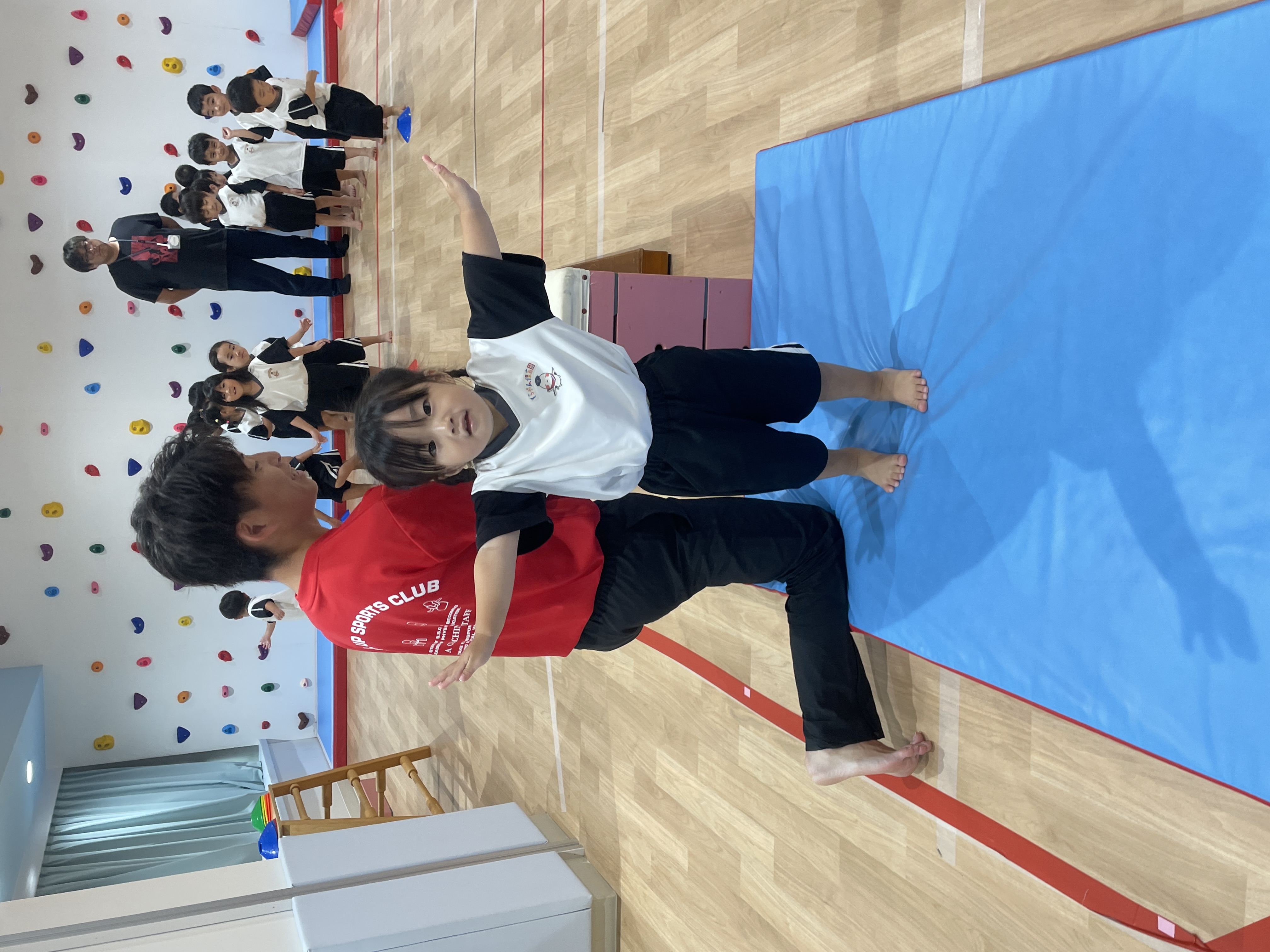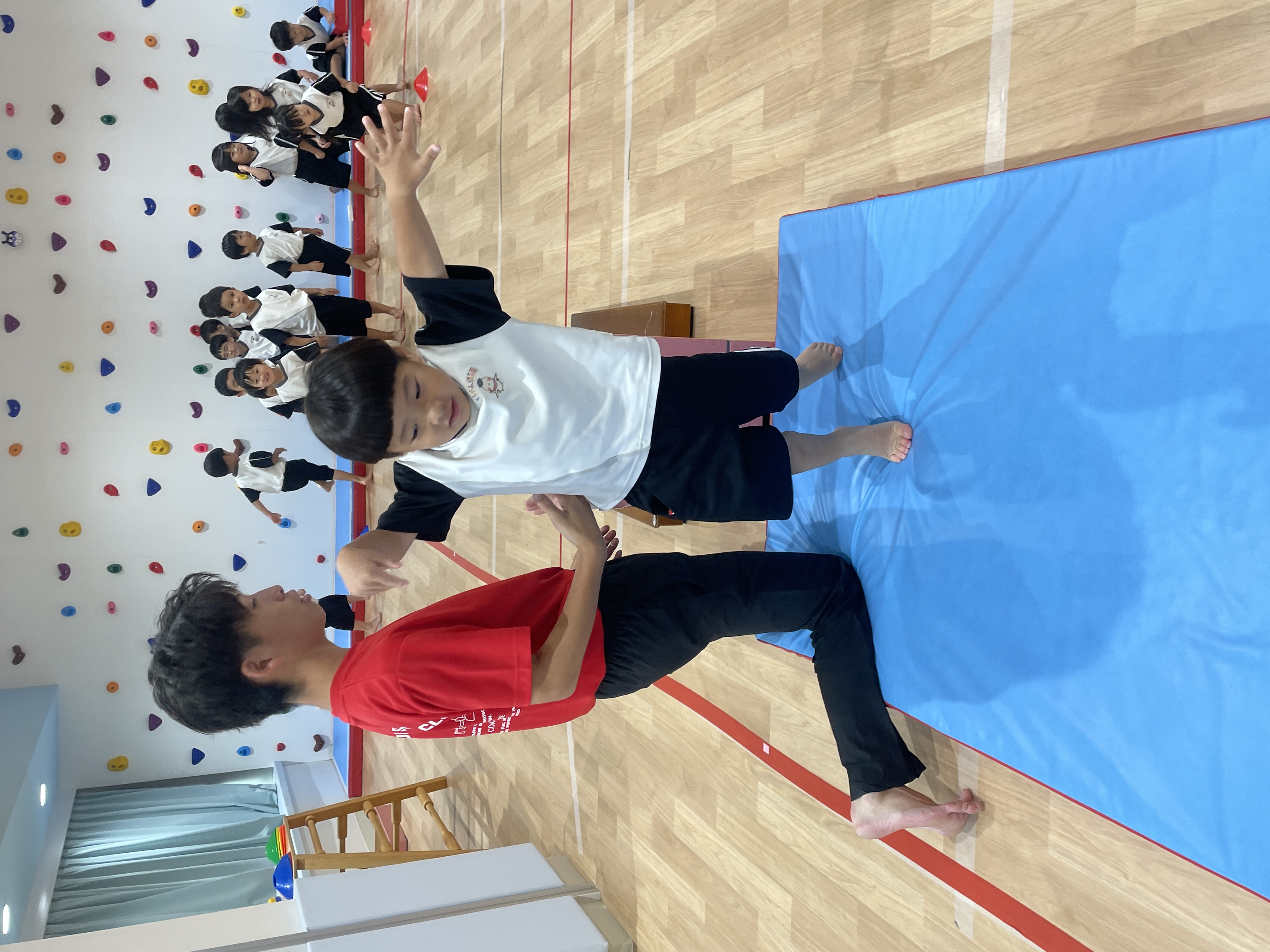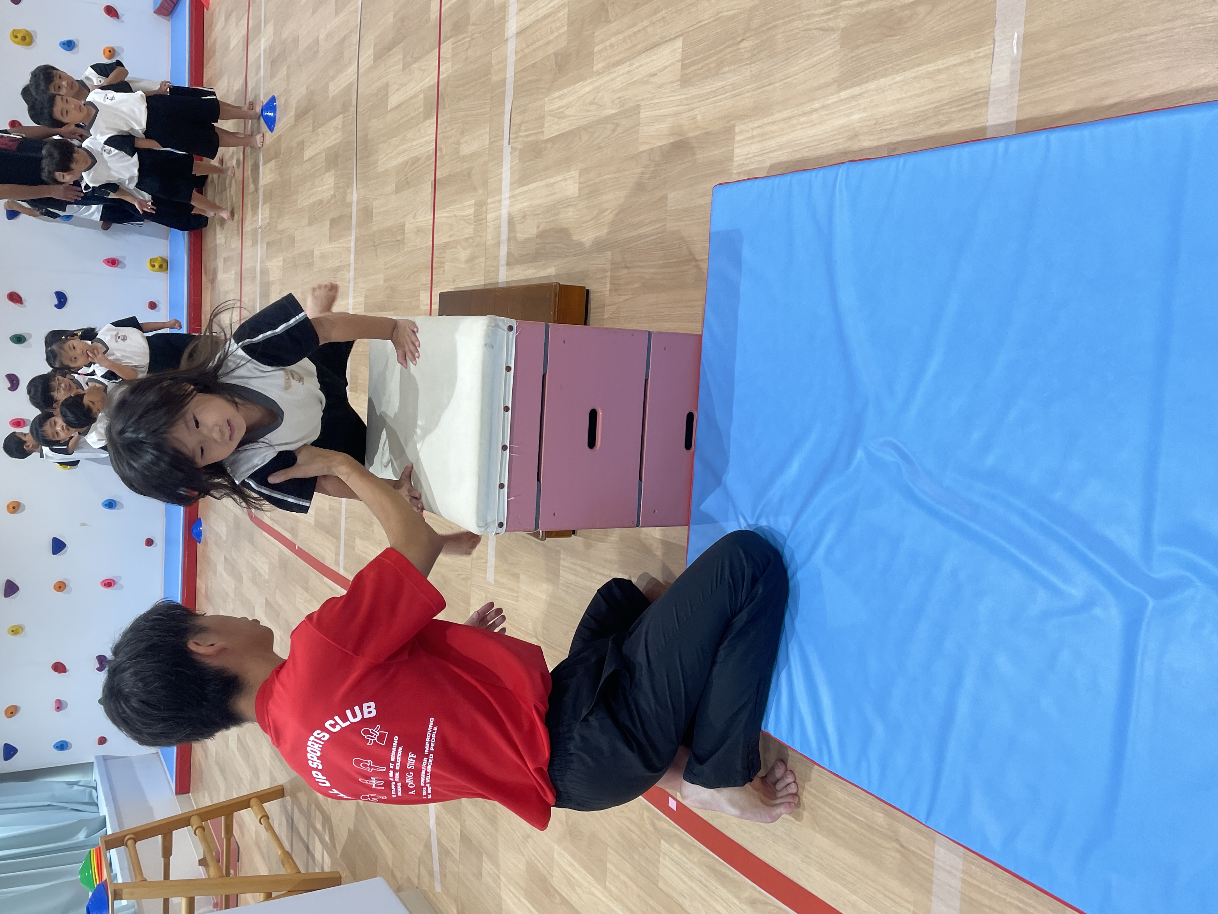 体操では運動会に向けて鉄棒の足抜き周り、跳び箱に飛び乗り最後はカッコよくポーズ!!