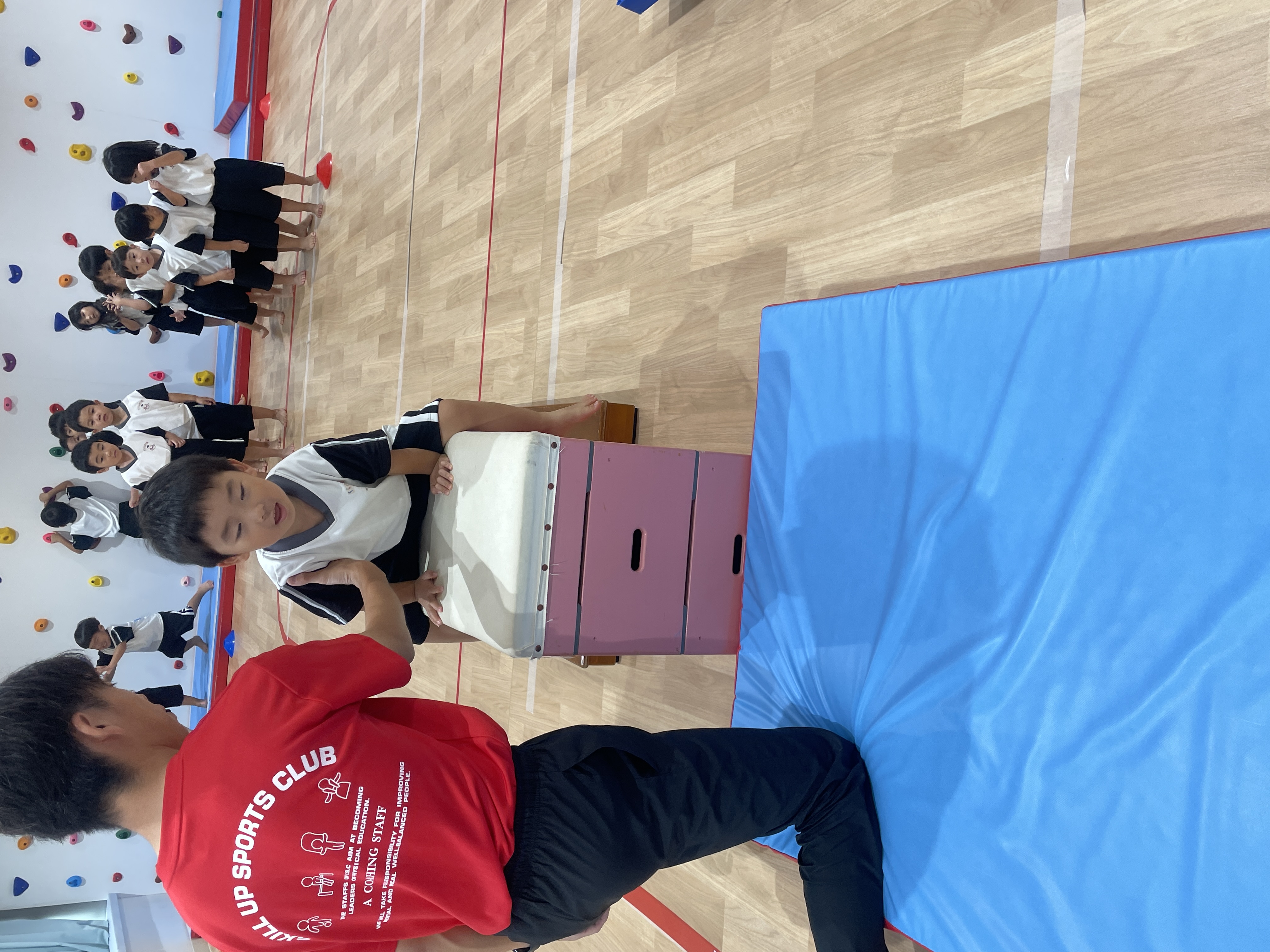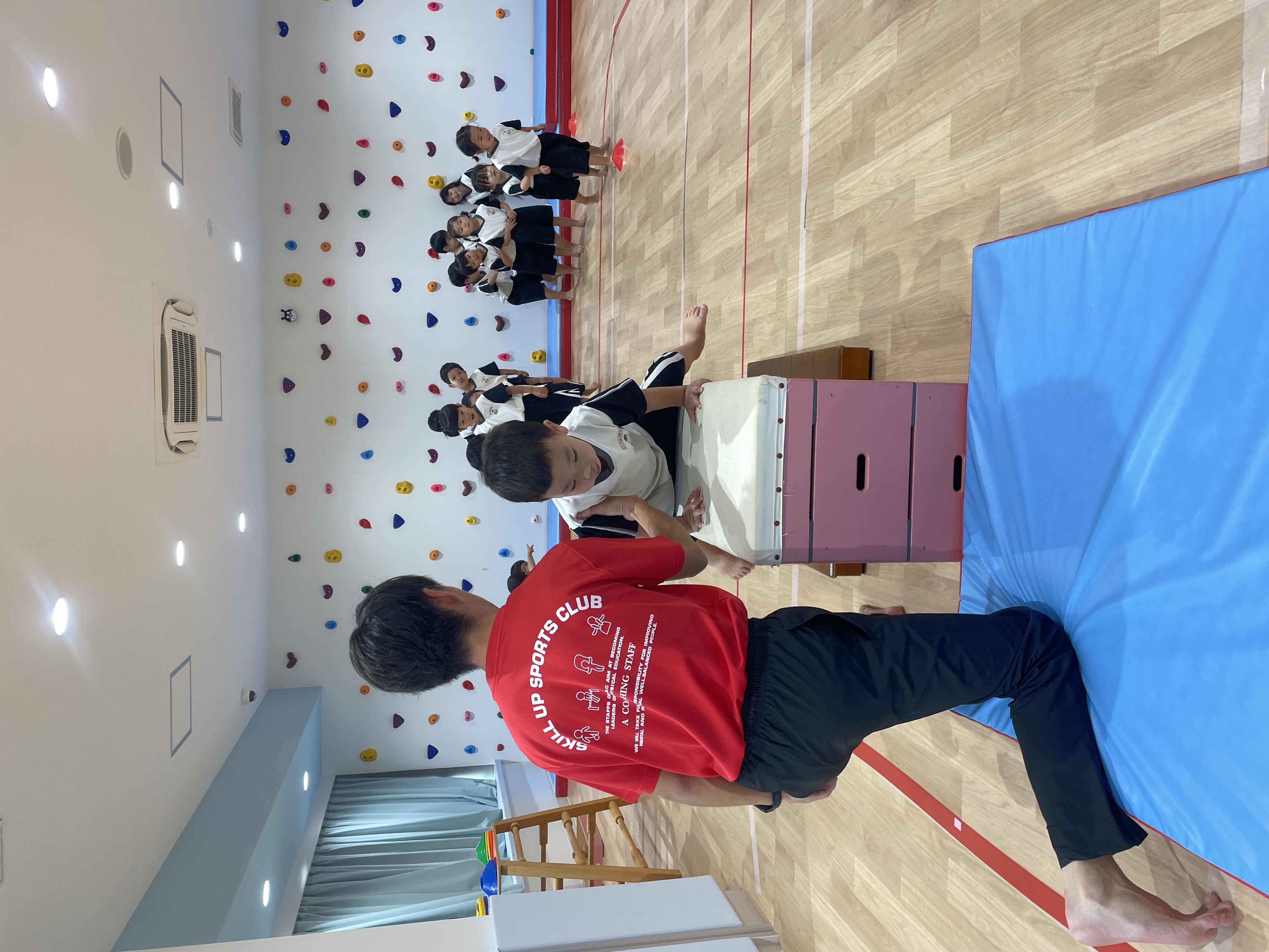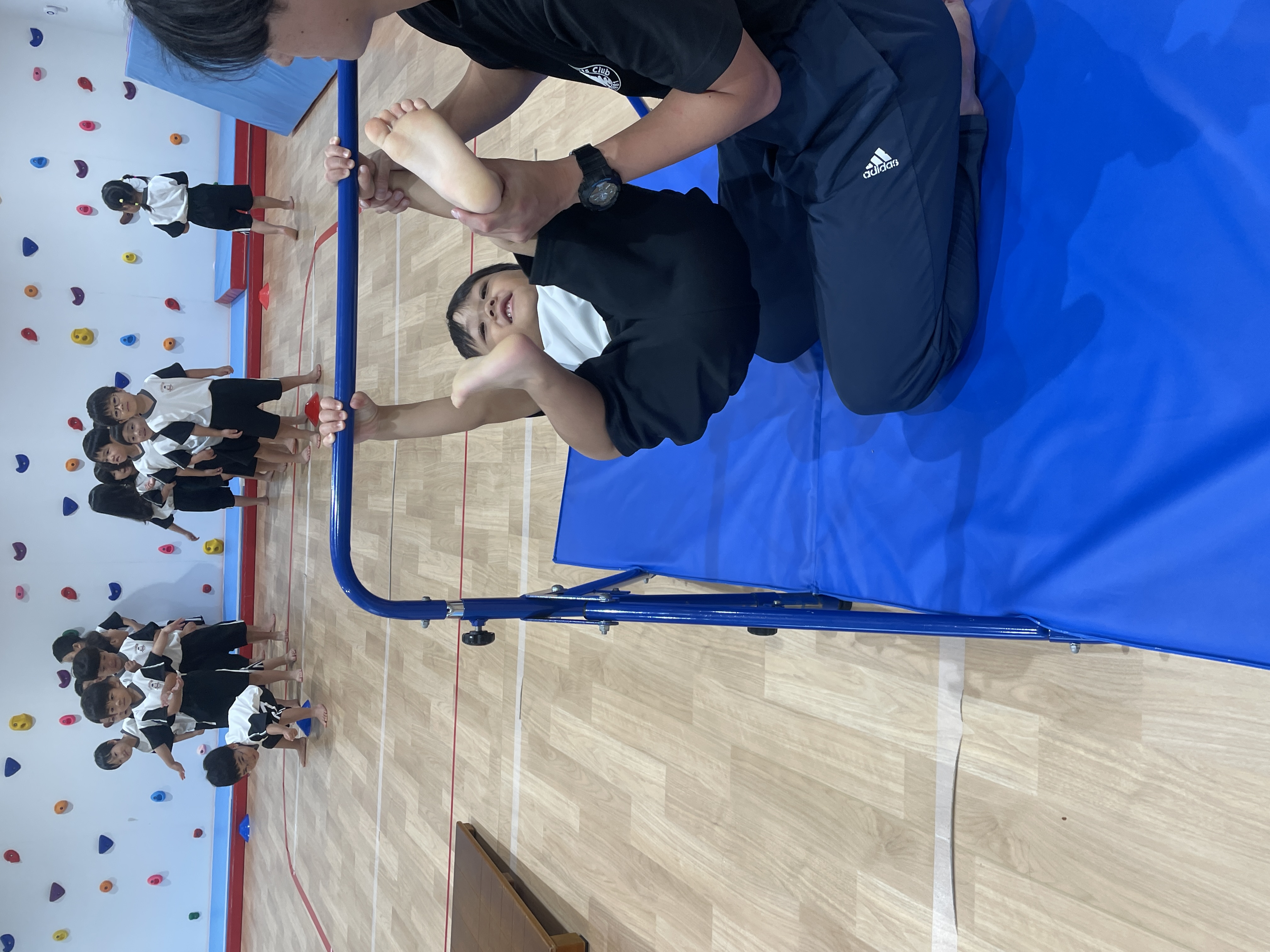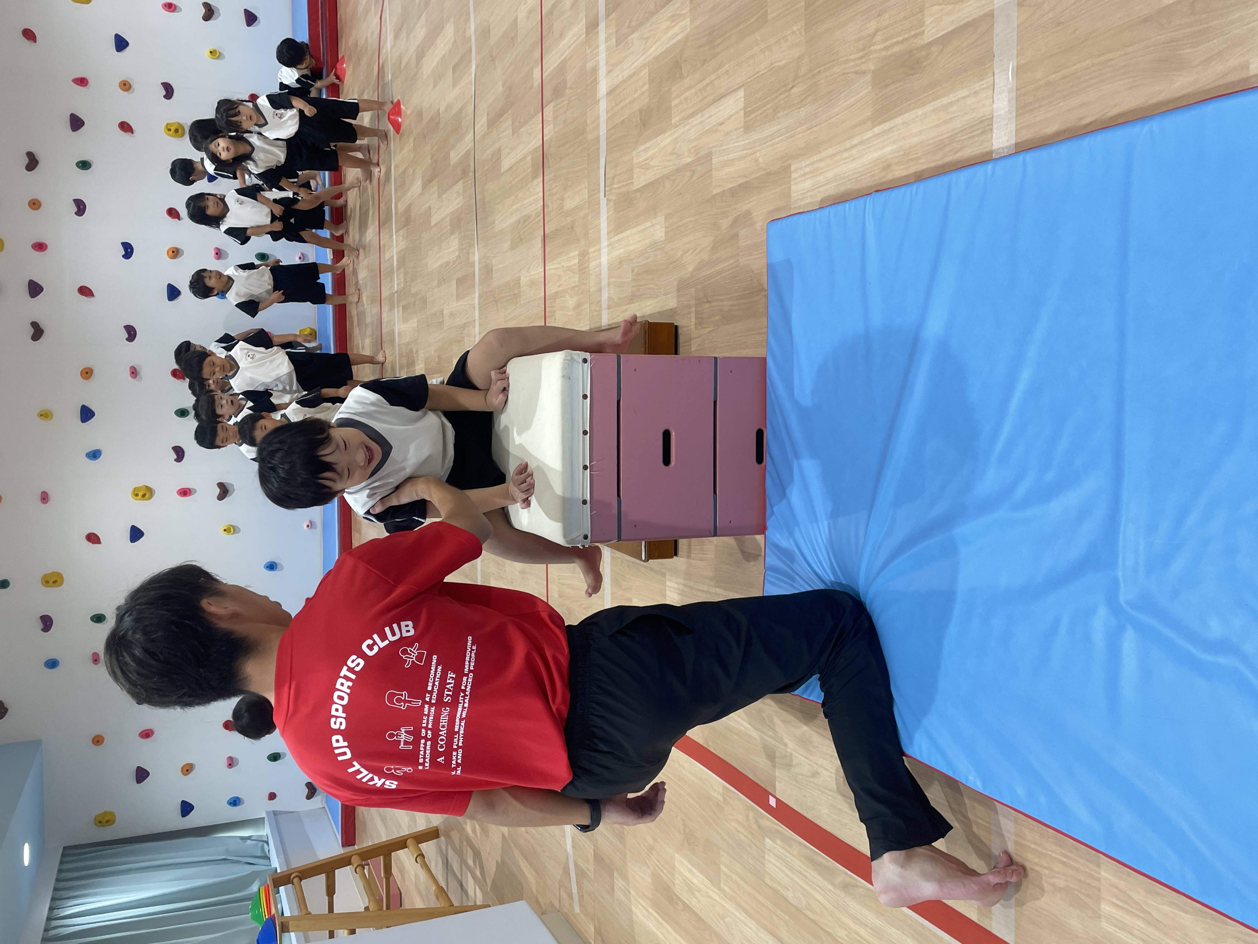 体操では運動会に向けて鉄棒の足抜き周り、跳び箱に飛び乗り最後はカッコよくポーズ!!