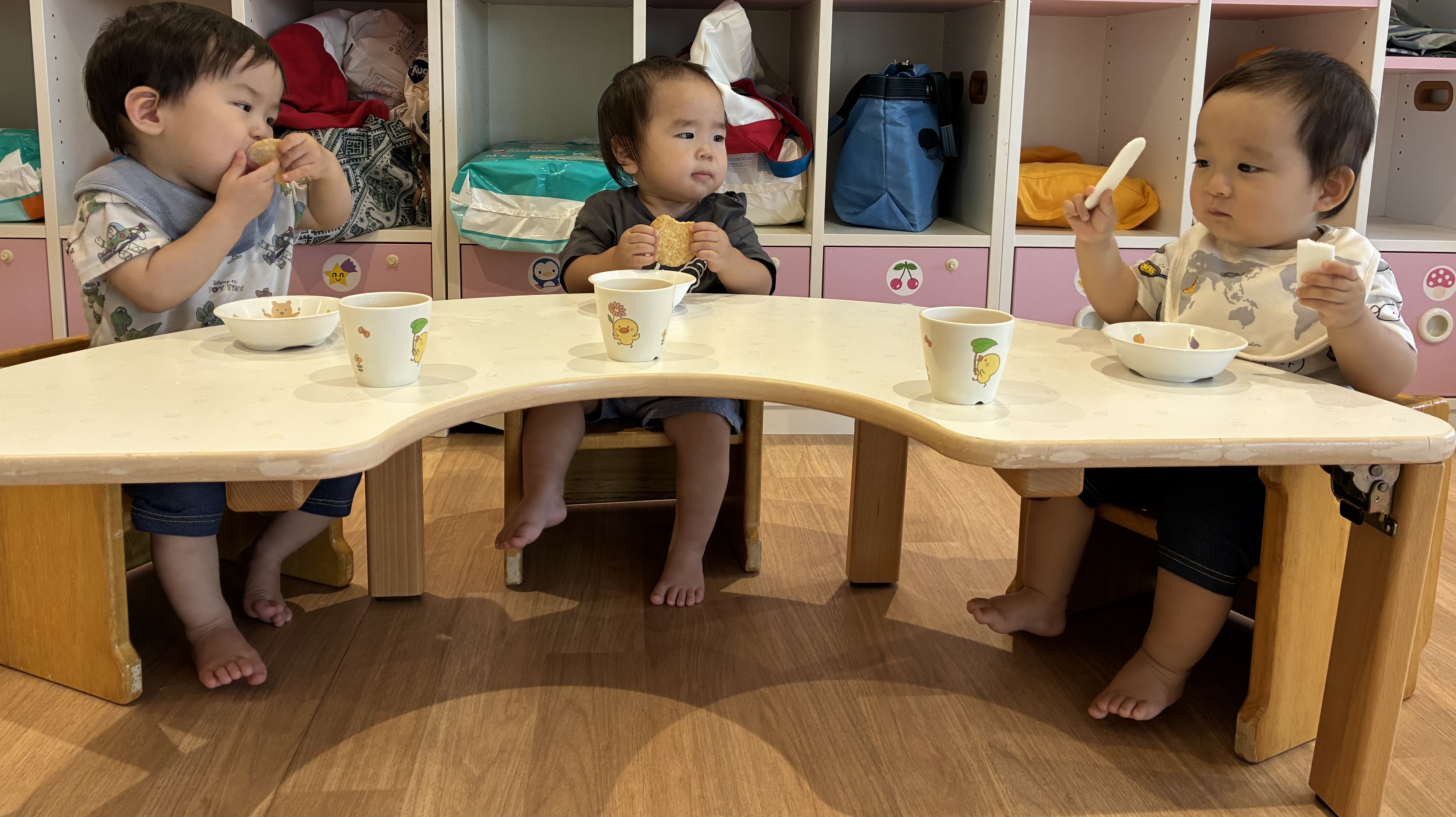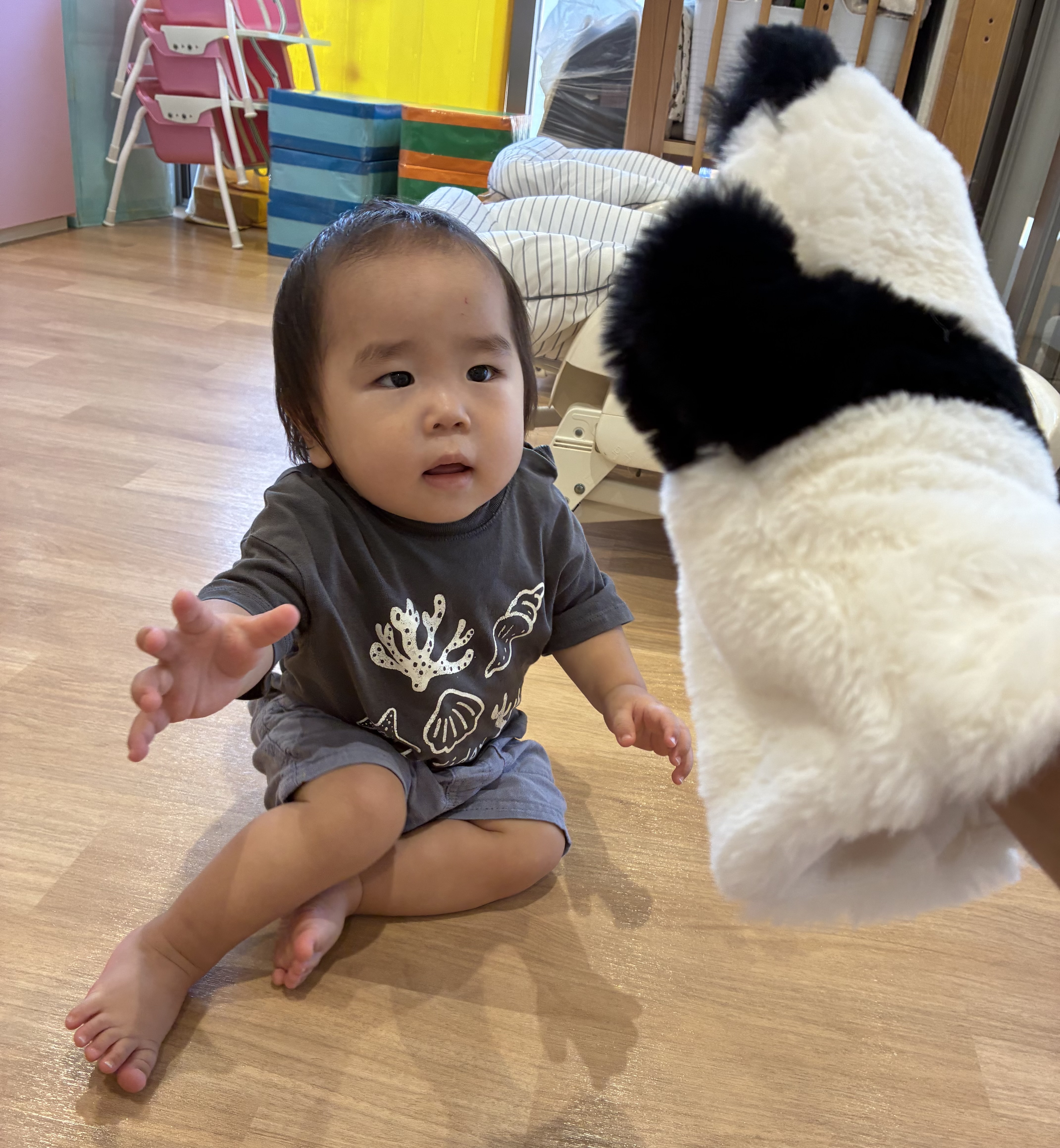 2025.10.08 パンダさんにごあいさつ ゆきぐみ おやつの後の朝の会で、パンダさんにタッチのご挨拶。 誰だろう?と不思議そうな顔してるお友だち、ちょっとこわいお友だち、いろいろですね☺️ 園庭は暑すぎて💦 すぐにお部屋に戻りましたホントに10月なのですかね😅 みんなご機嫌ナナメ。ごめんね😅 お部屋ではみんなご機嫌で安心しました☺️ 今日のおやつはパン🥖 いっぱいいっぱい食べましたよ🤤 またね〜バイバーイ👋 PREV NEXT