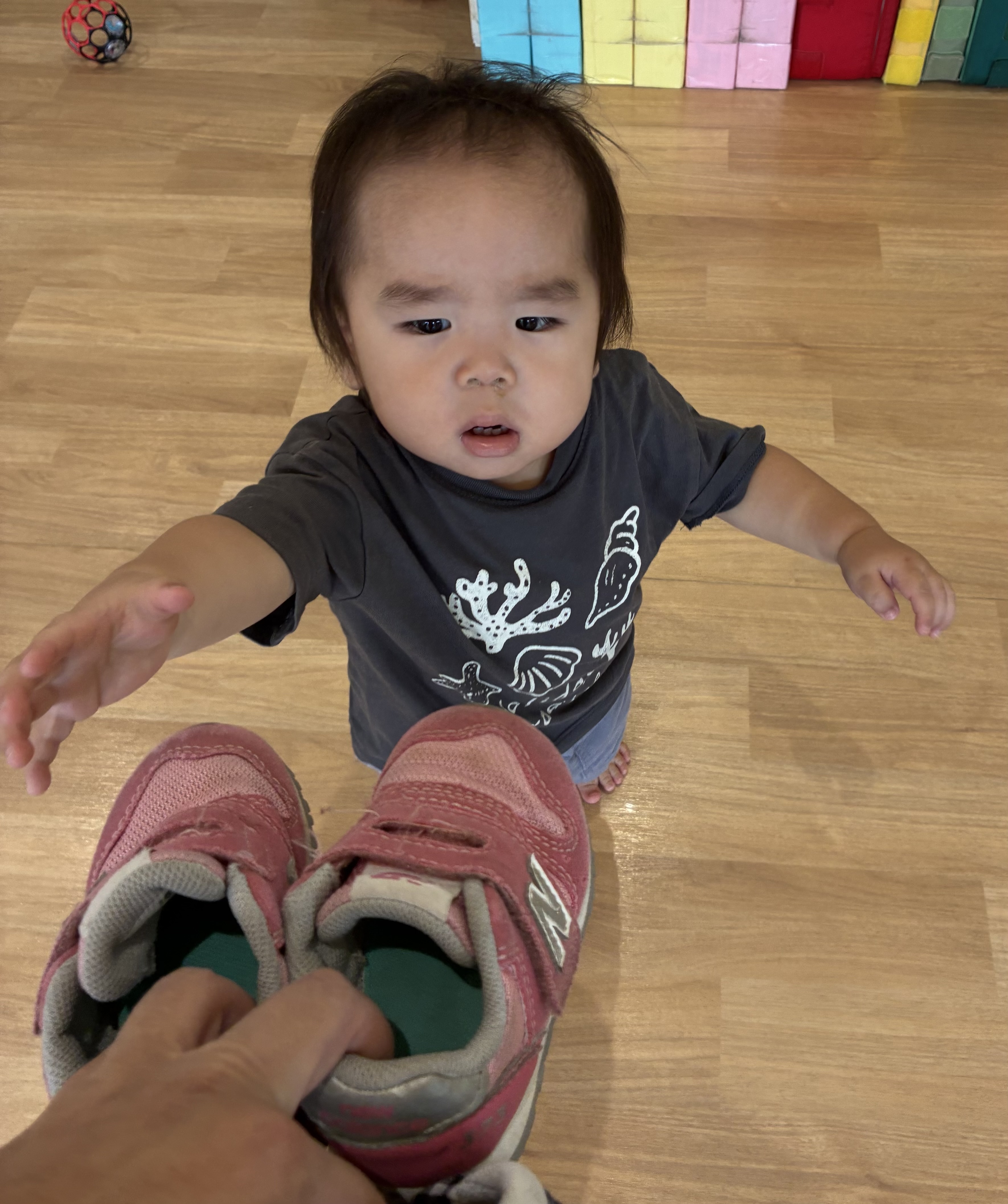 なんと!!くつを履こうとしてるじゃないですか⁉️成長に感動してしまいました🥹