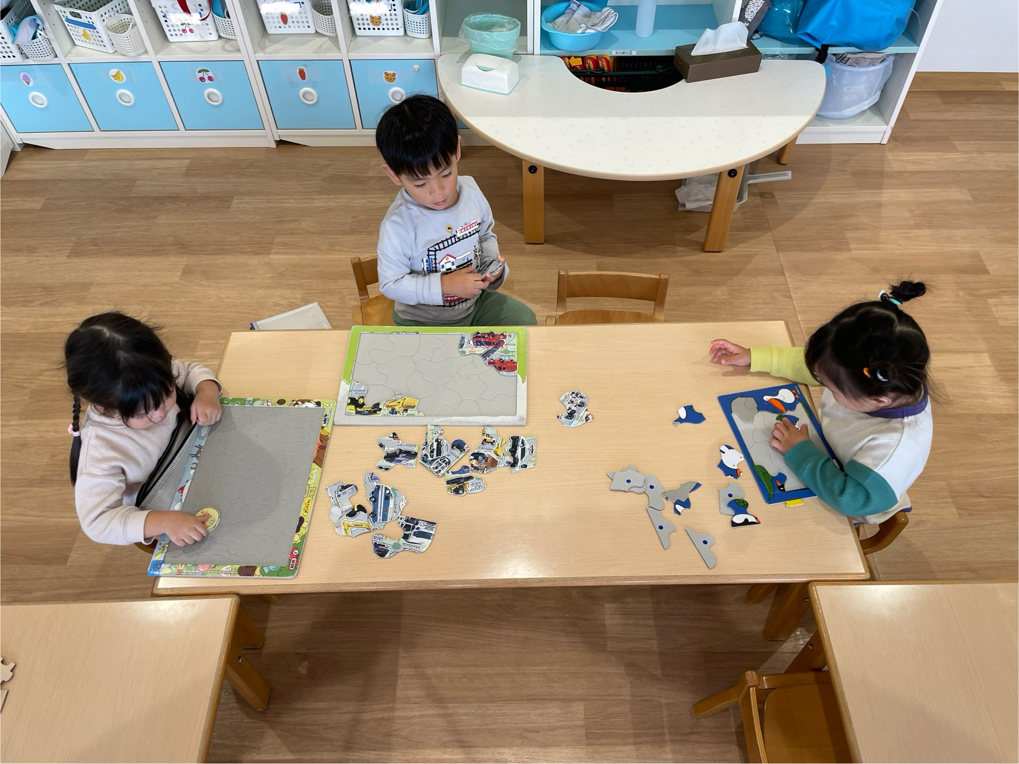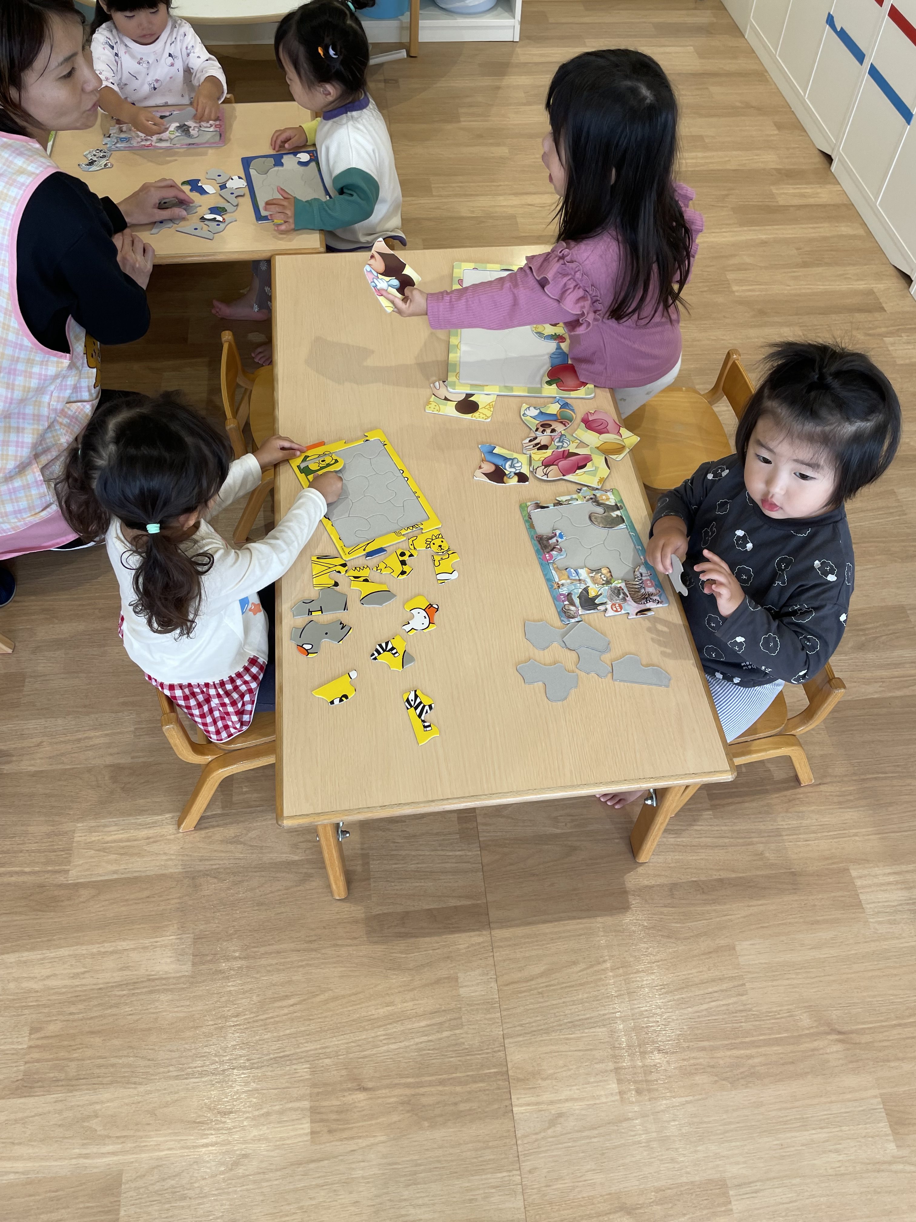 1人で完成させる事が嬉しくて、同じパズルを何度も挑戦してみたり、新しいパズルに挑戦してみたりと、楽しむ子ども達です🎵