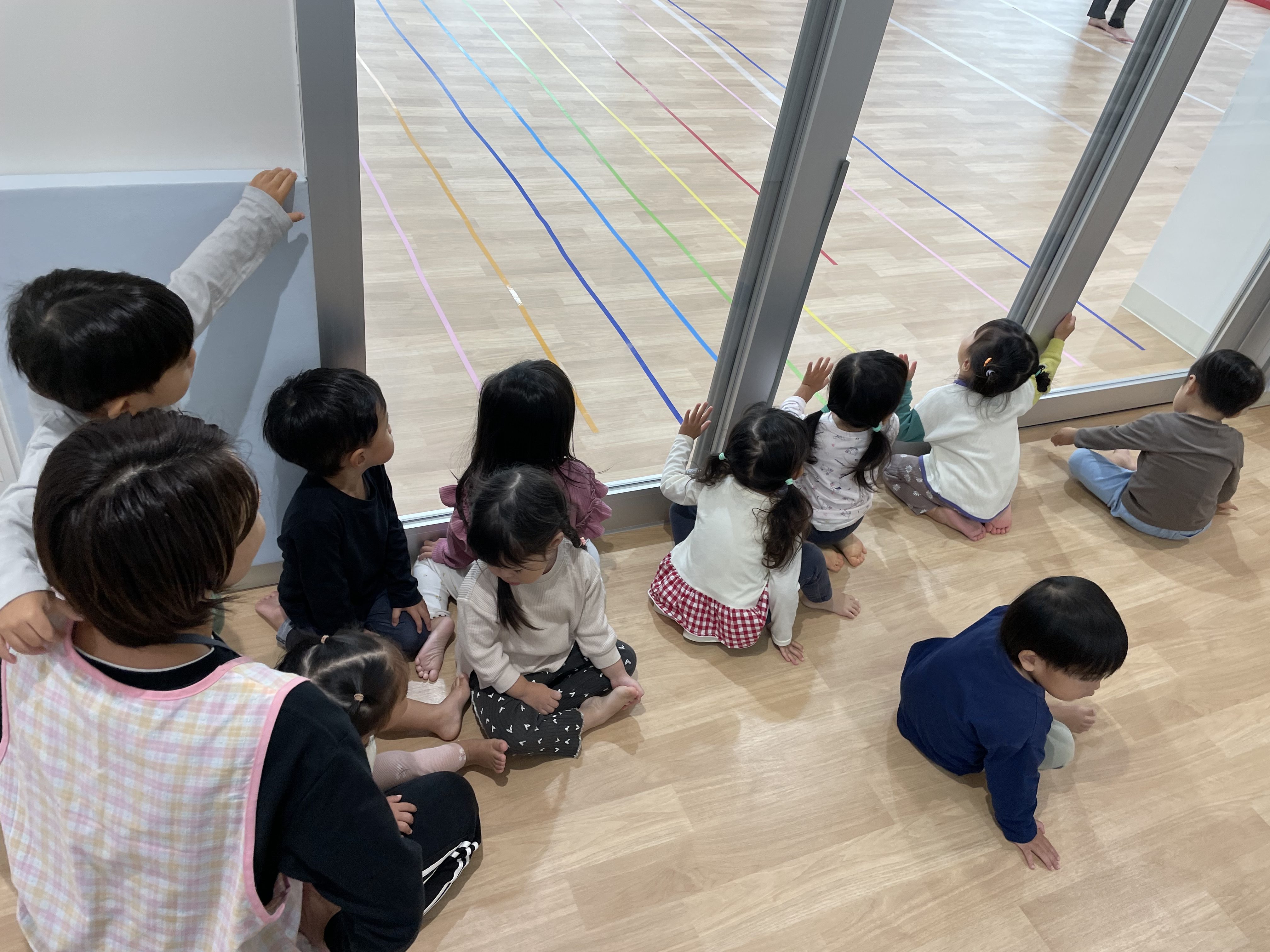 前のクラスの様子を見て期待を膨らませてしています。