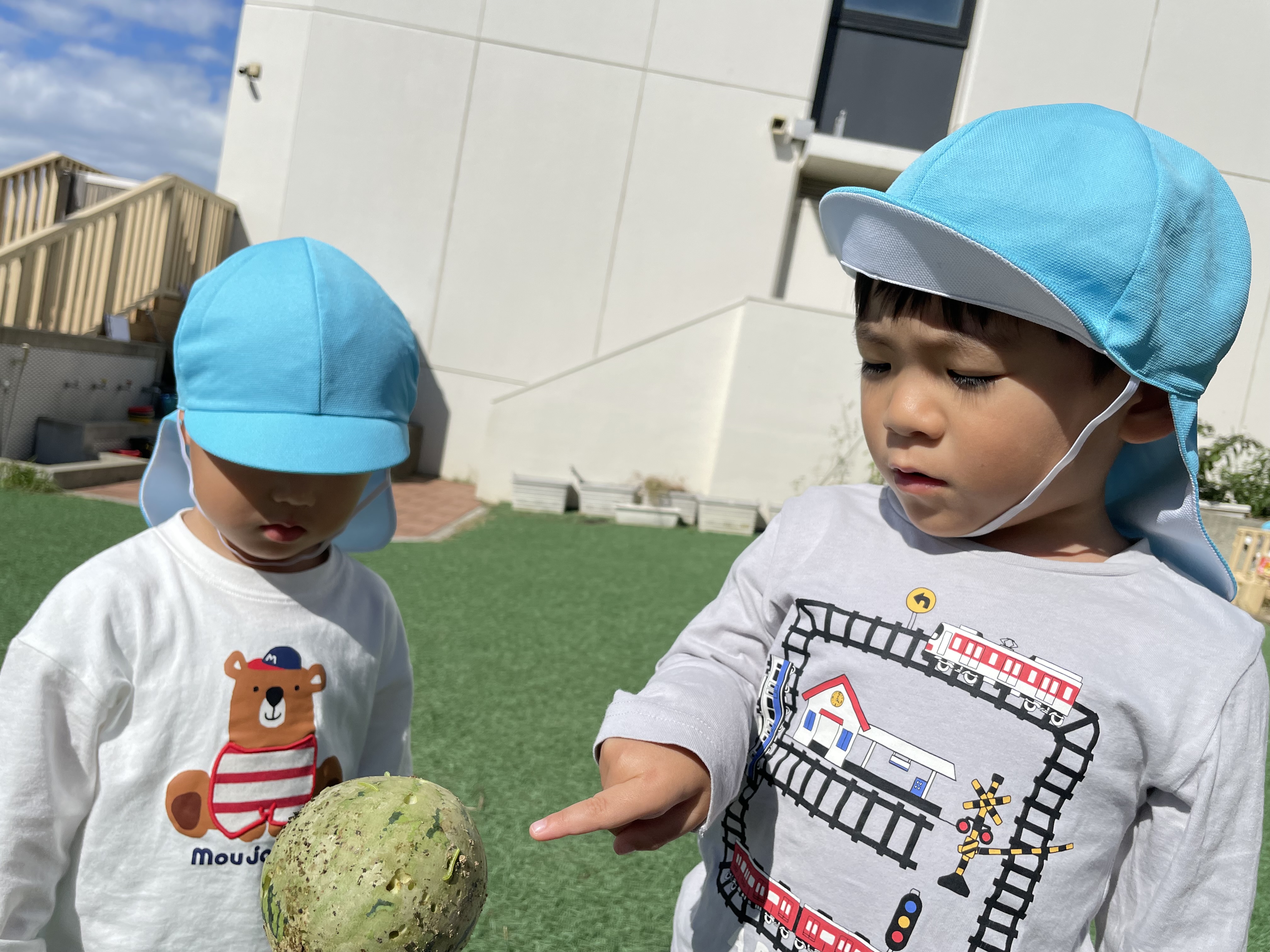 ボールを転がして楽しむ子、畑で何かを発見する子💡