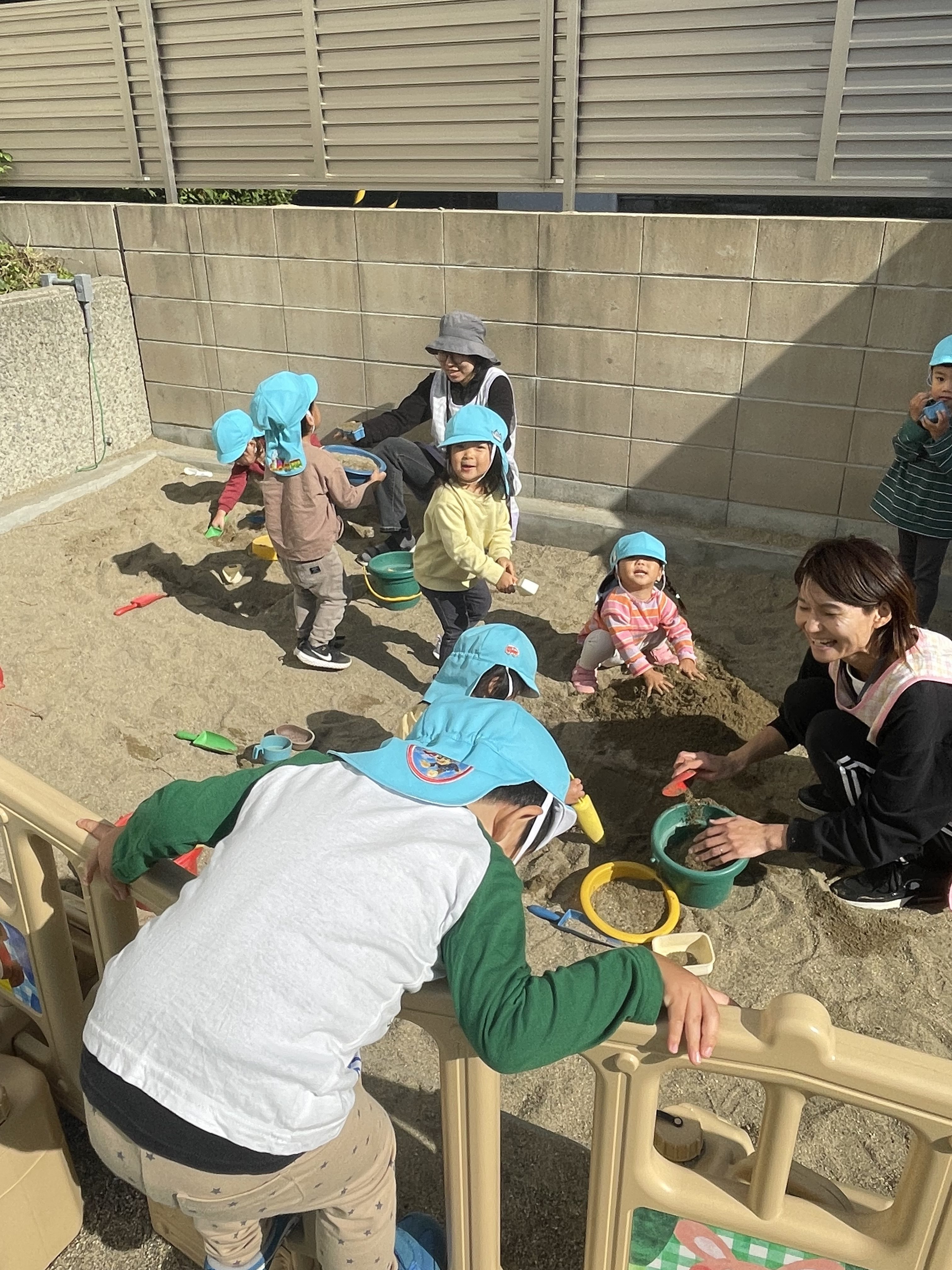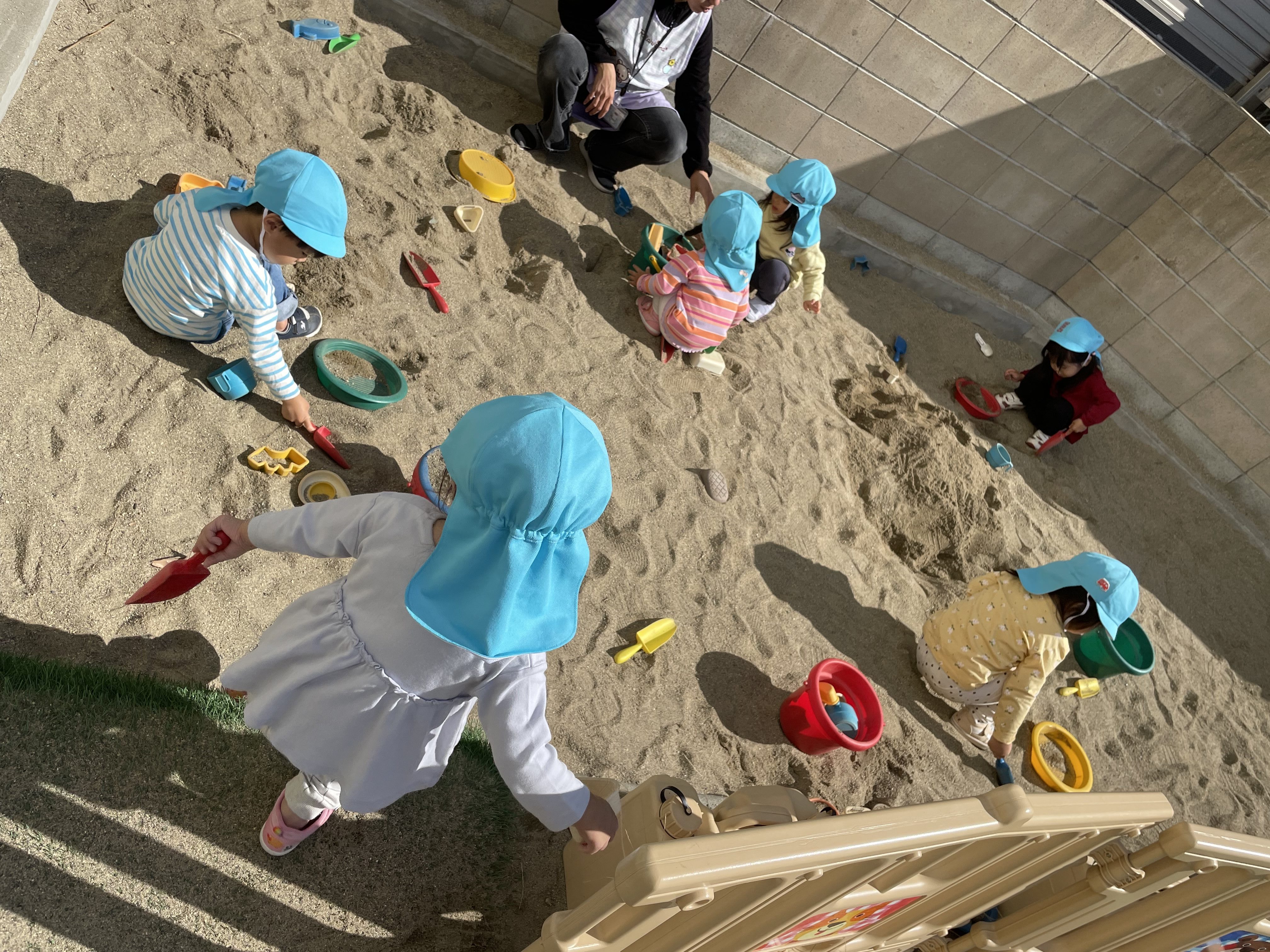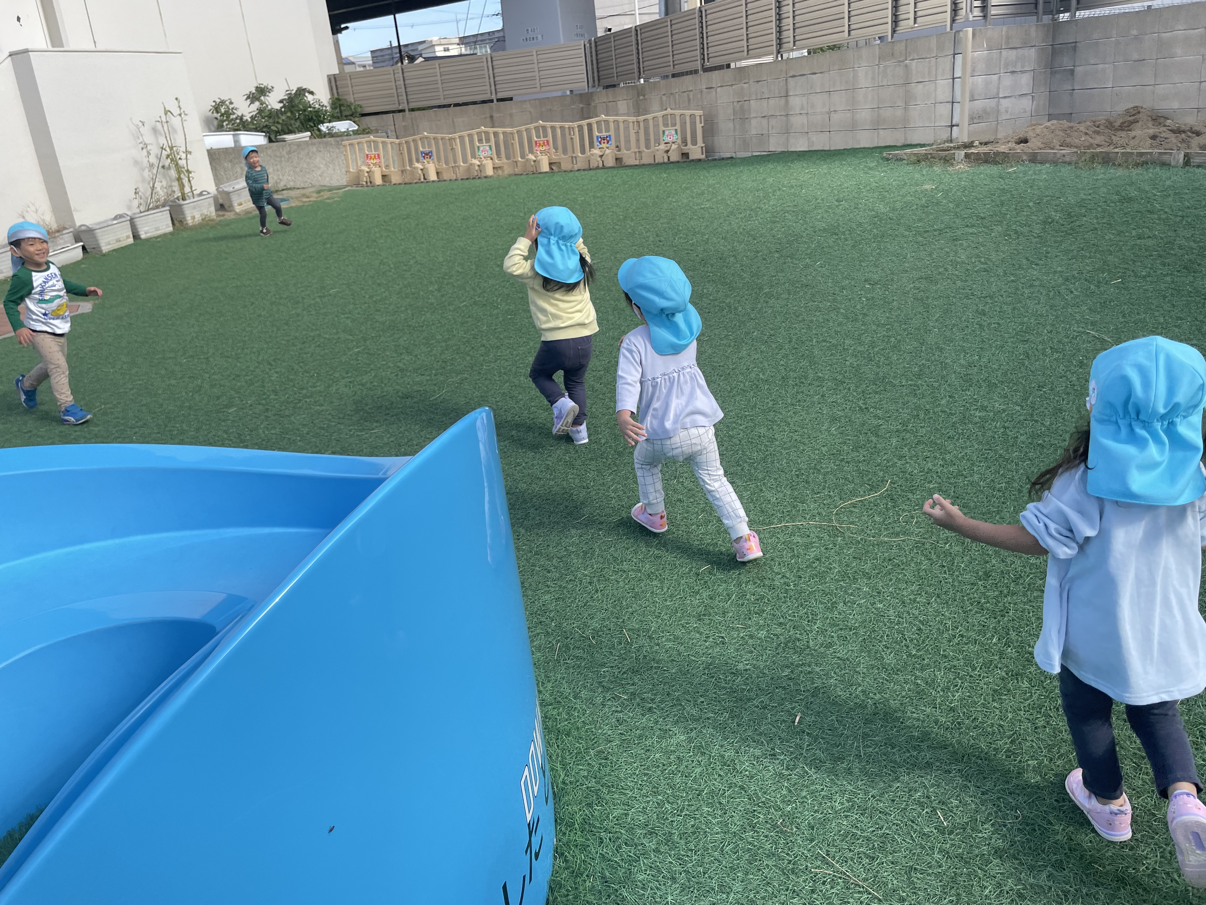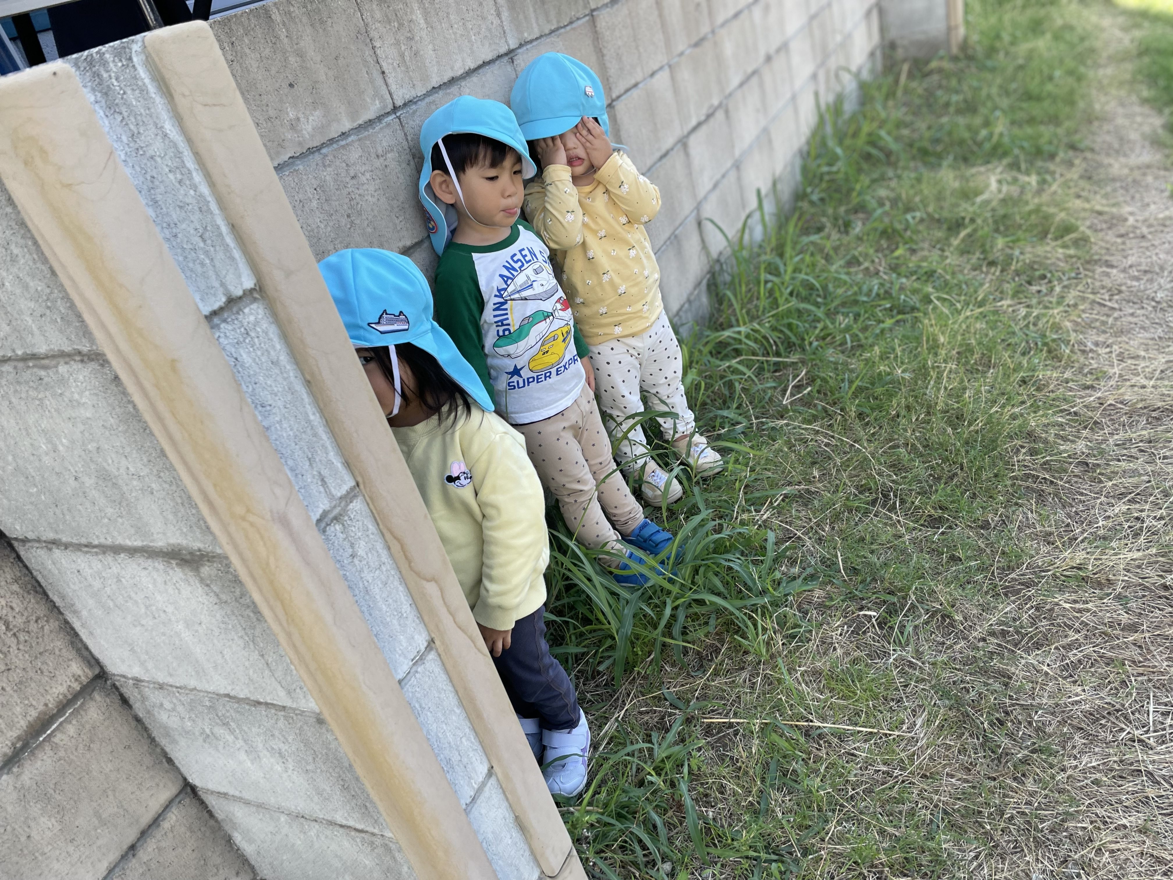 園庭では集団遊びの“トントントン何の音?”がブームで、ジャングルジムの中がお家の安全地帯です😊