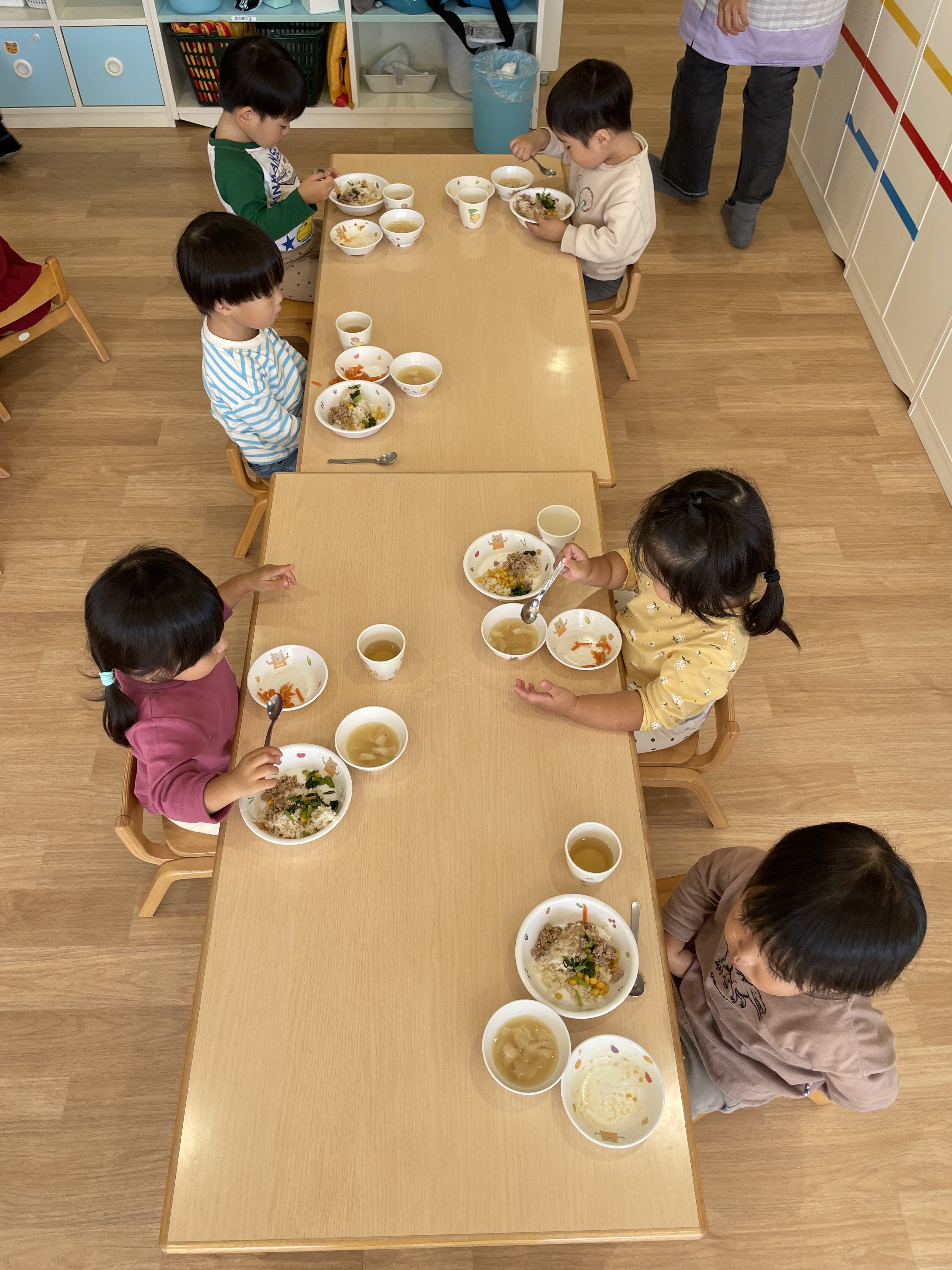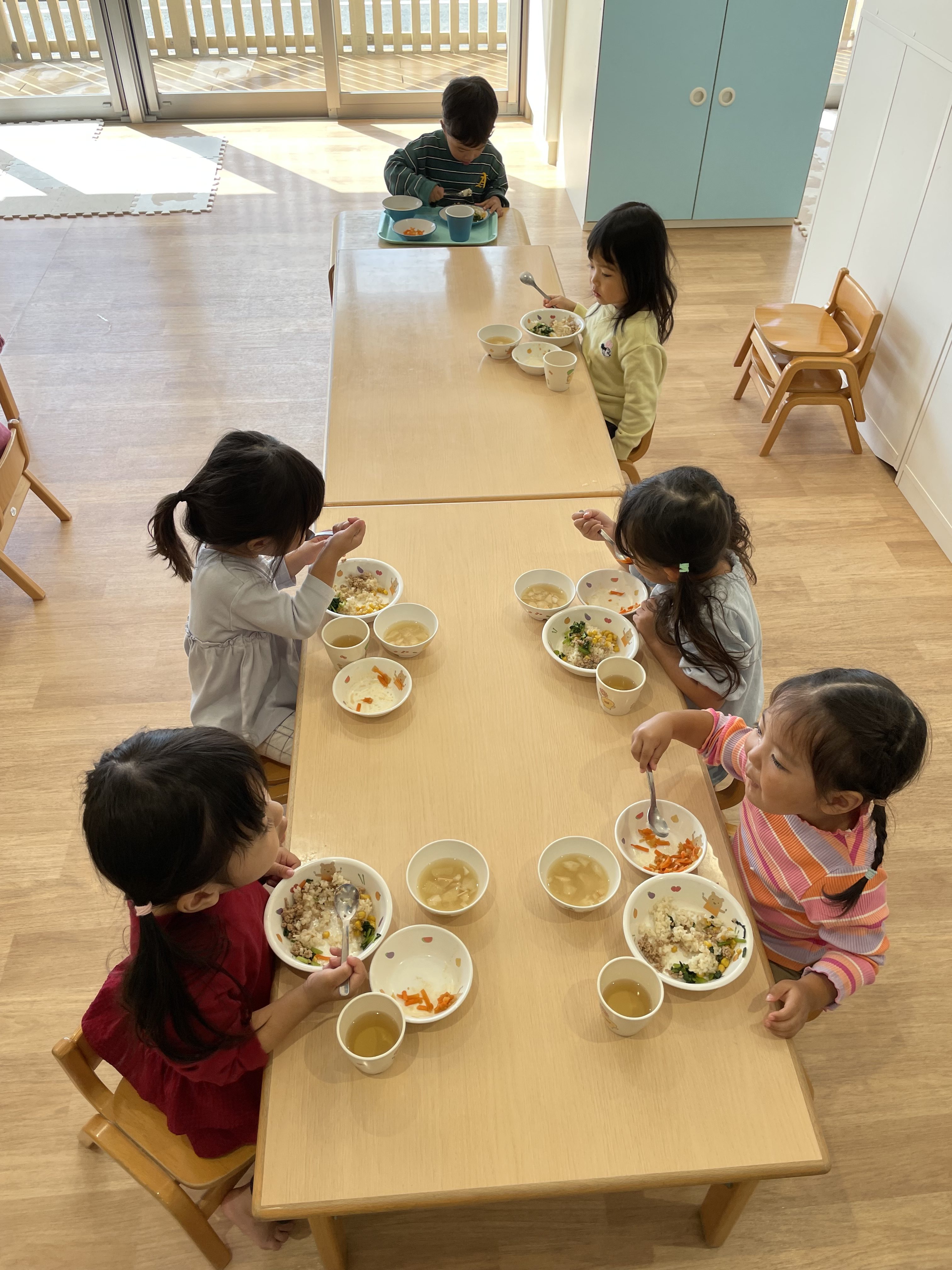 沢山遊んだからか、給食を勢い良く食べ進める子ども達でしたー!