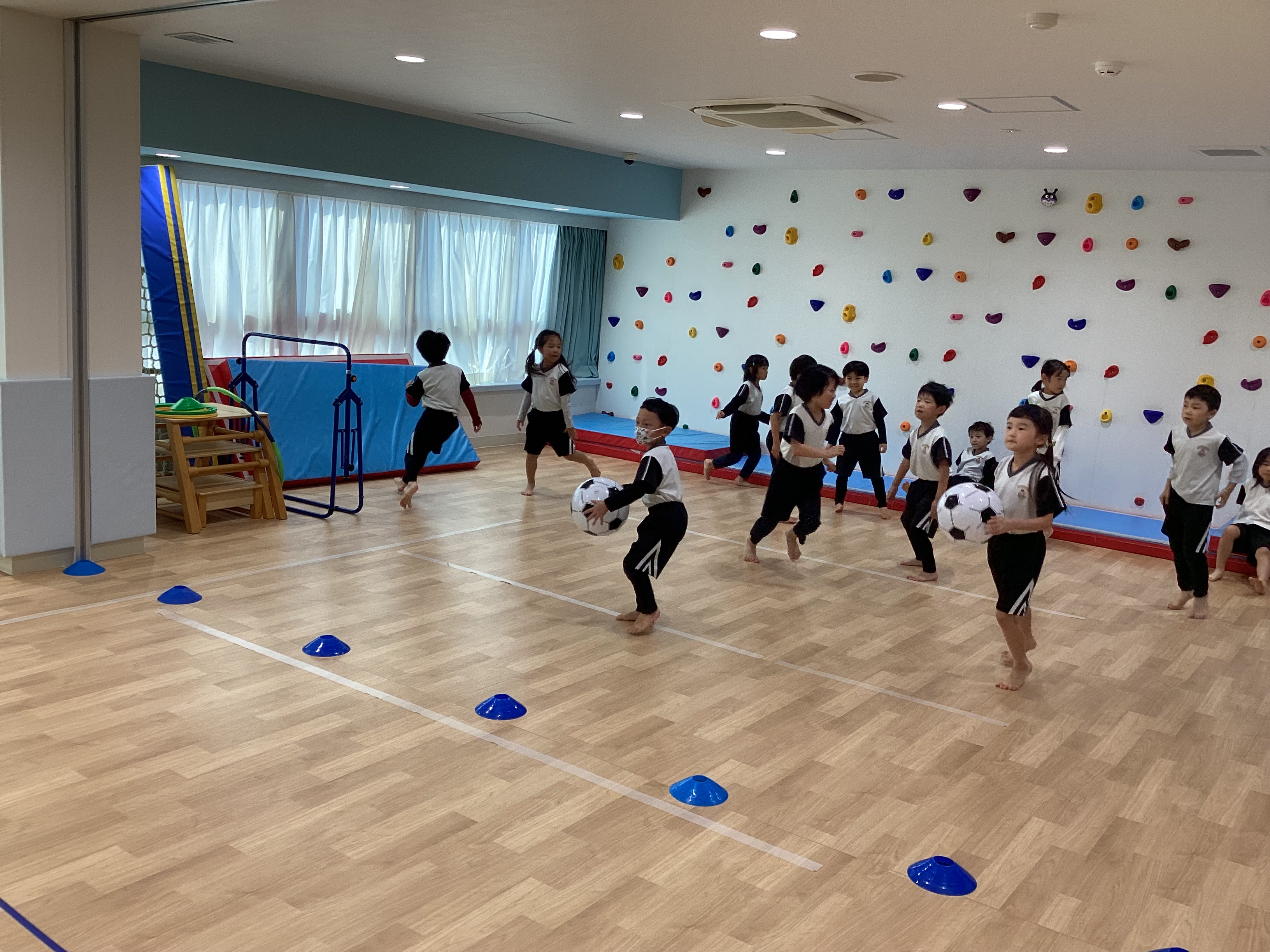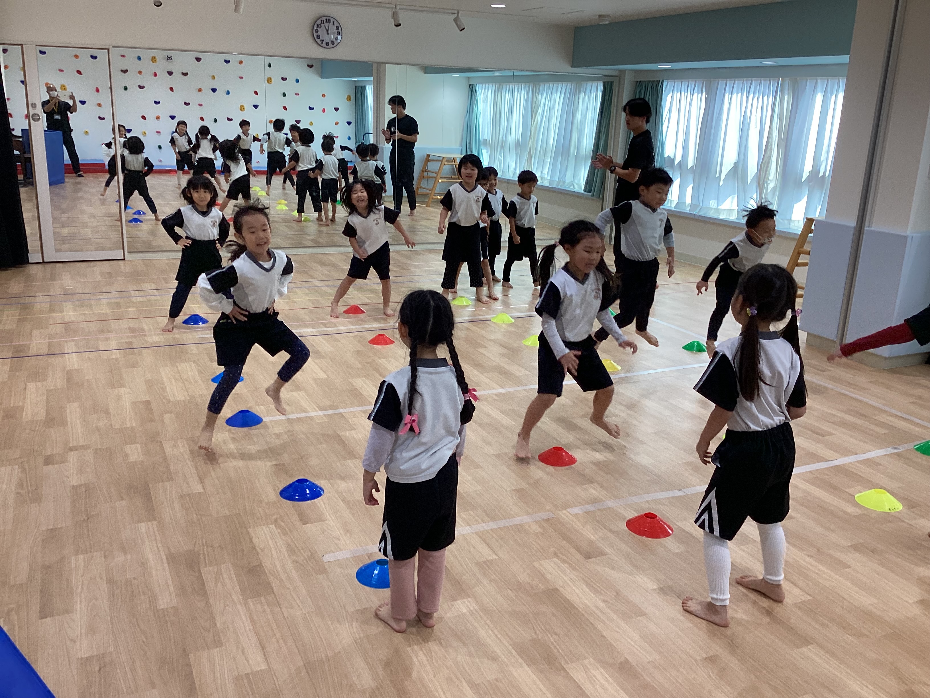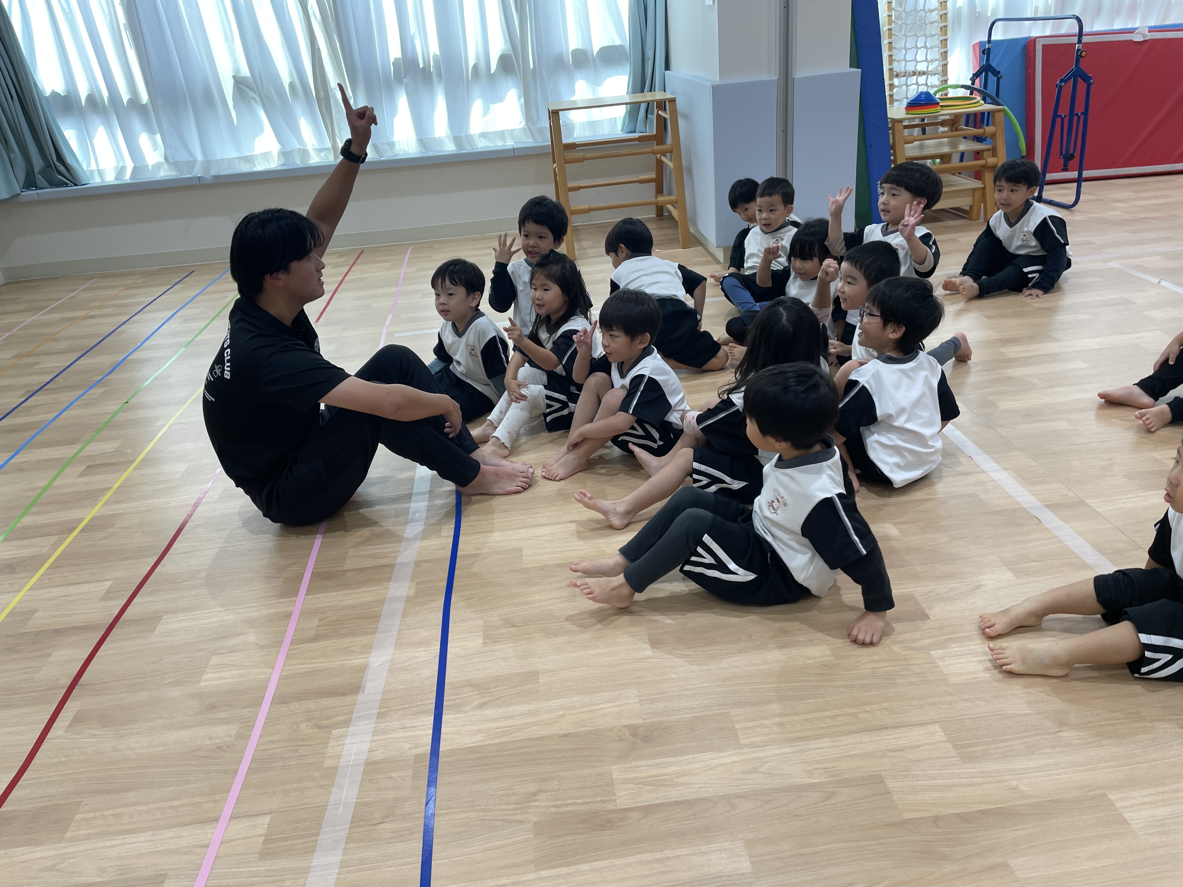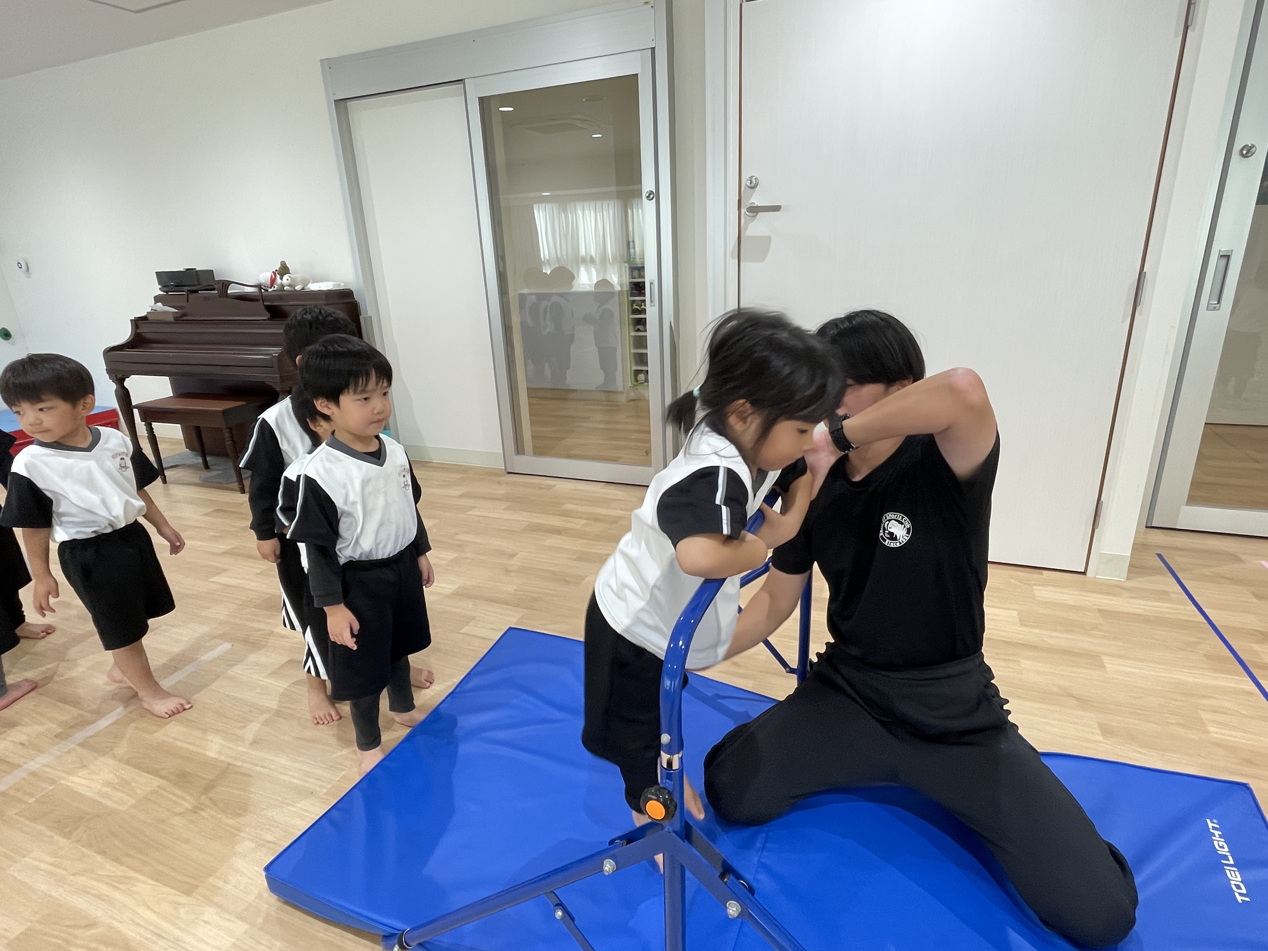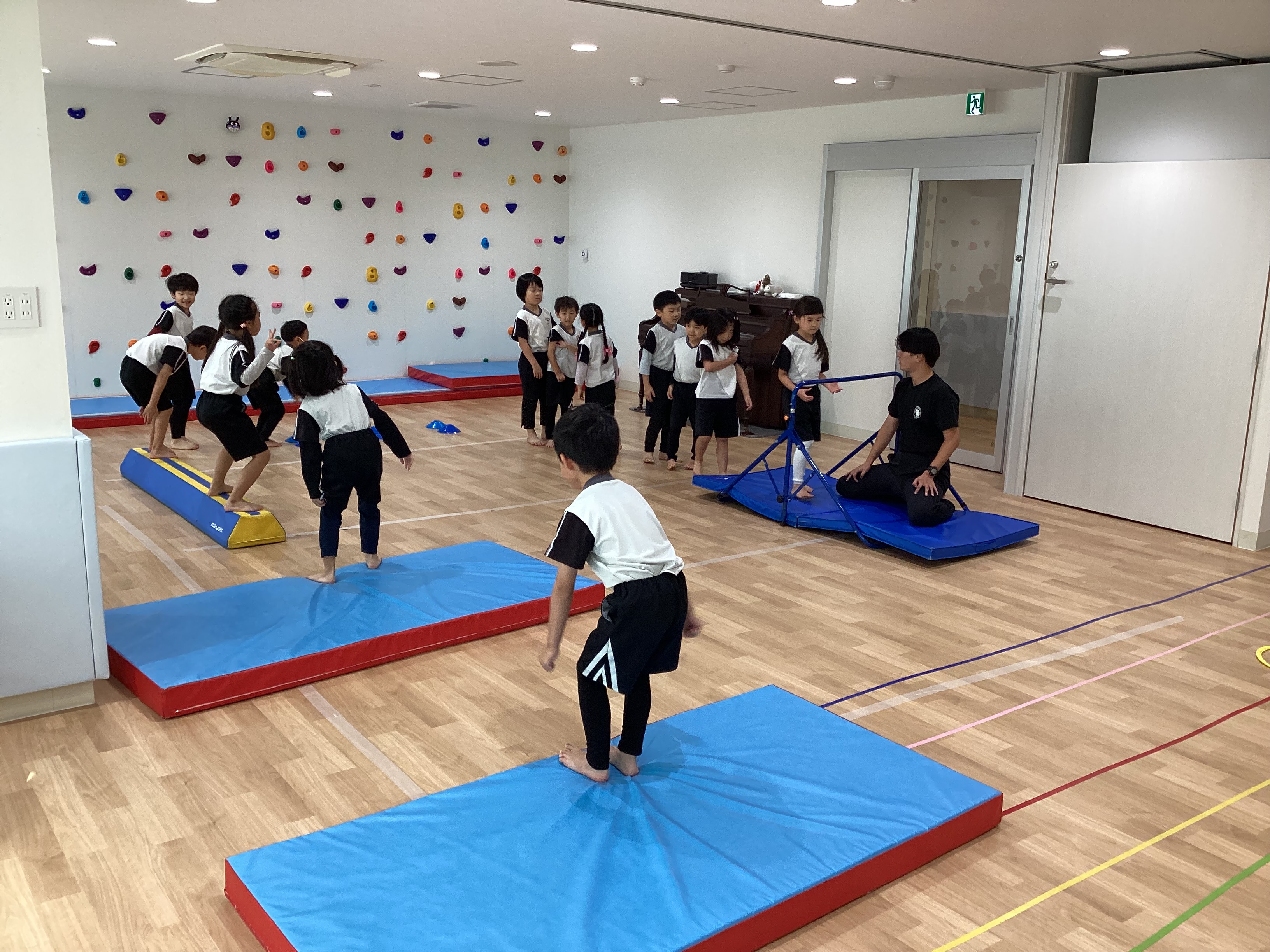 体操では、逆上がり、フープジャンプ、ジグザグジャンプ、橋渡り、サッカーなど様々な動きをして身体をおもいっきり動かして存分に楽しみましたよ😊みんな体操が大好きなようです💕