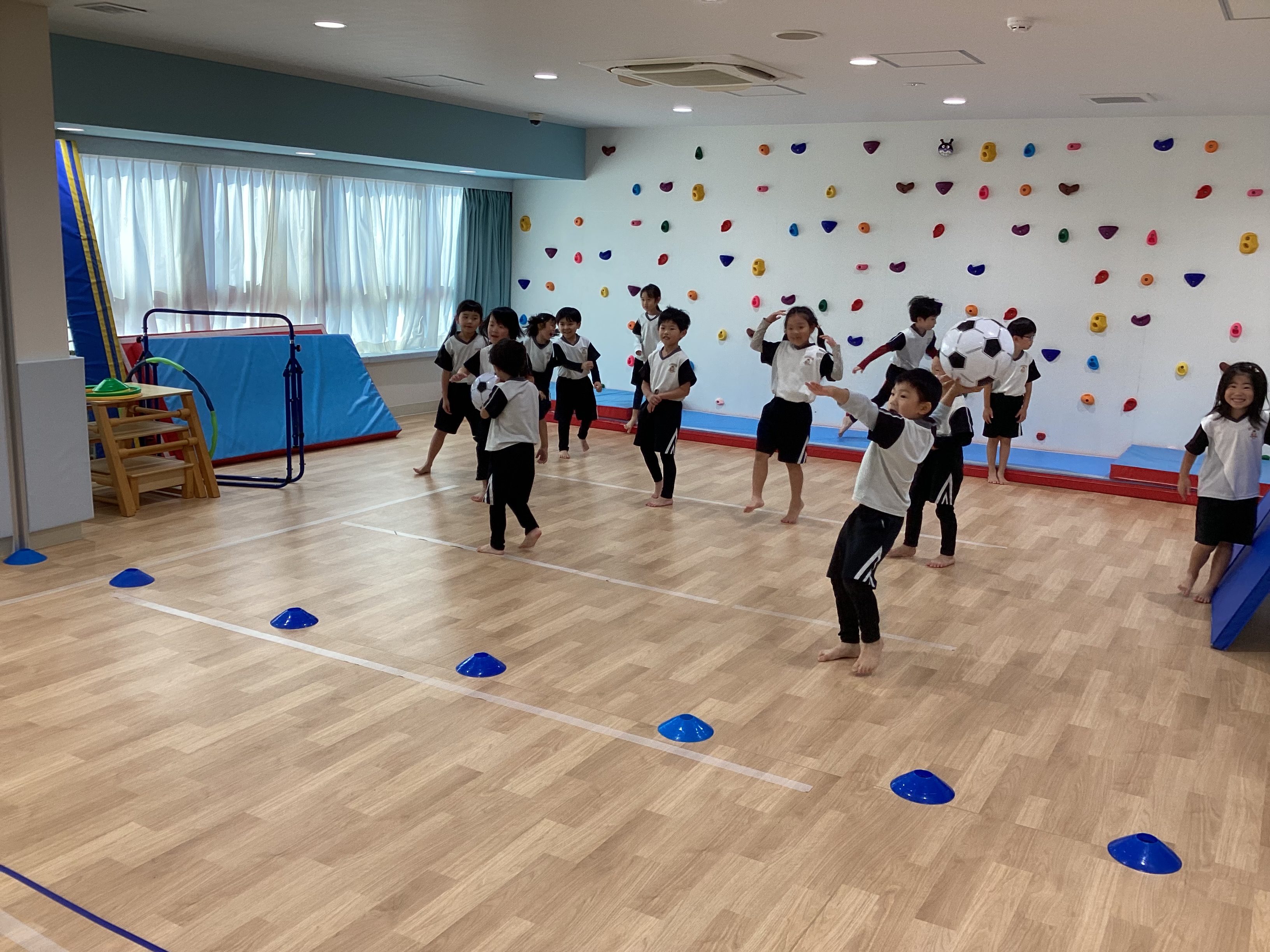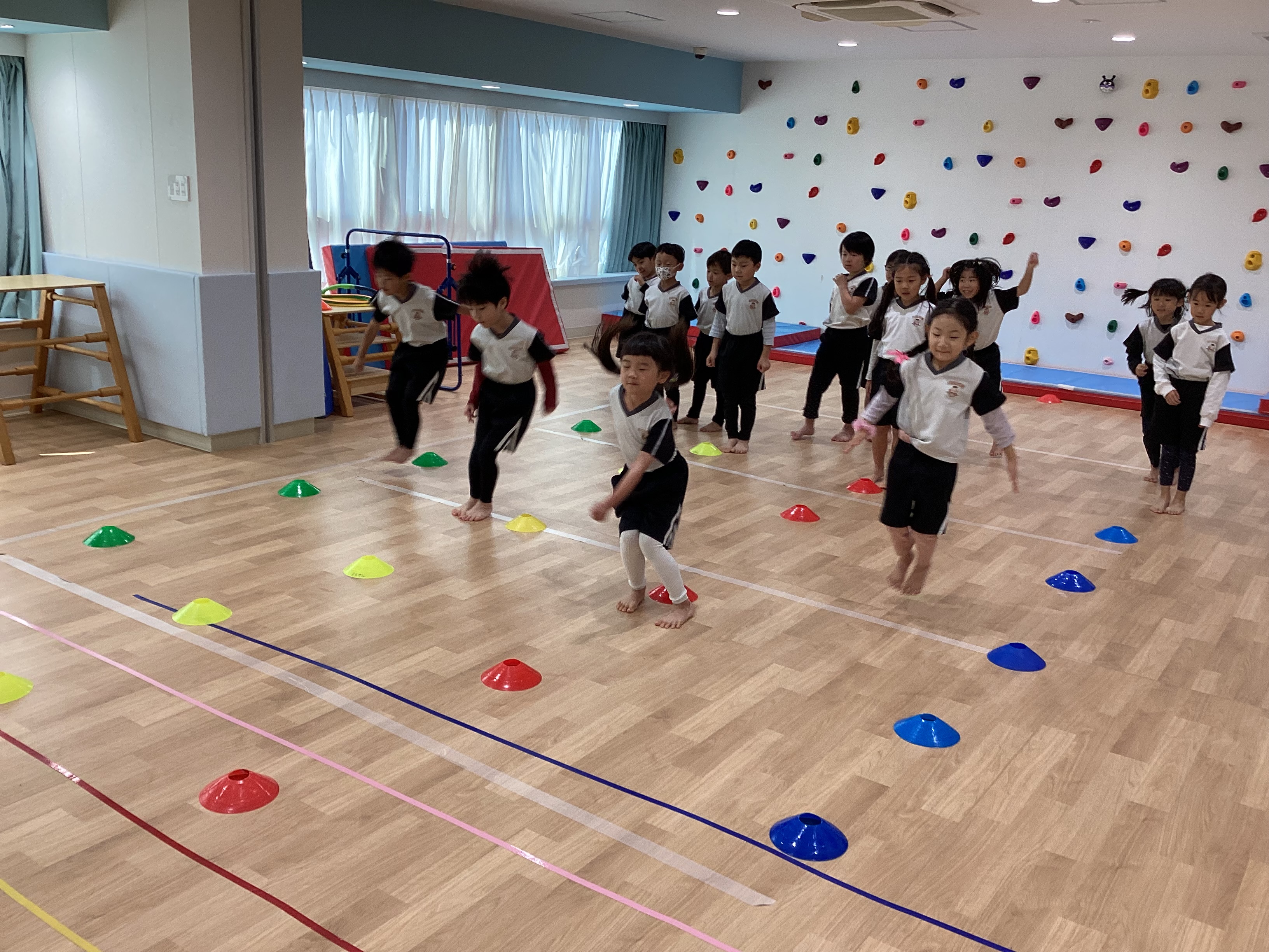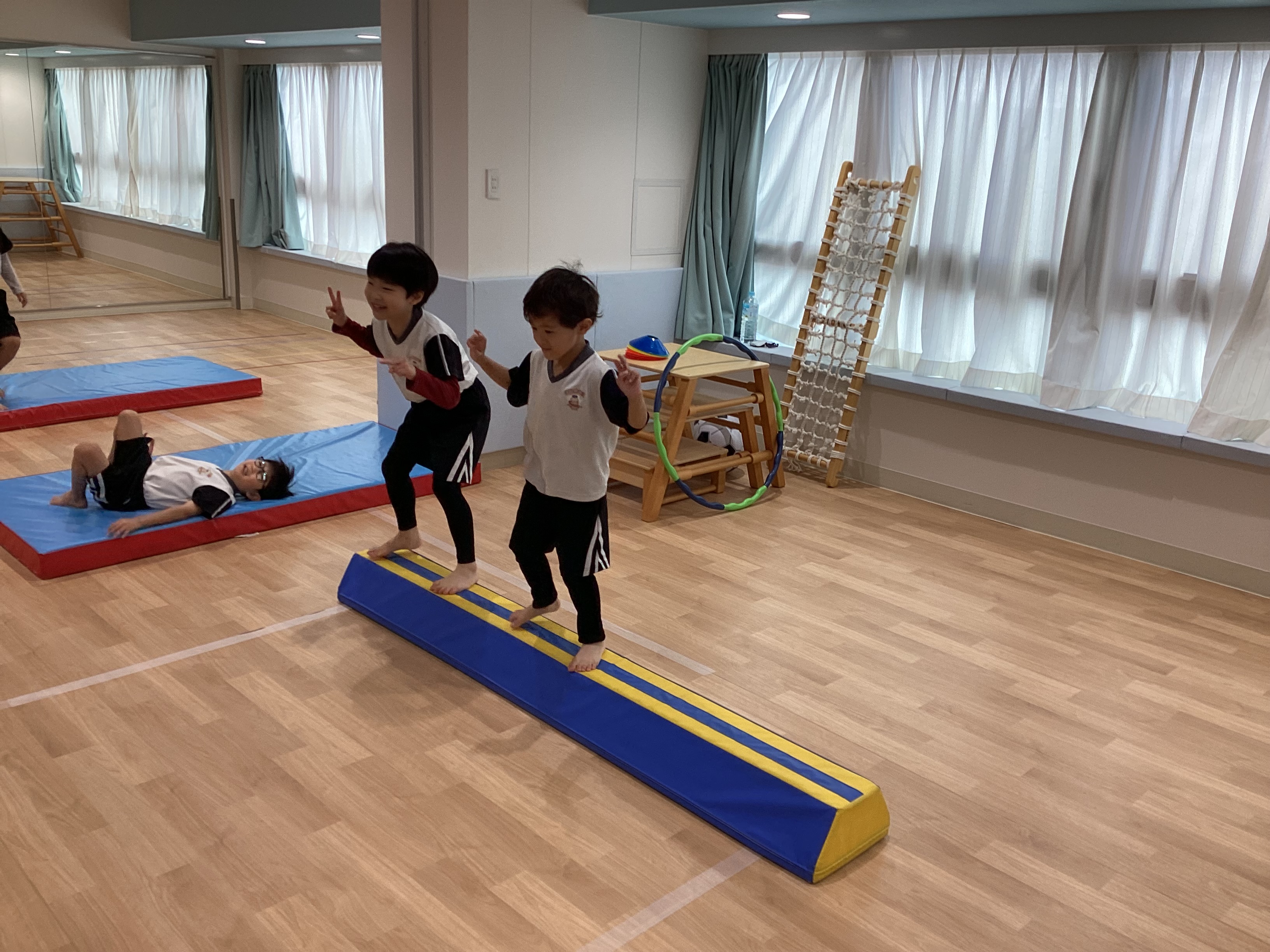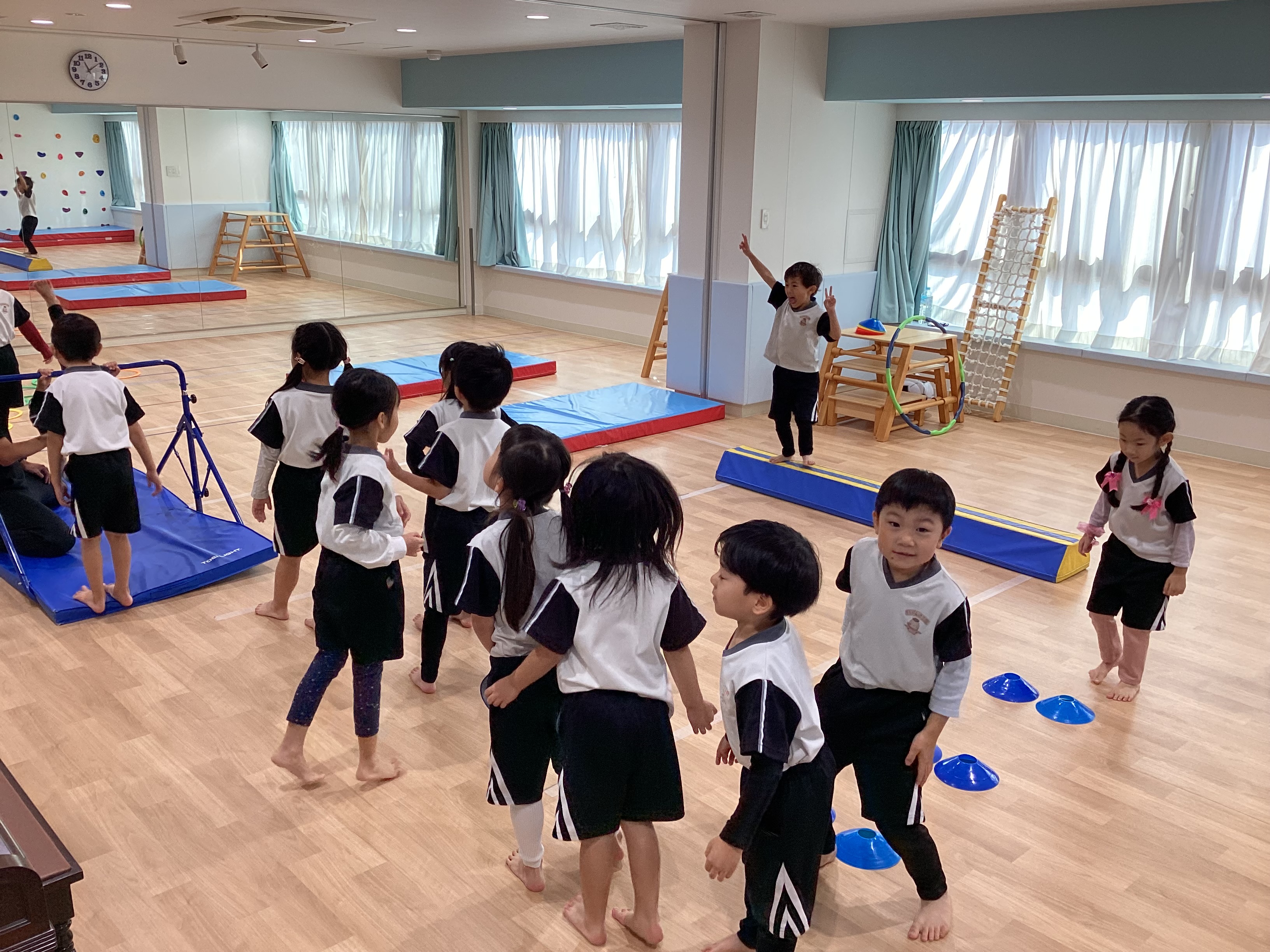 体操では、逆上がり、フープジャンプ、ジグザグジャンプ、橋渡り、サッカーなど様々な動きをして身体をおもいっきり動かして存分に楽しみましたよ😊みんな体操が大好きなようです💕