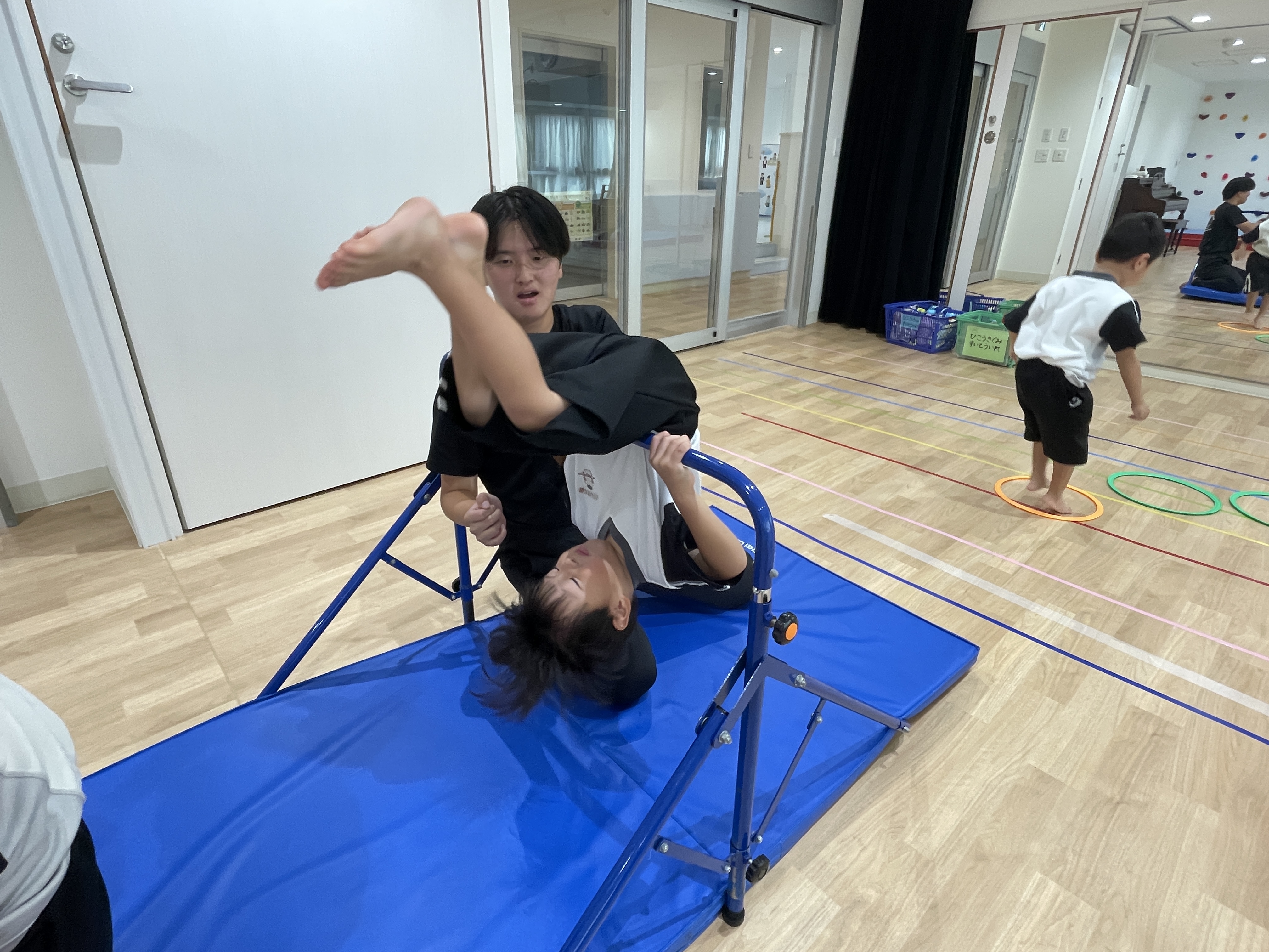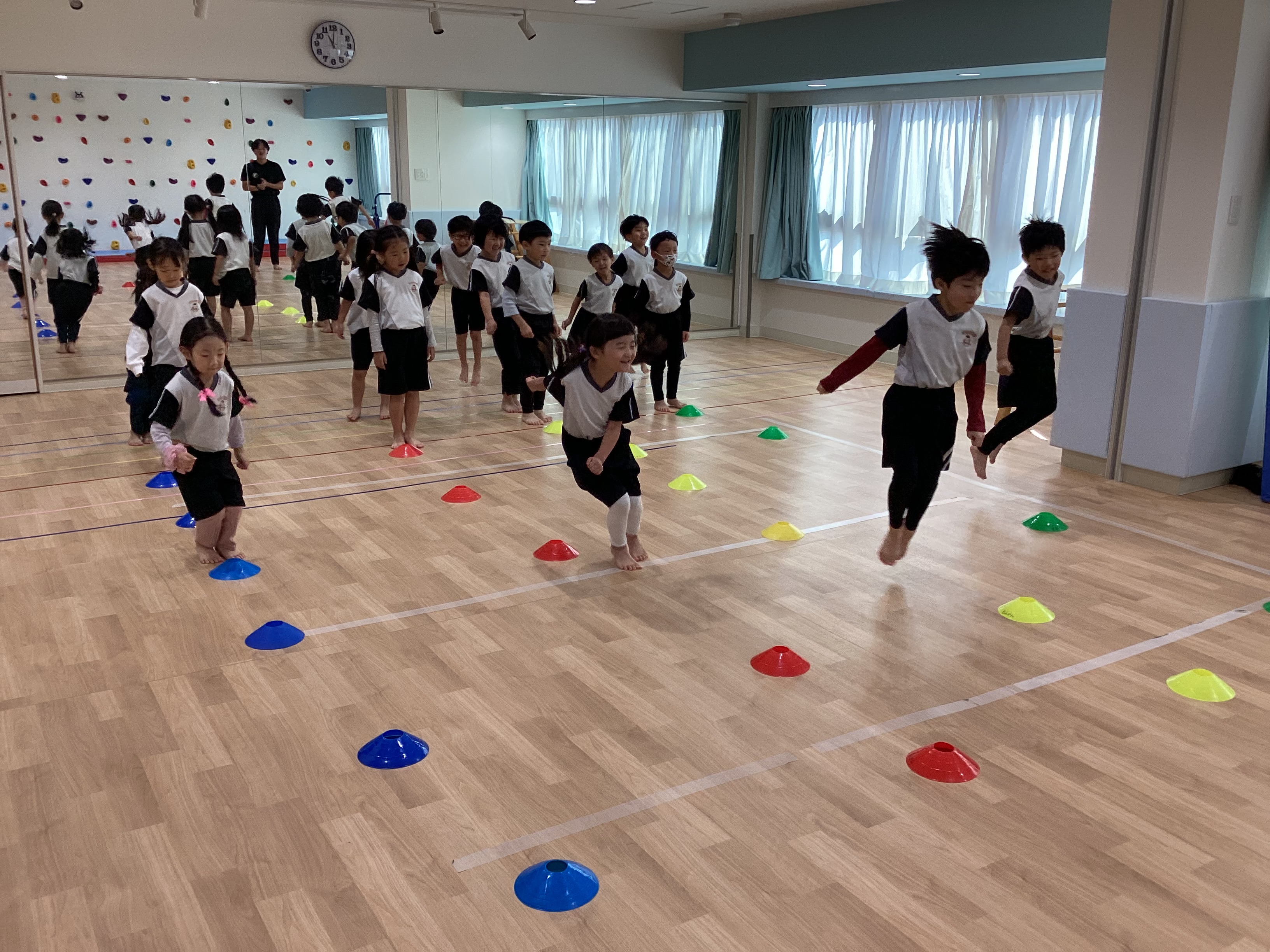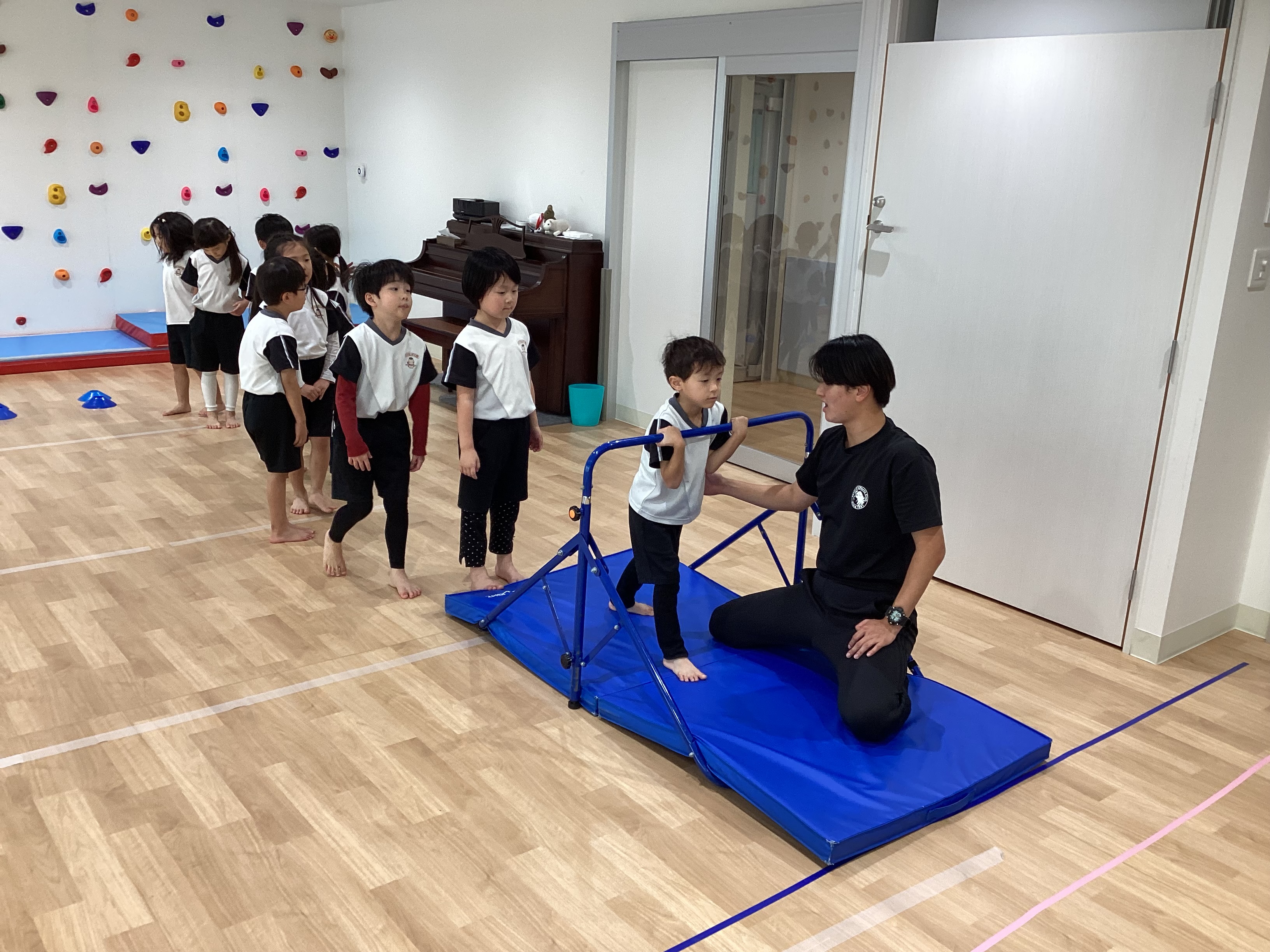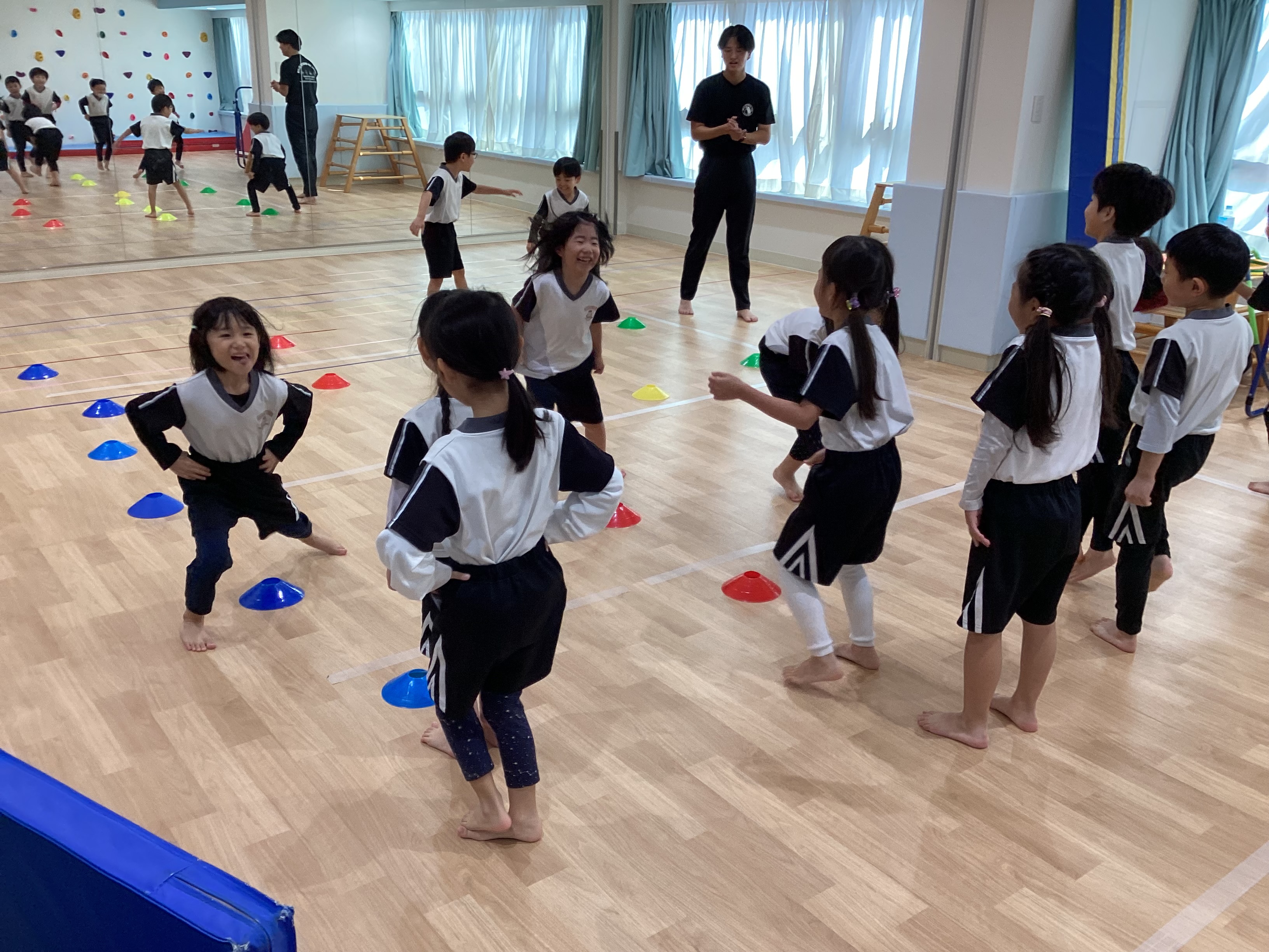 体操では、逆上がり、フープジャンプ、ジグザグジャンプ、橋渡り、サッカーなど様々な動きをして身体をおもいっきり動かして存分に楽しみましたよ😊みんな体操が大好きなようです💕