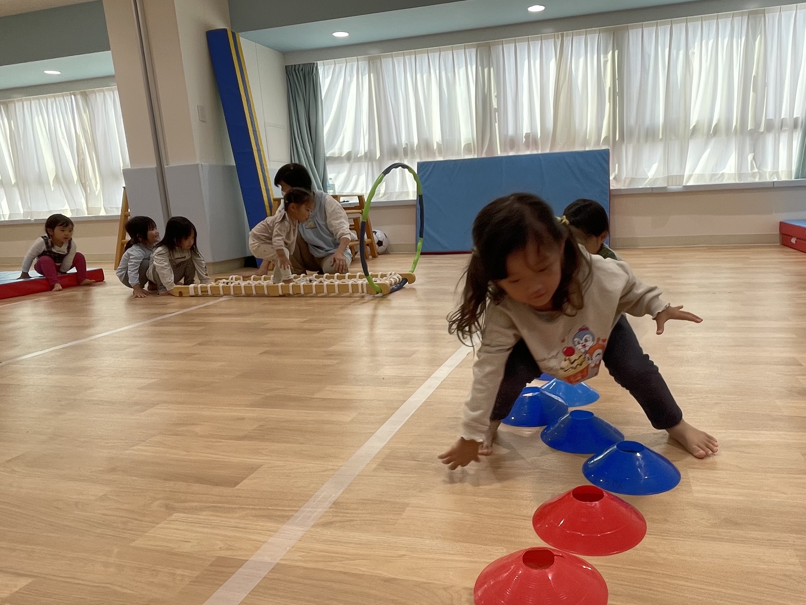 体操の先生が準備しているので上手に待ってくれていましたよ☺️今日は何が出てくるのかな?
