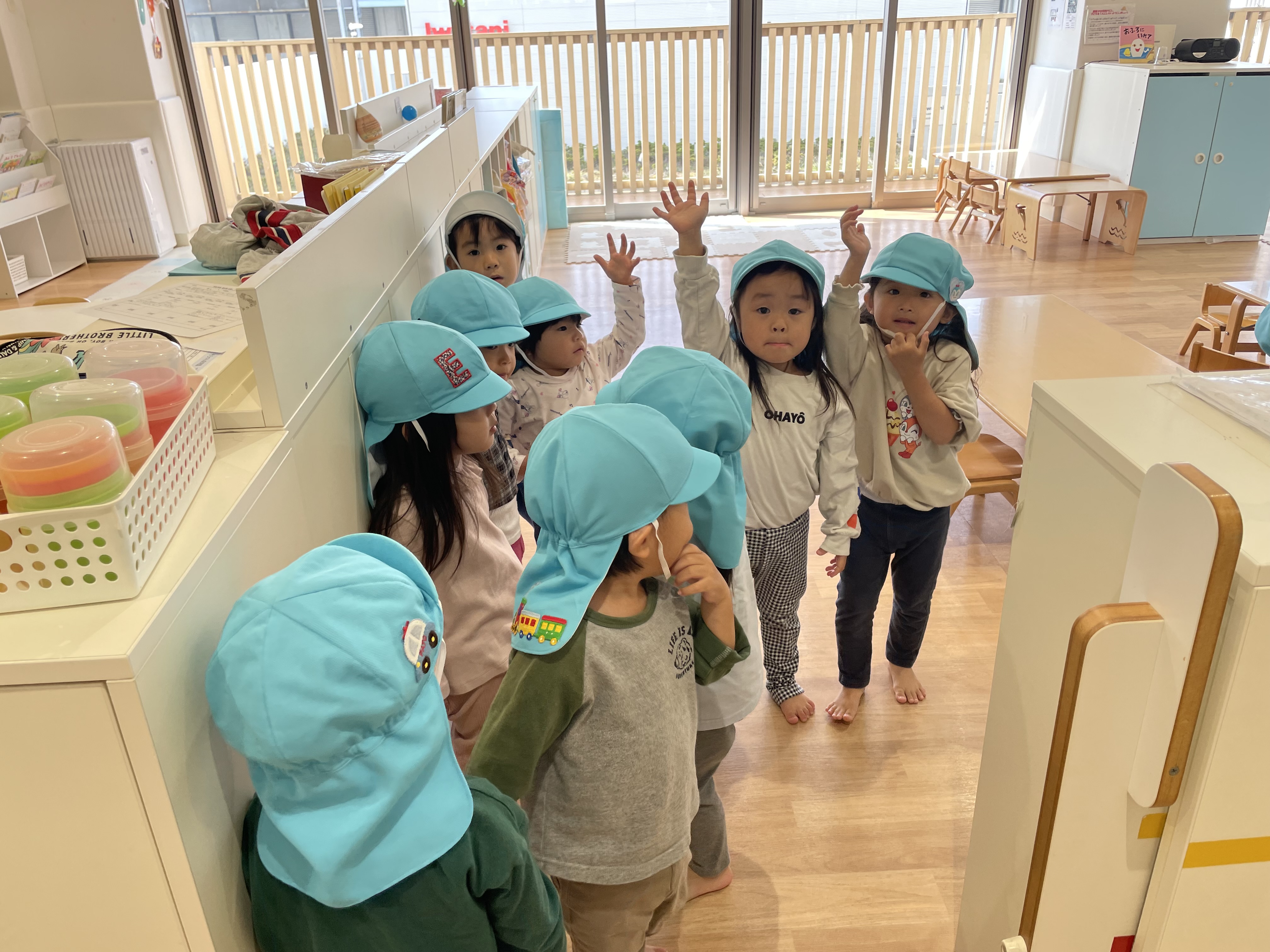 体操が終わったら園庭に行くので準備しましたよ。