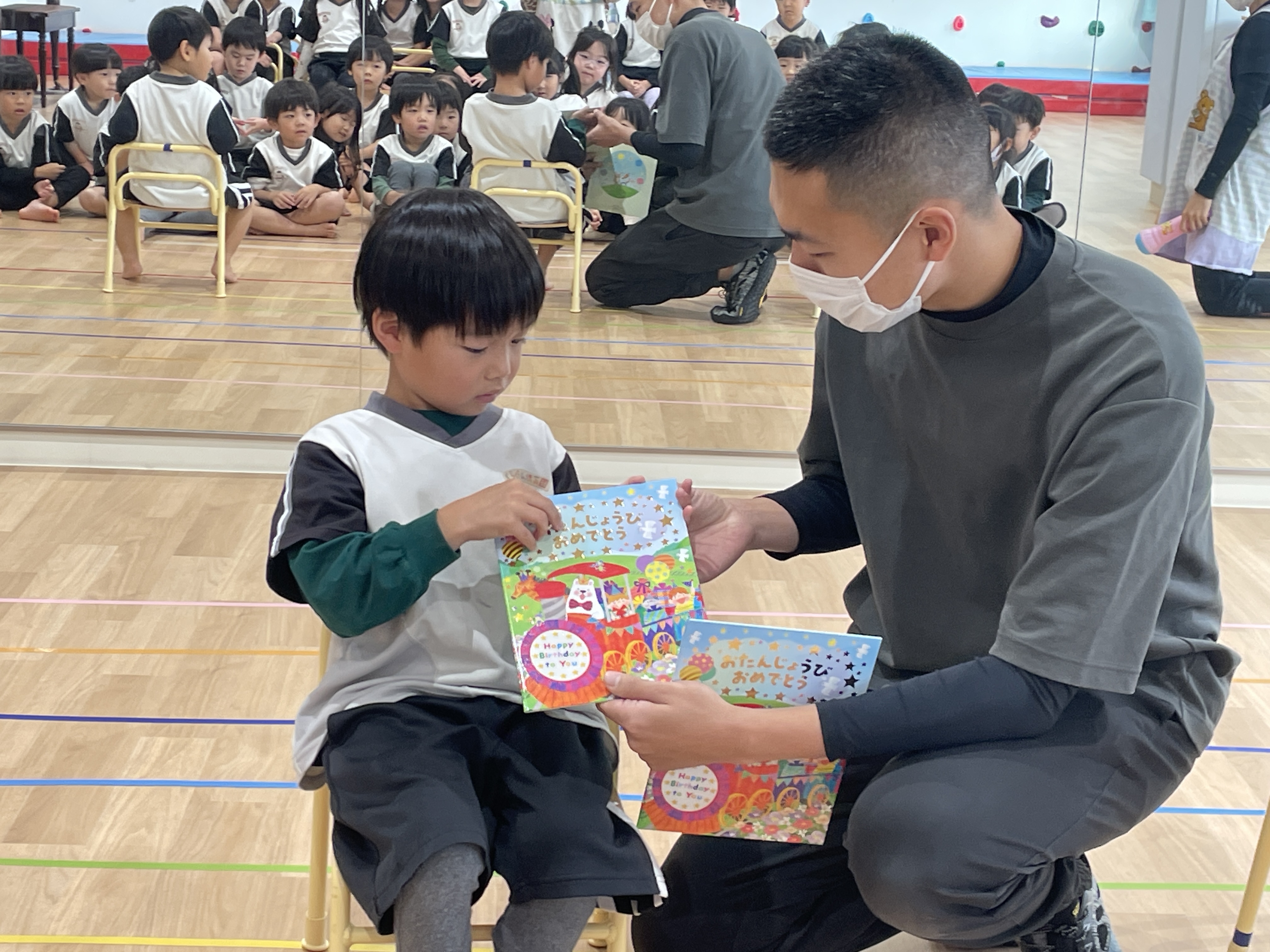 先生からのプレゼントカードやみんなのお歌のプレゼントに満面の笑みでした🤭