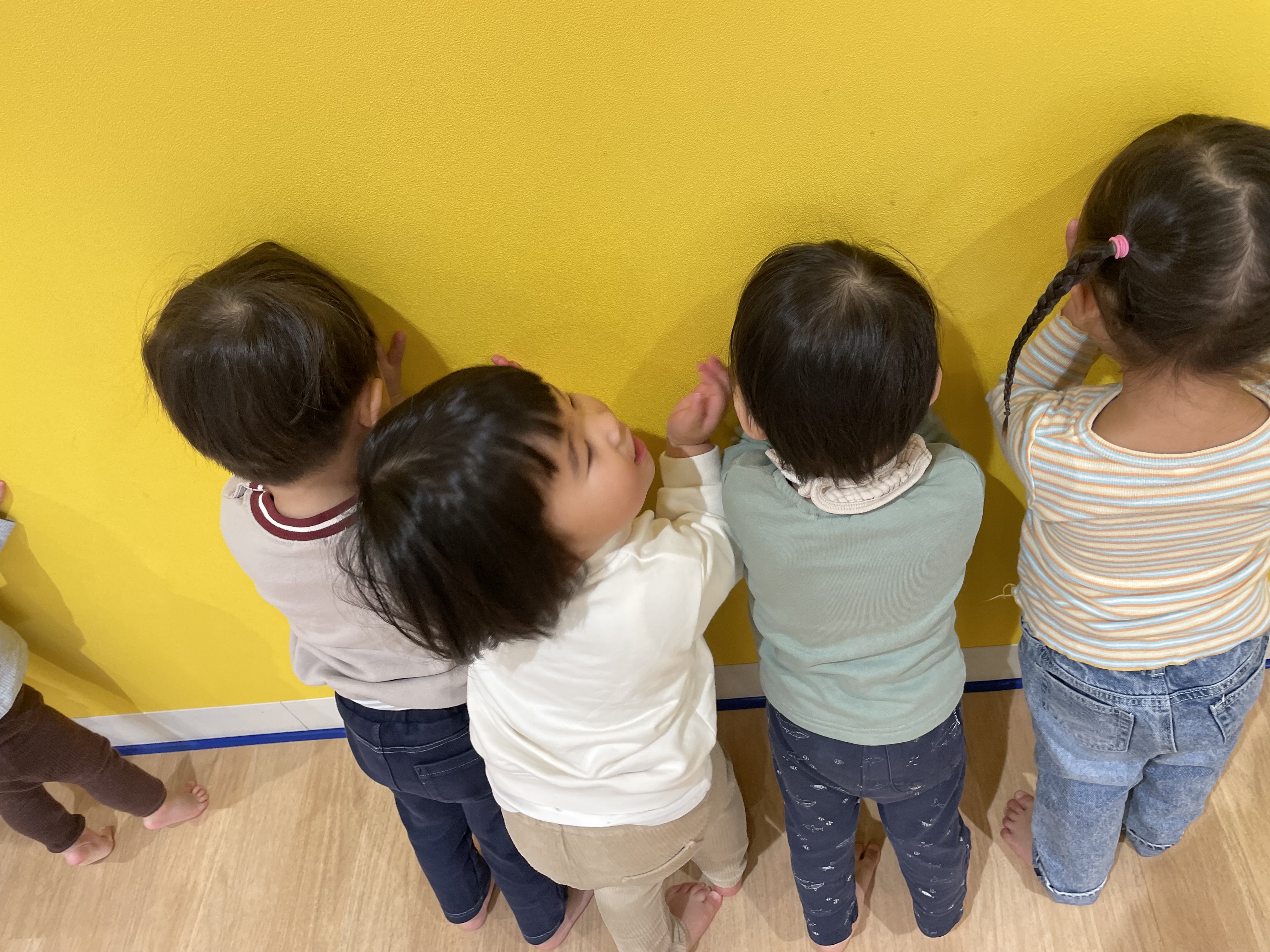 壁ぺったん❣️お船、きりん、隠れたよ。