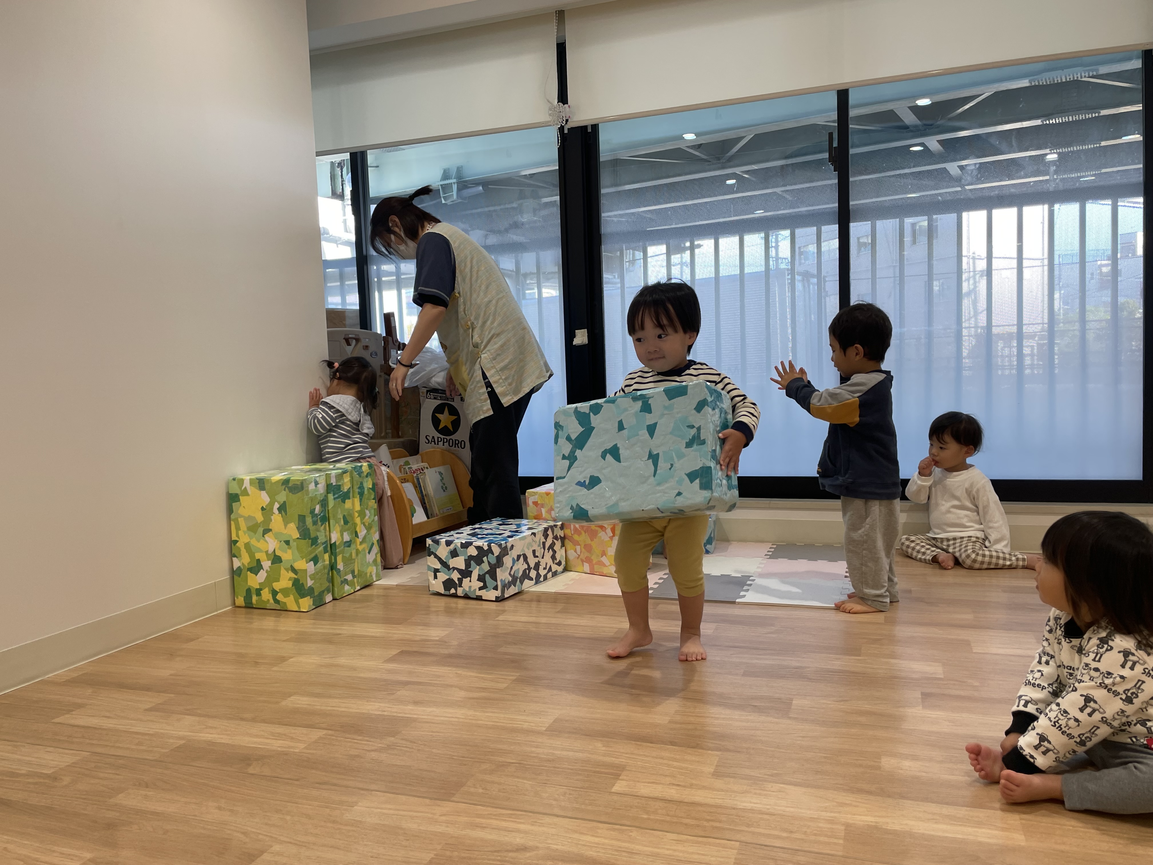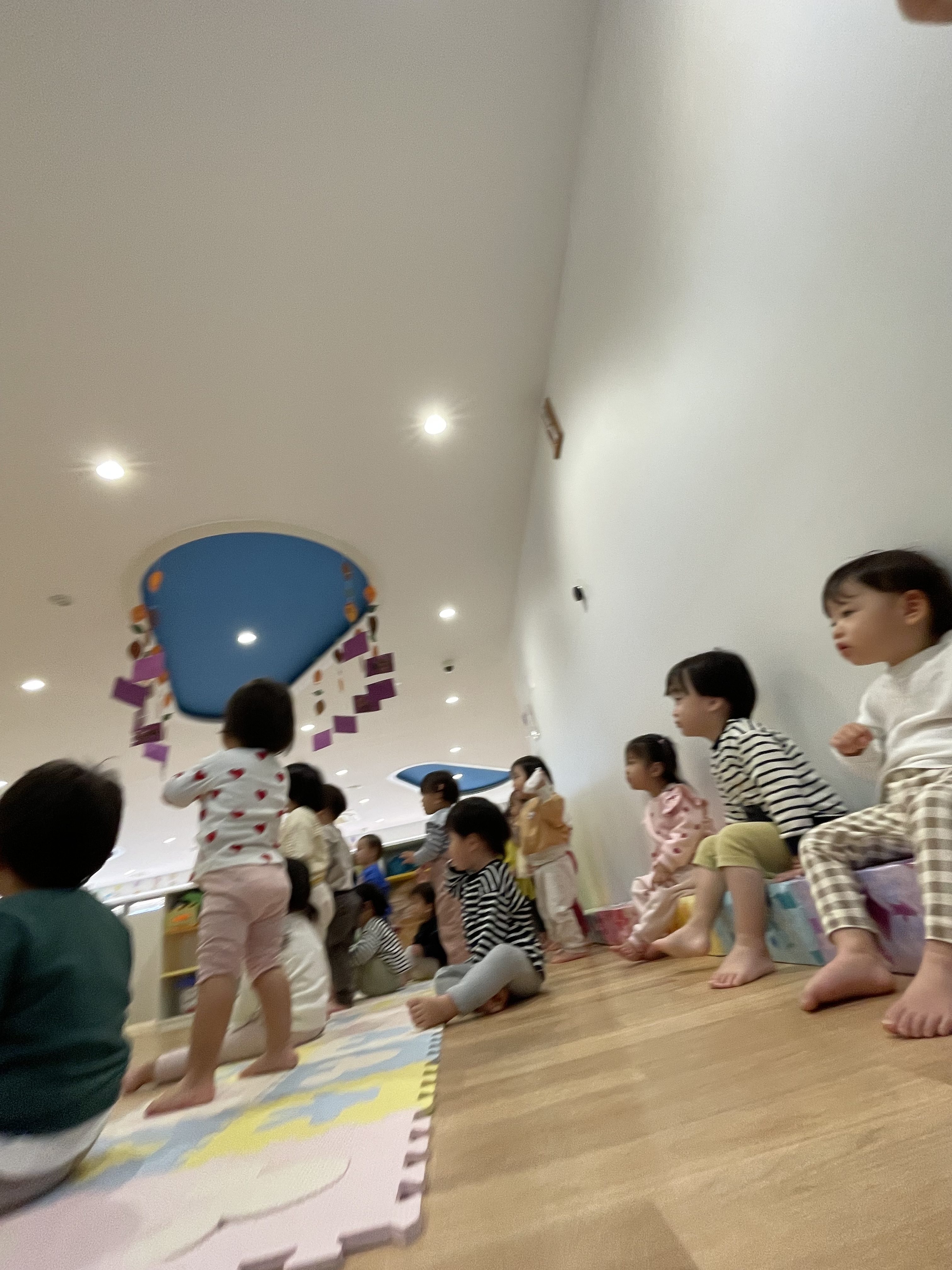 つき組さんは少し前から、自分の椅子に座って参加しています!まずそれを運ぶところから。