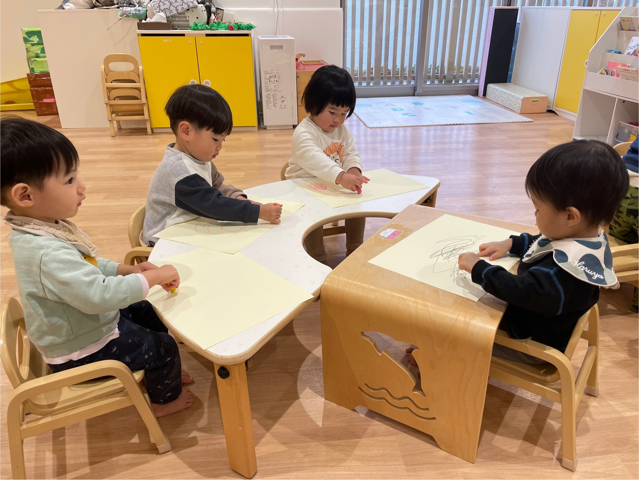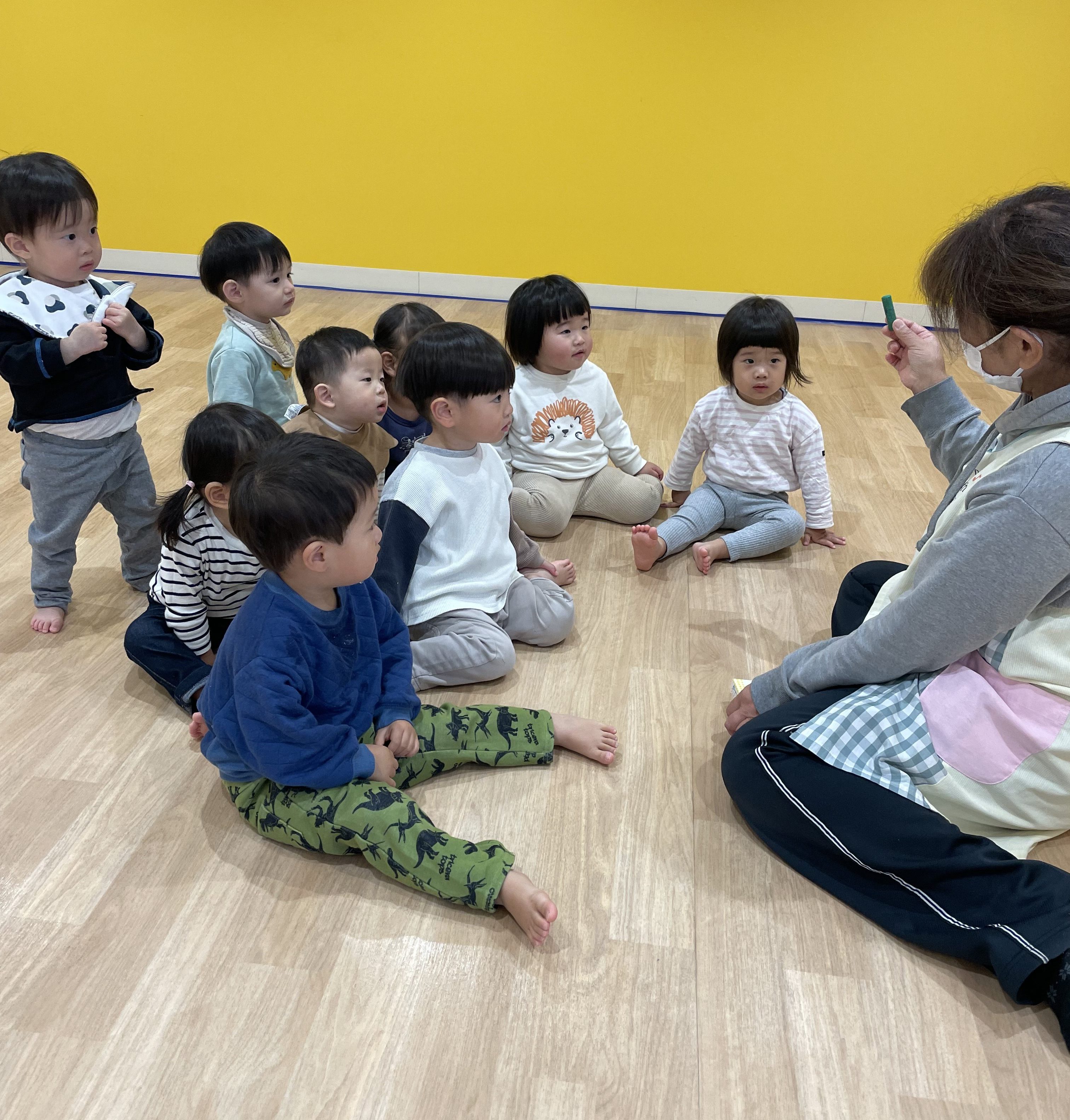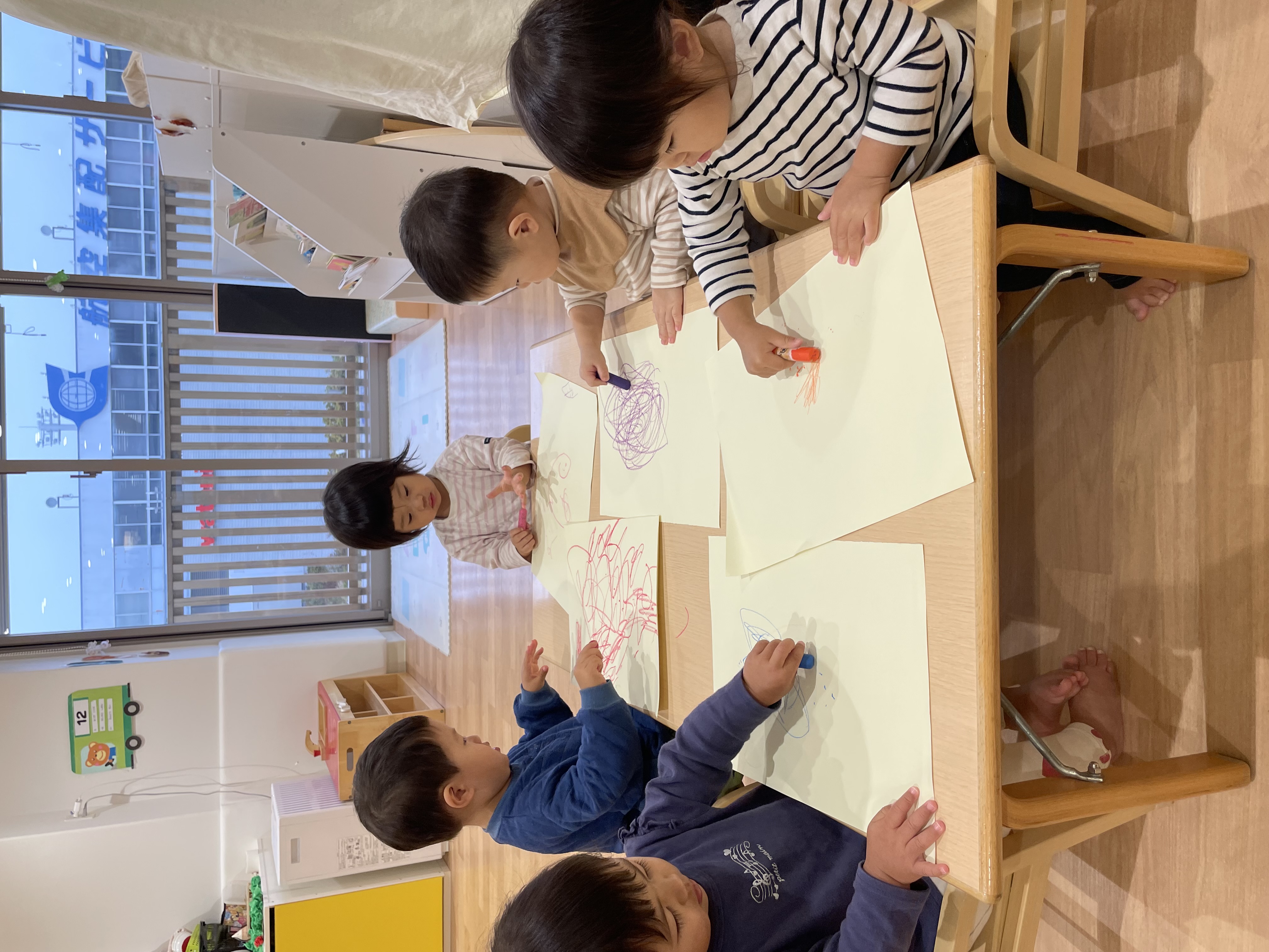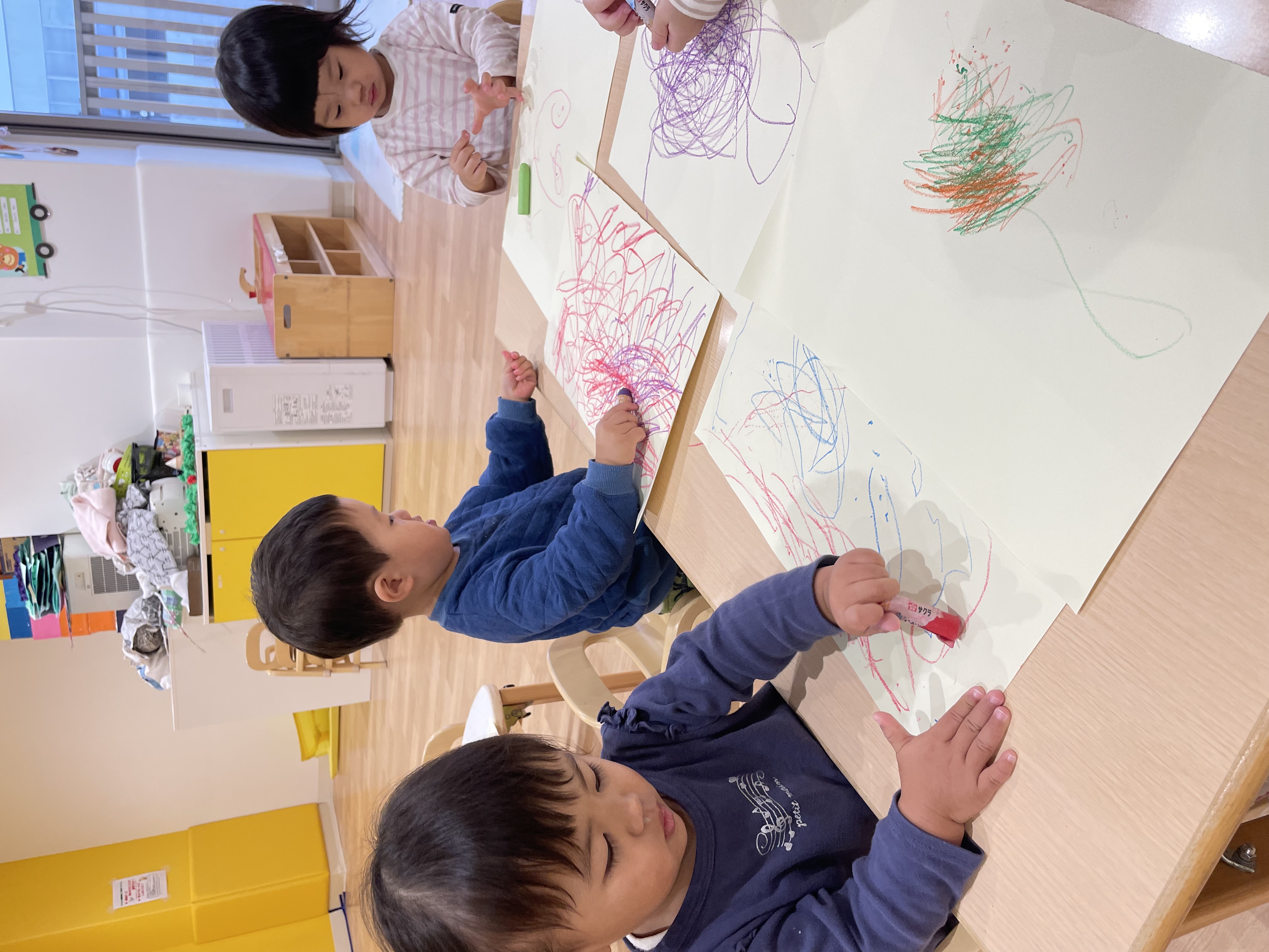 保育者の話を聞き、みんなでお絵描きいっぱいしたよ!