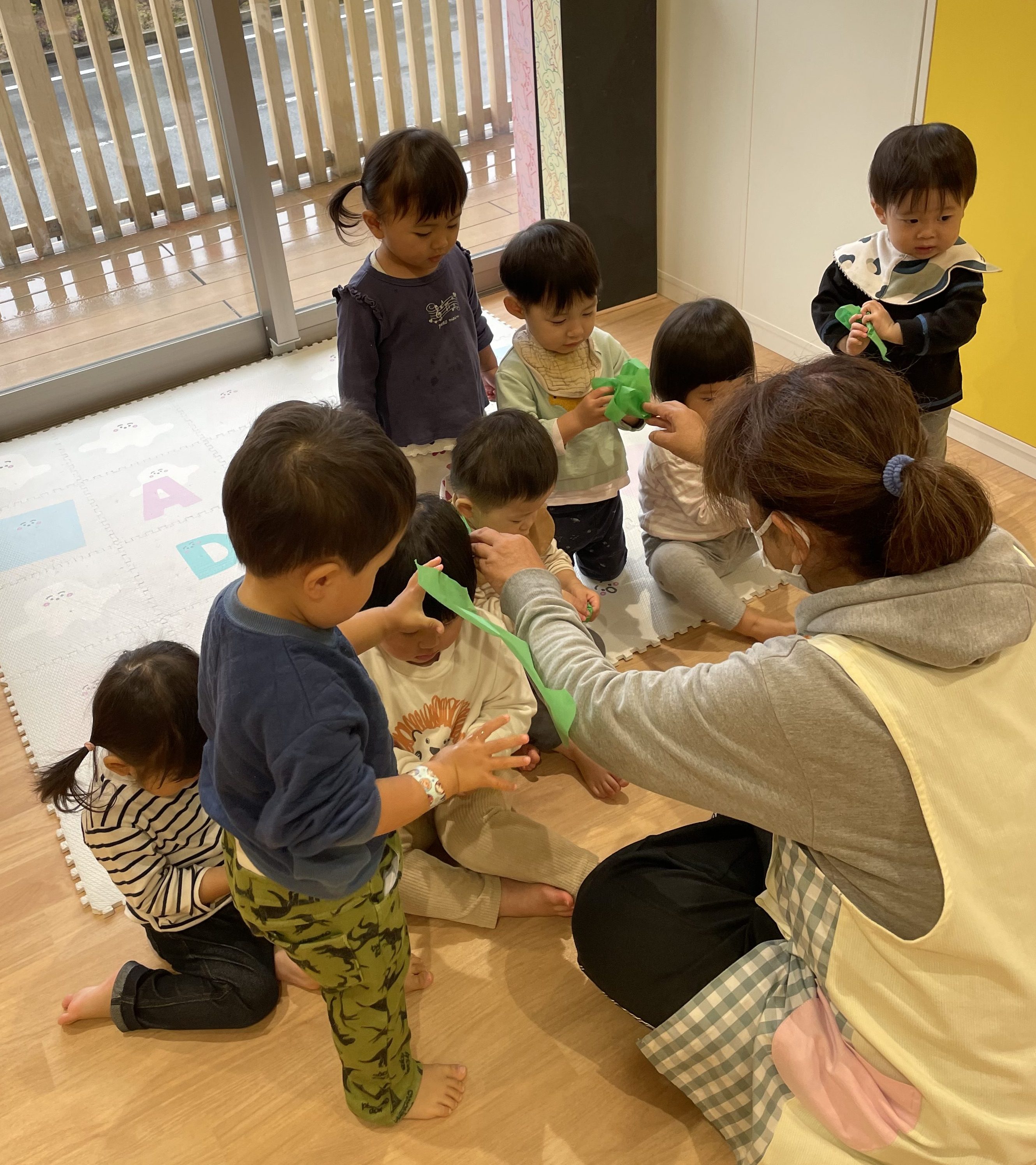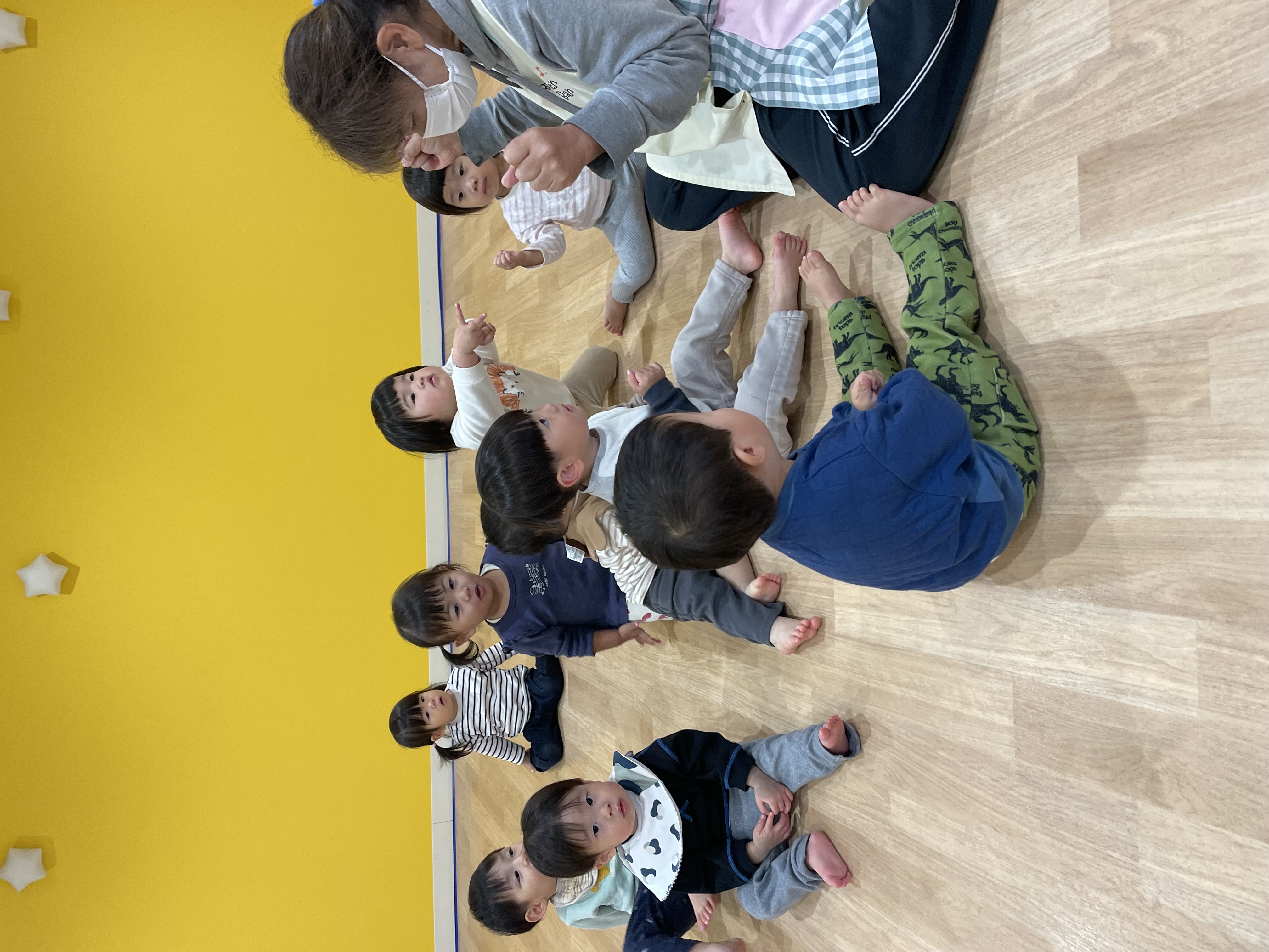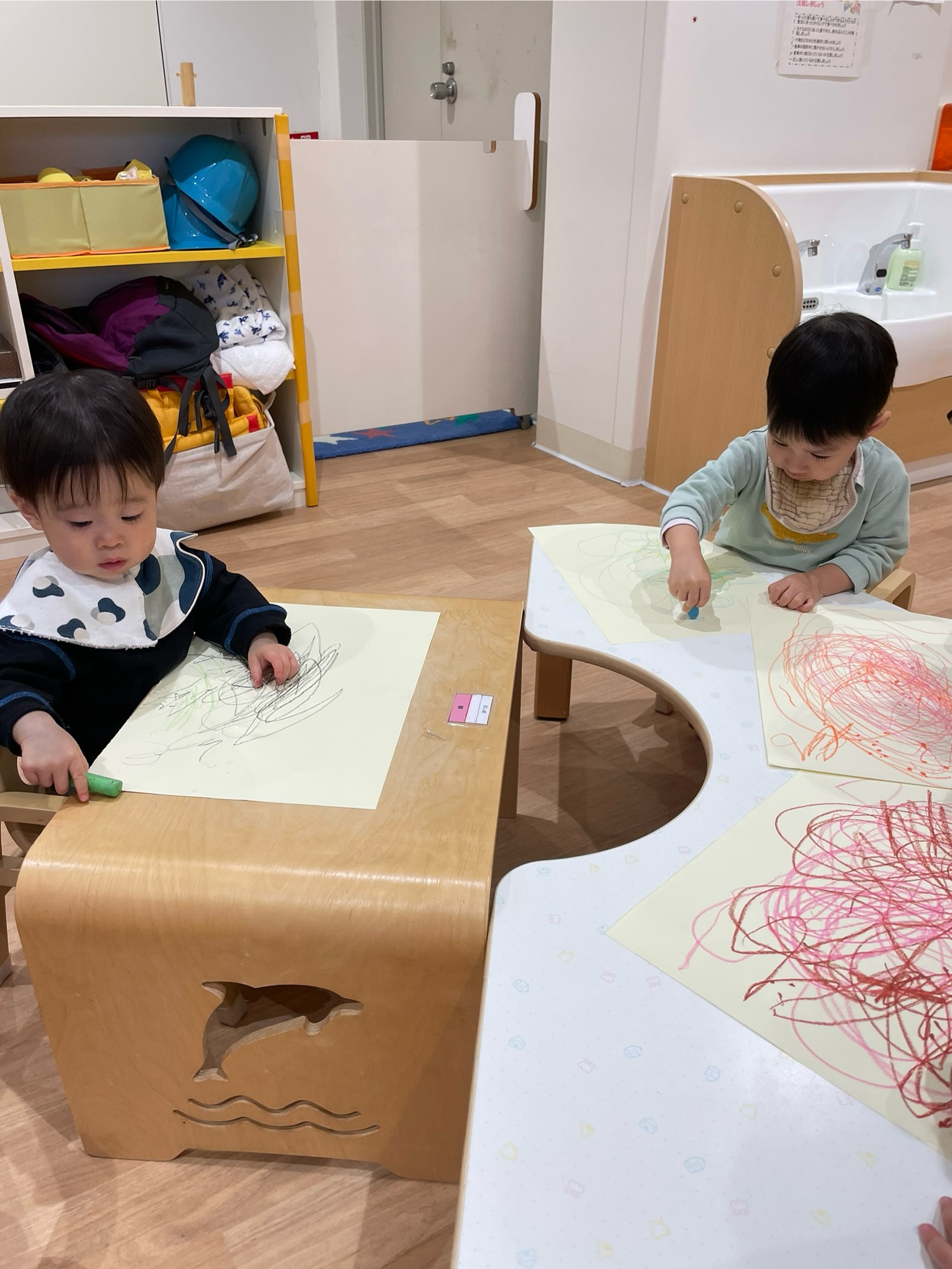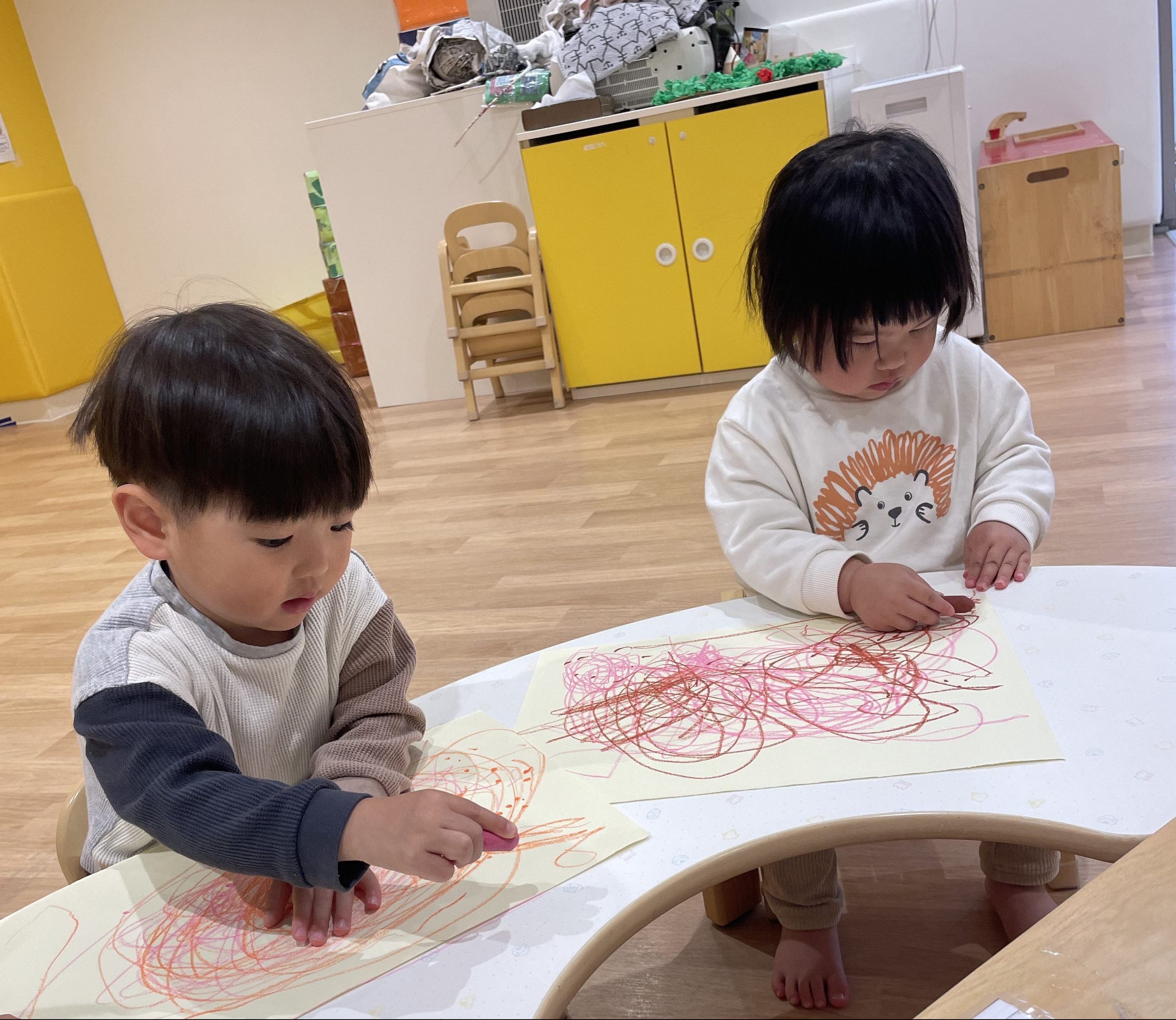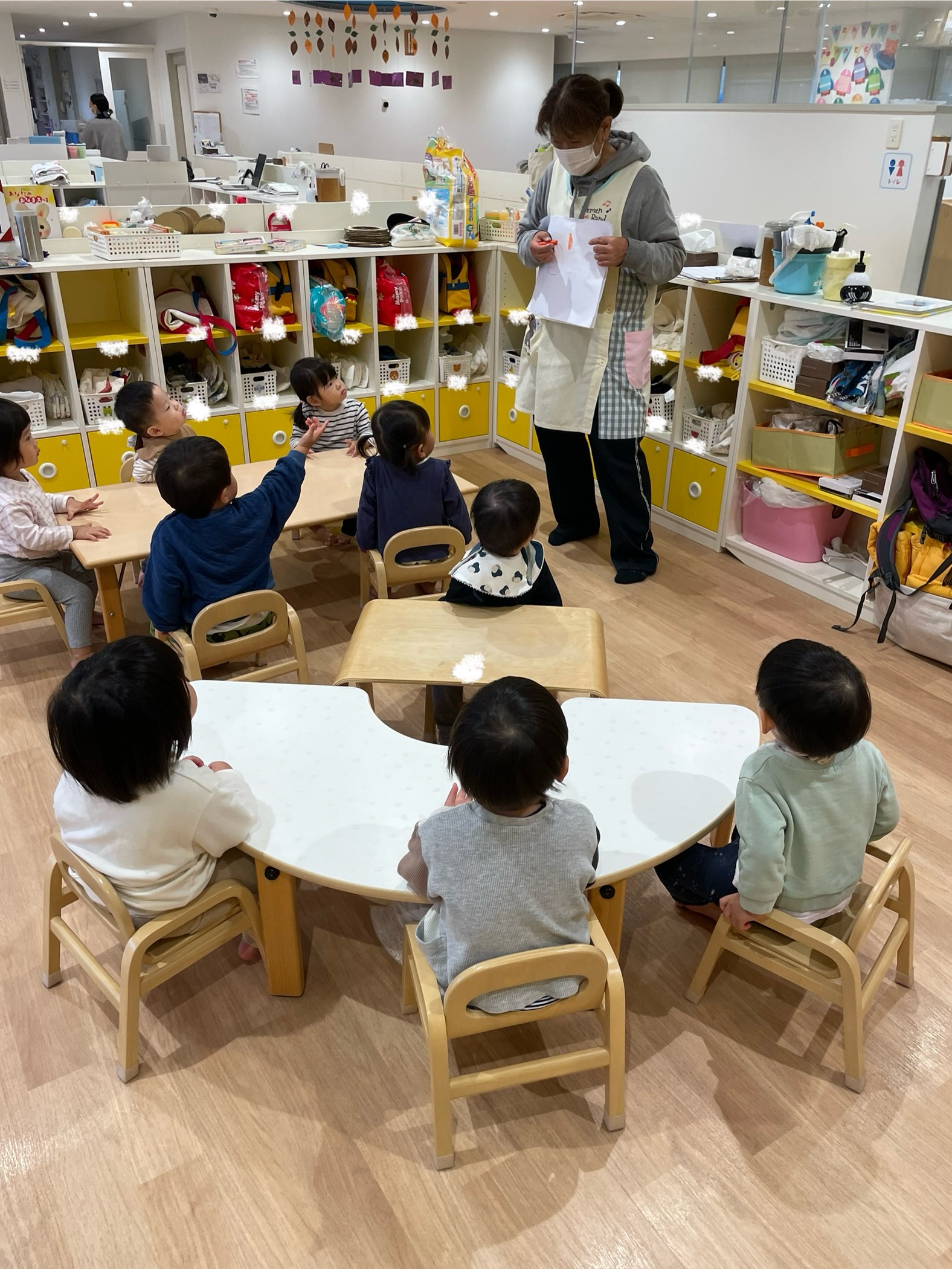 保育者の話を聞き、みんなでお絵描きいっぱいしたよ!