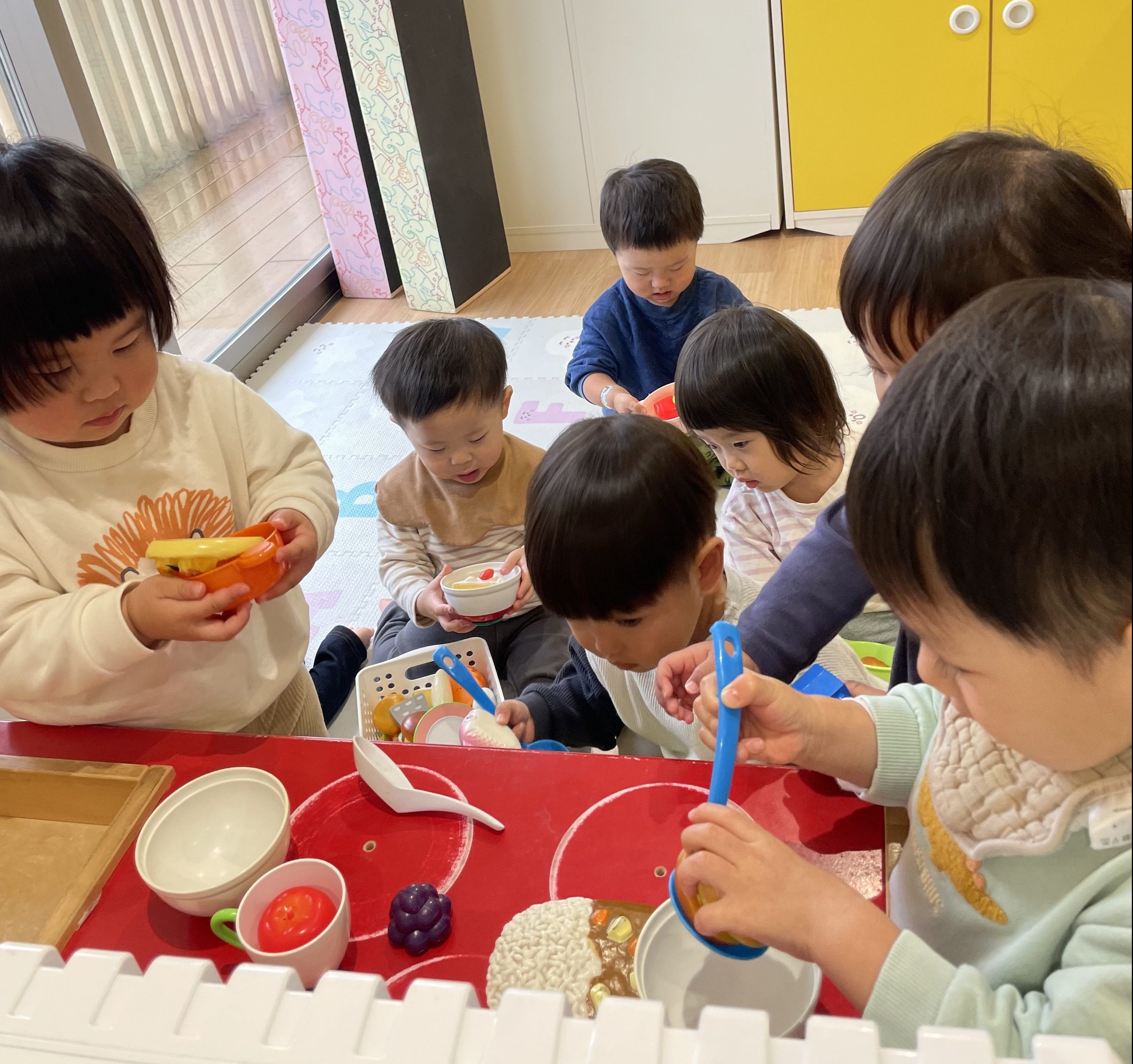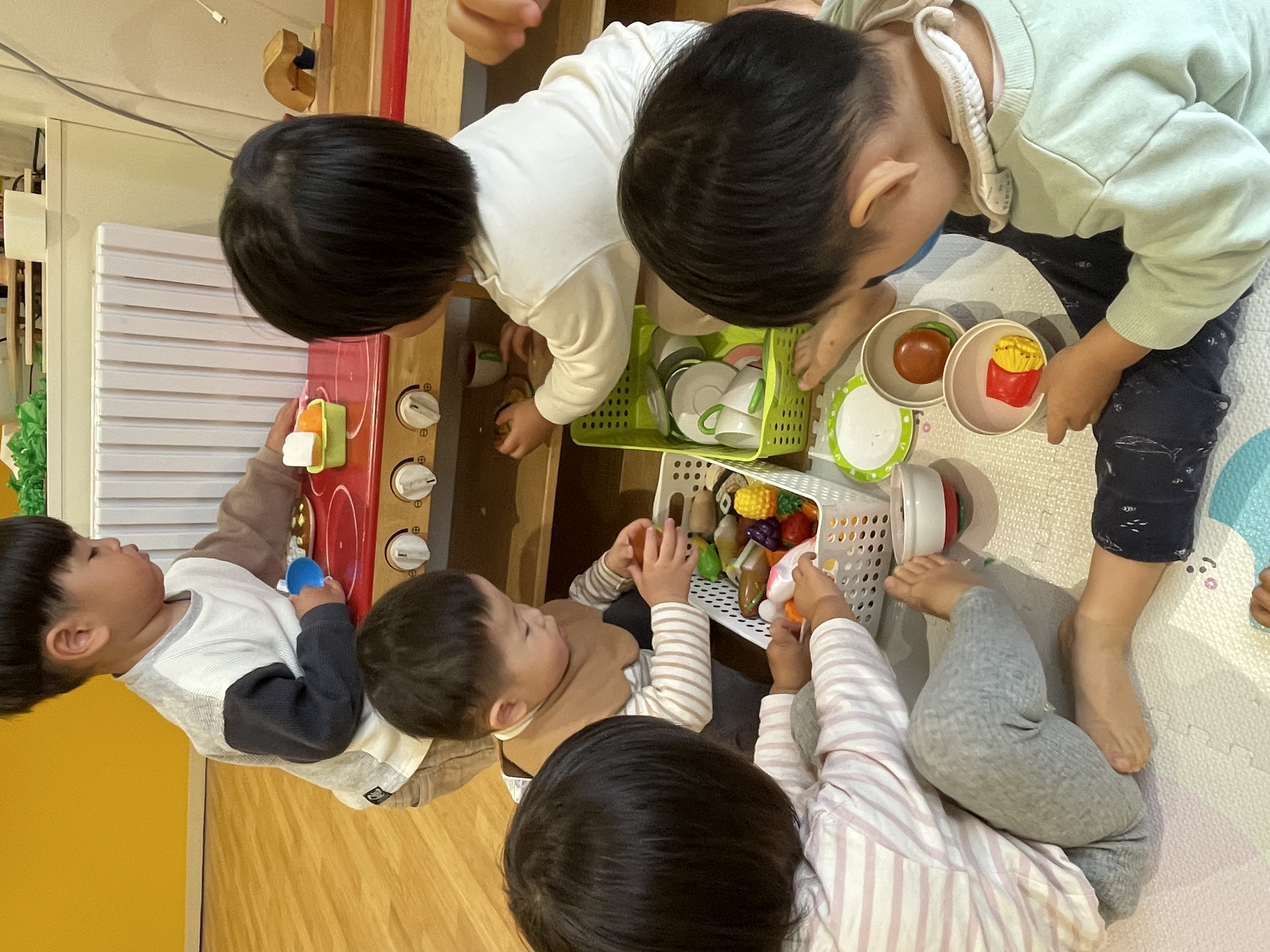 お部屋遊びでは小さなシェフがお料理を作っていました。