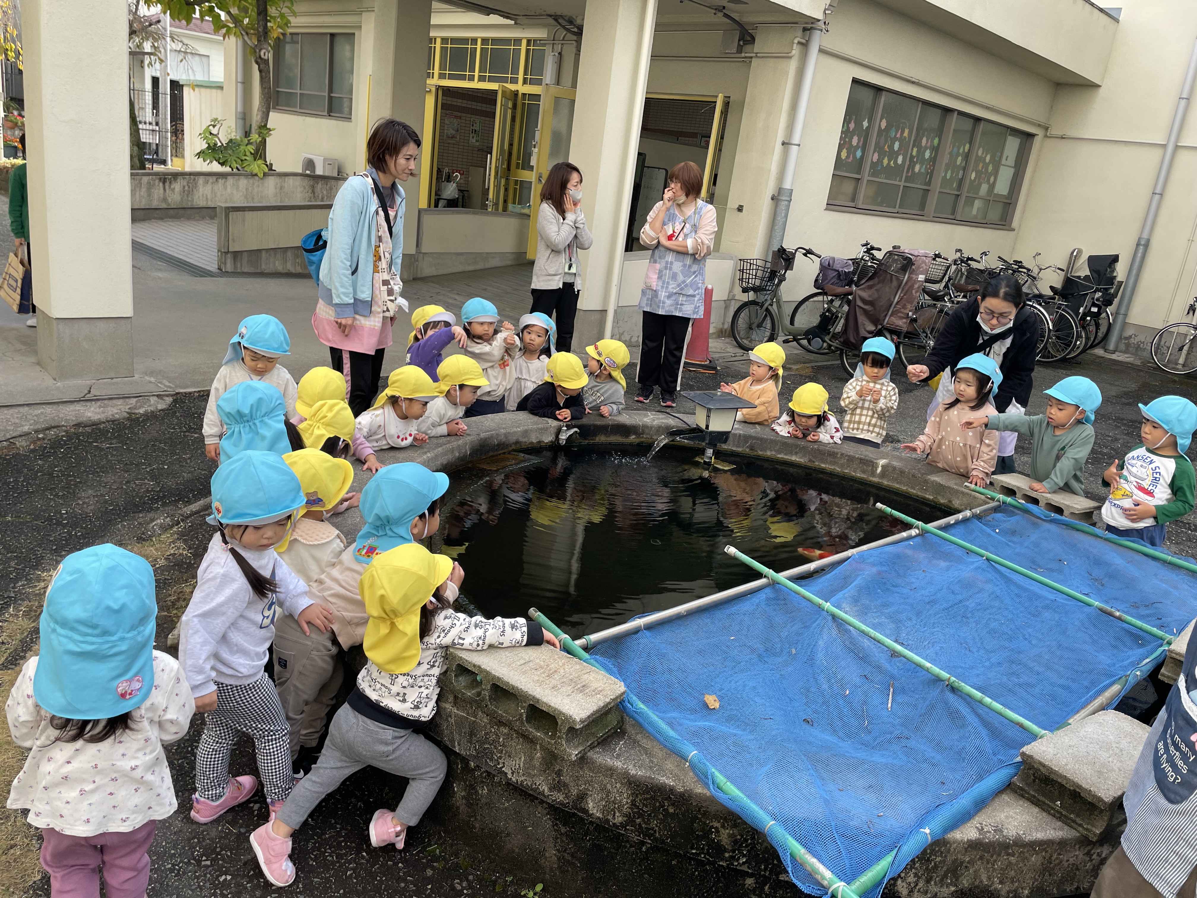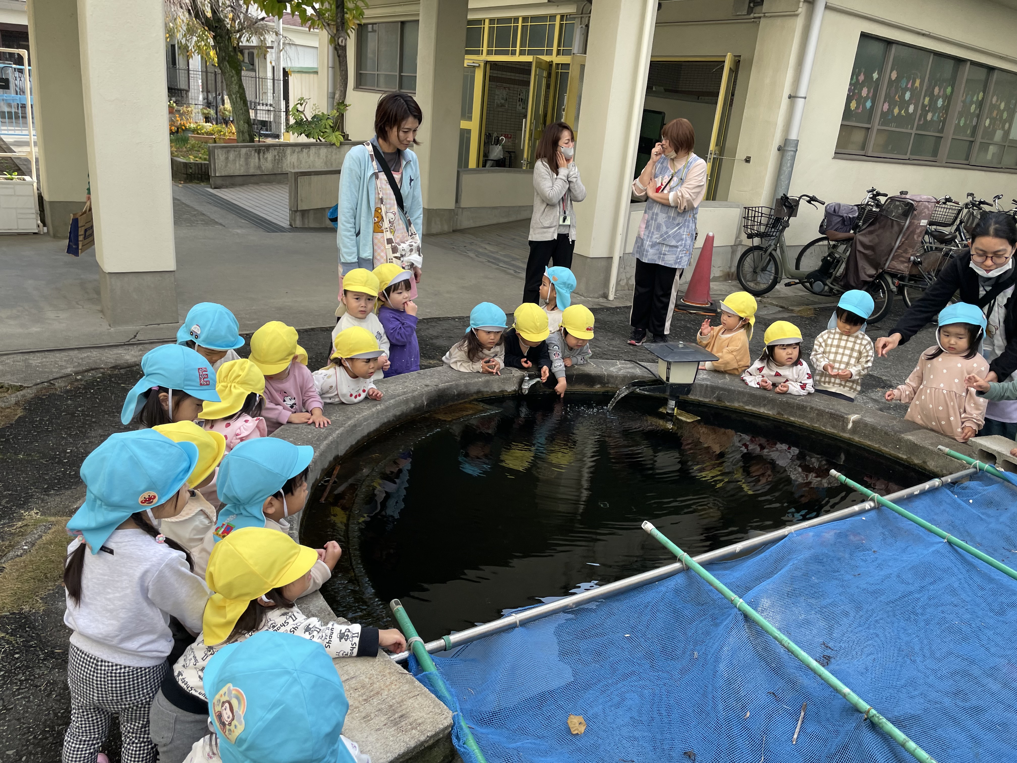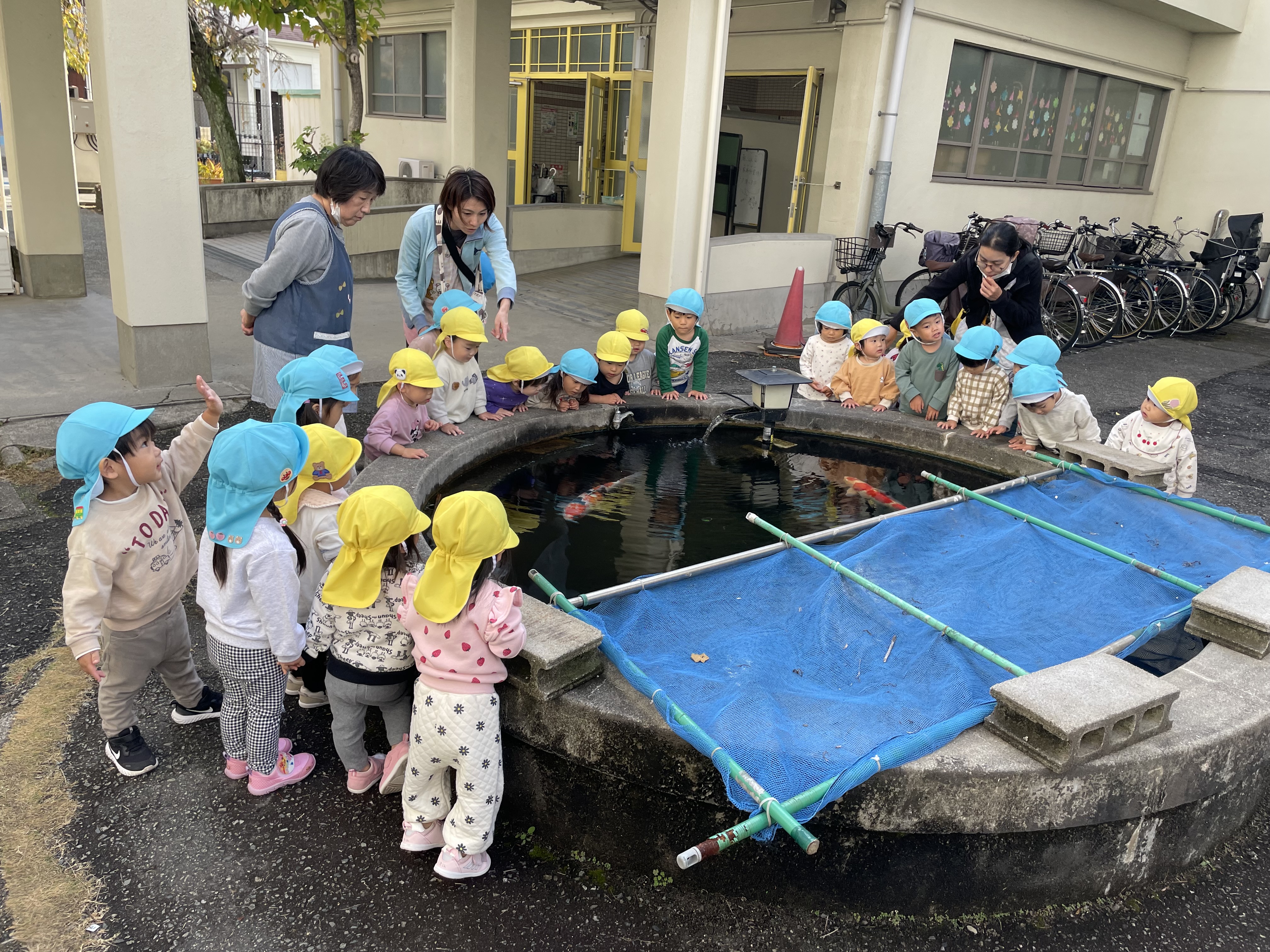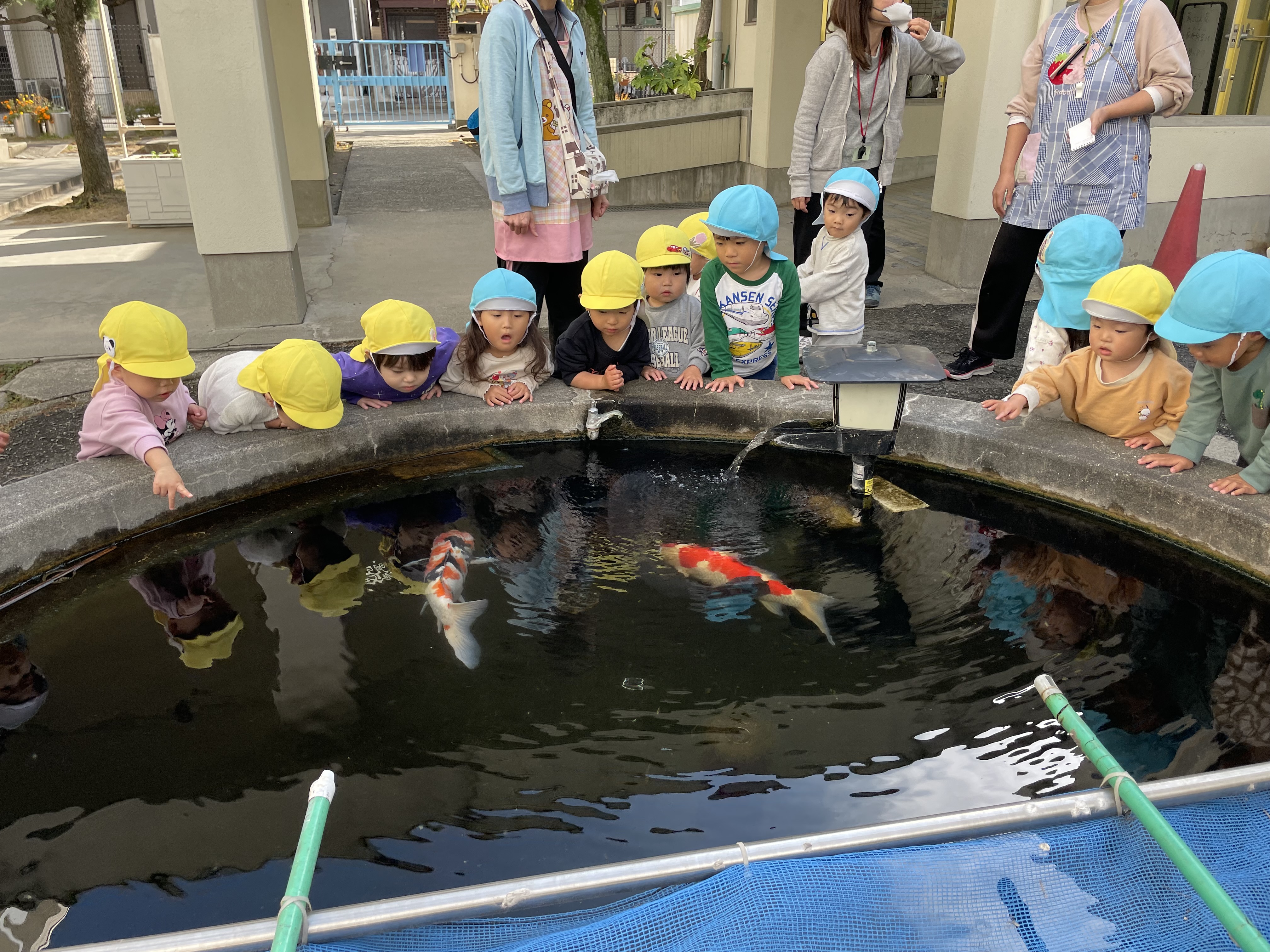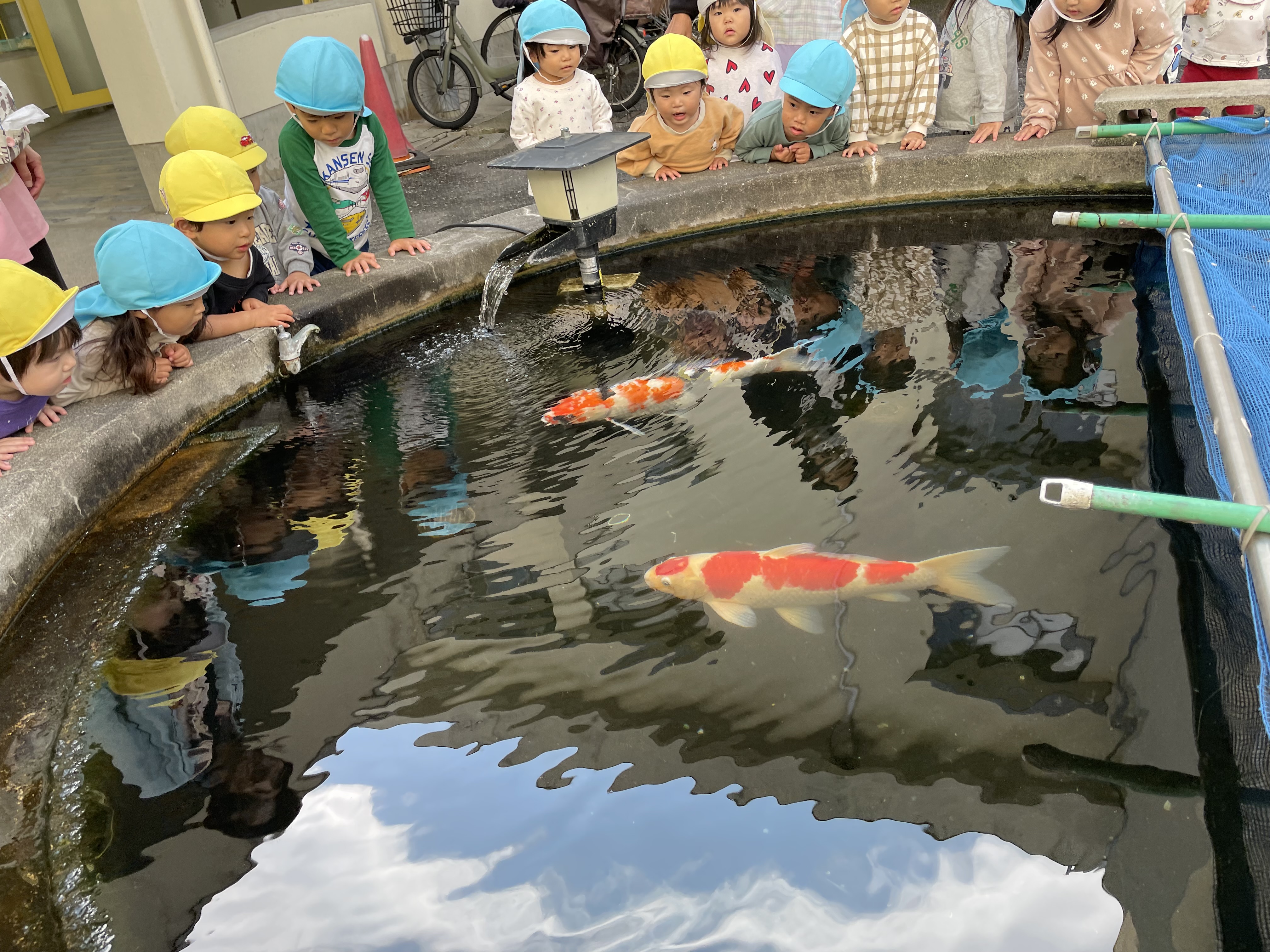 小学校に着くと、大きな池があり、そこには鯉が🐟