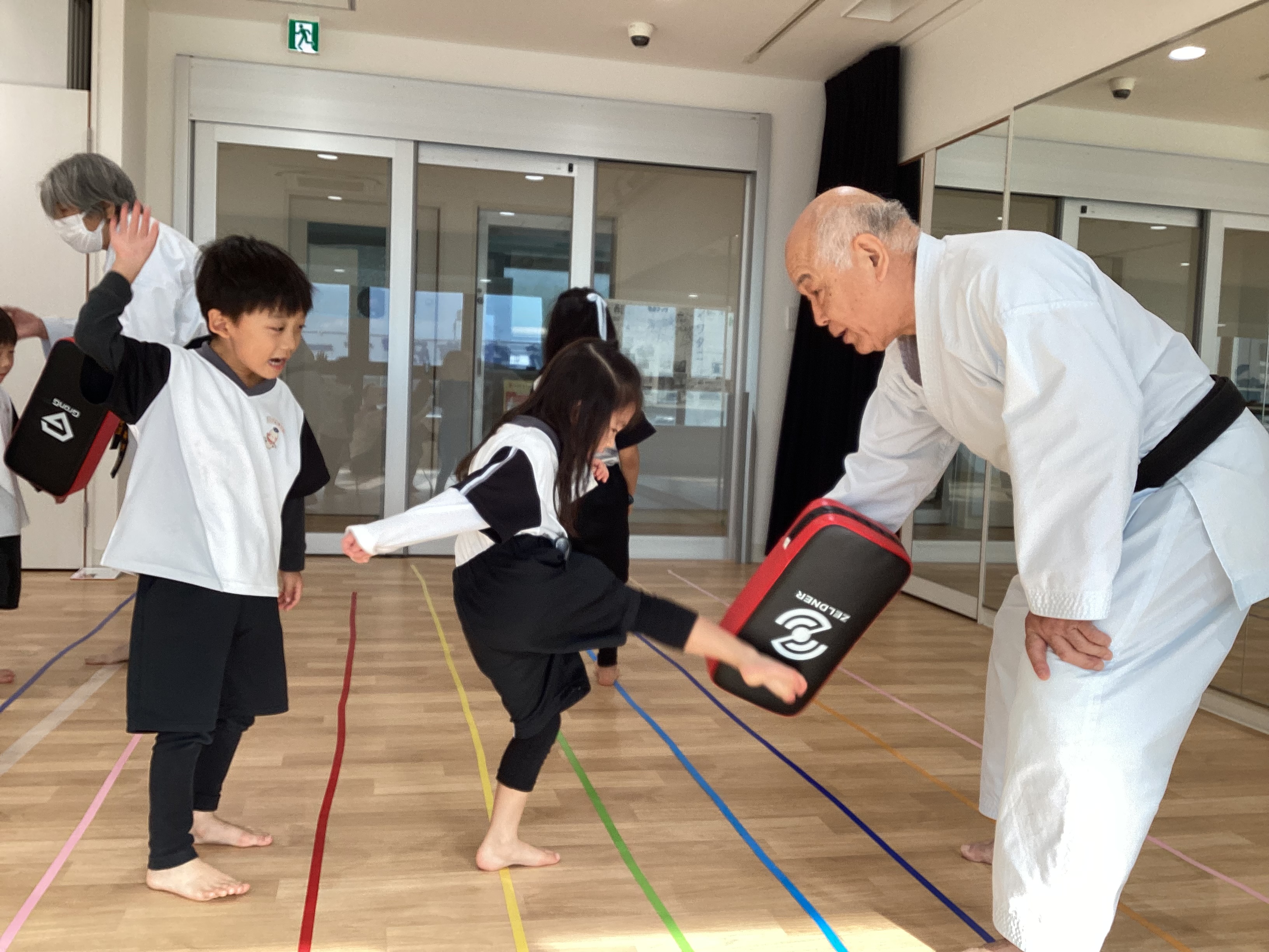 空手では、体全身を使って勢いよく蹴りとつきをして頑張っています。みんな様になってきていますよ⭐