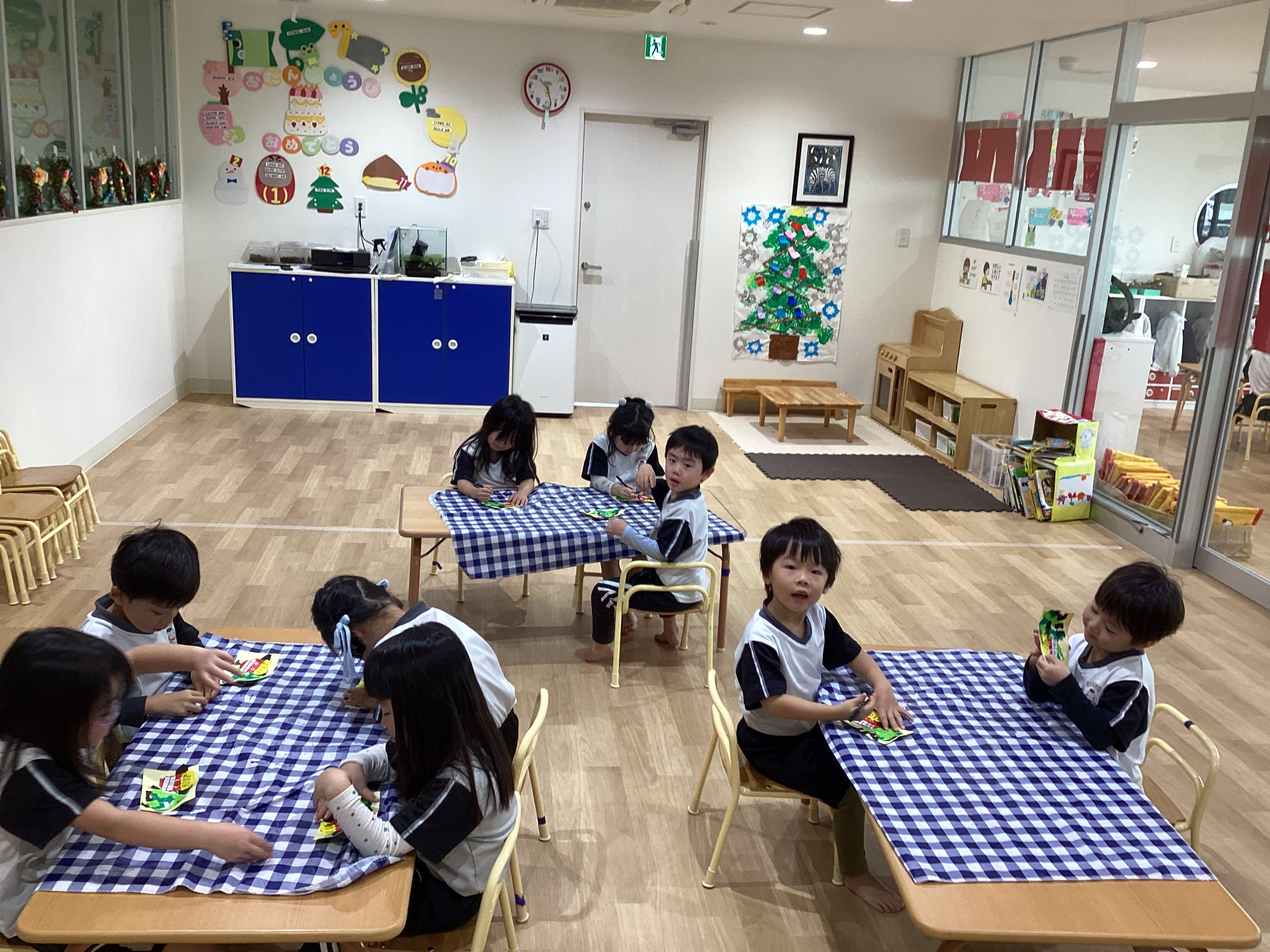 年賀状制作に取り組みました( ´∀` )獅子舞は、折り紙のちぎり絵で作りましたよ。獅子舞がどの様な物か、来年は何年かを考えながら作っていきました。
