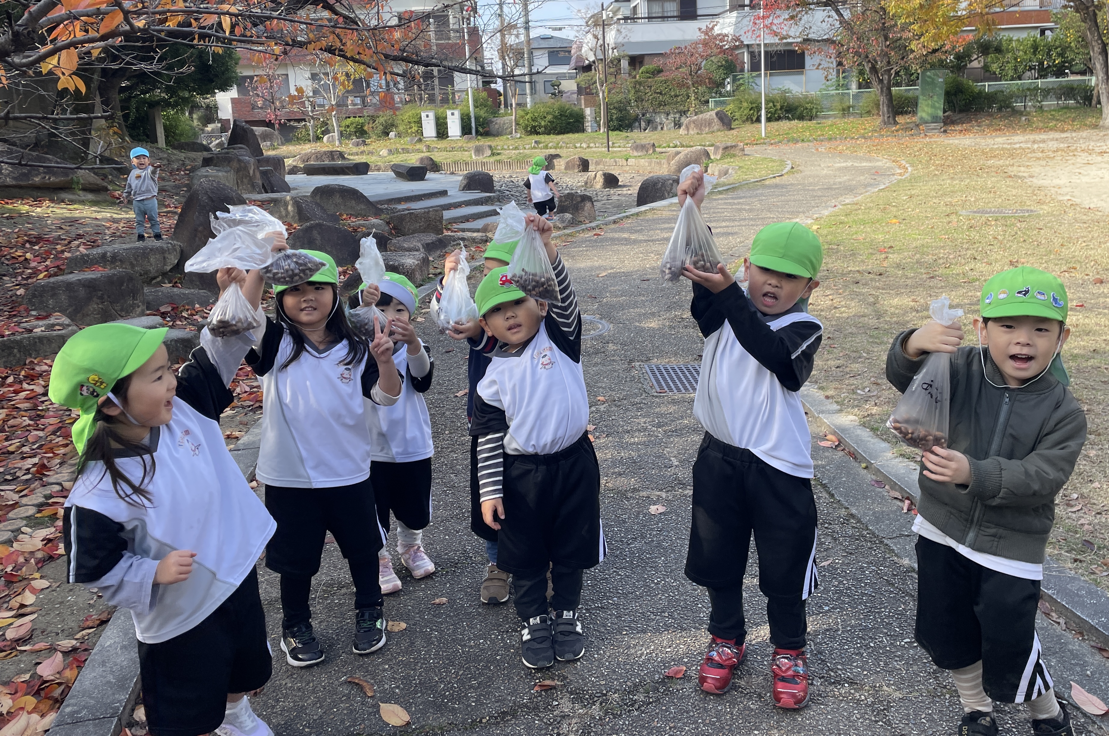 後半はドングリ拾いに夢中でせんせー!袋ちょうだい!!と沢山集めて満足した子どもたちでしたよ✨