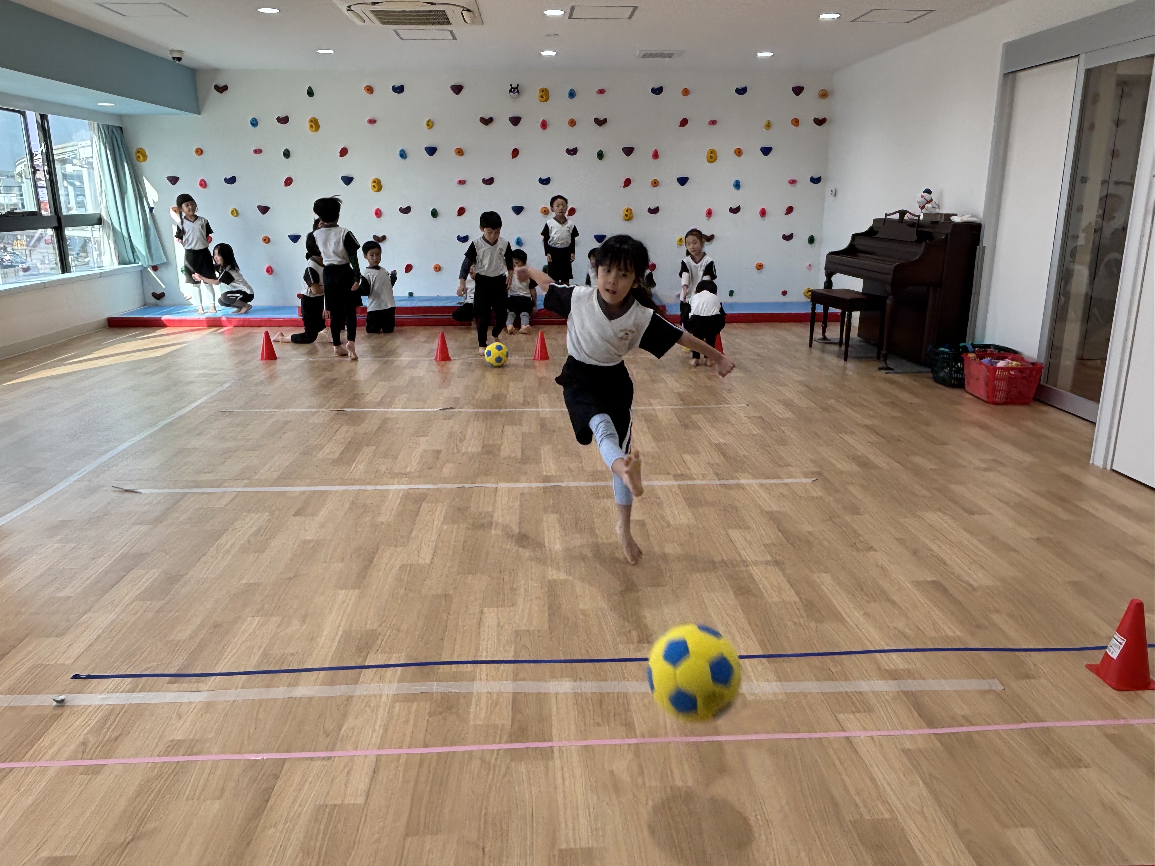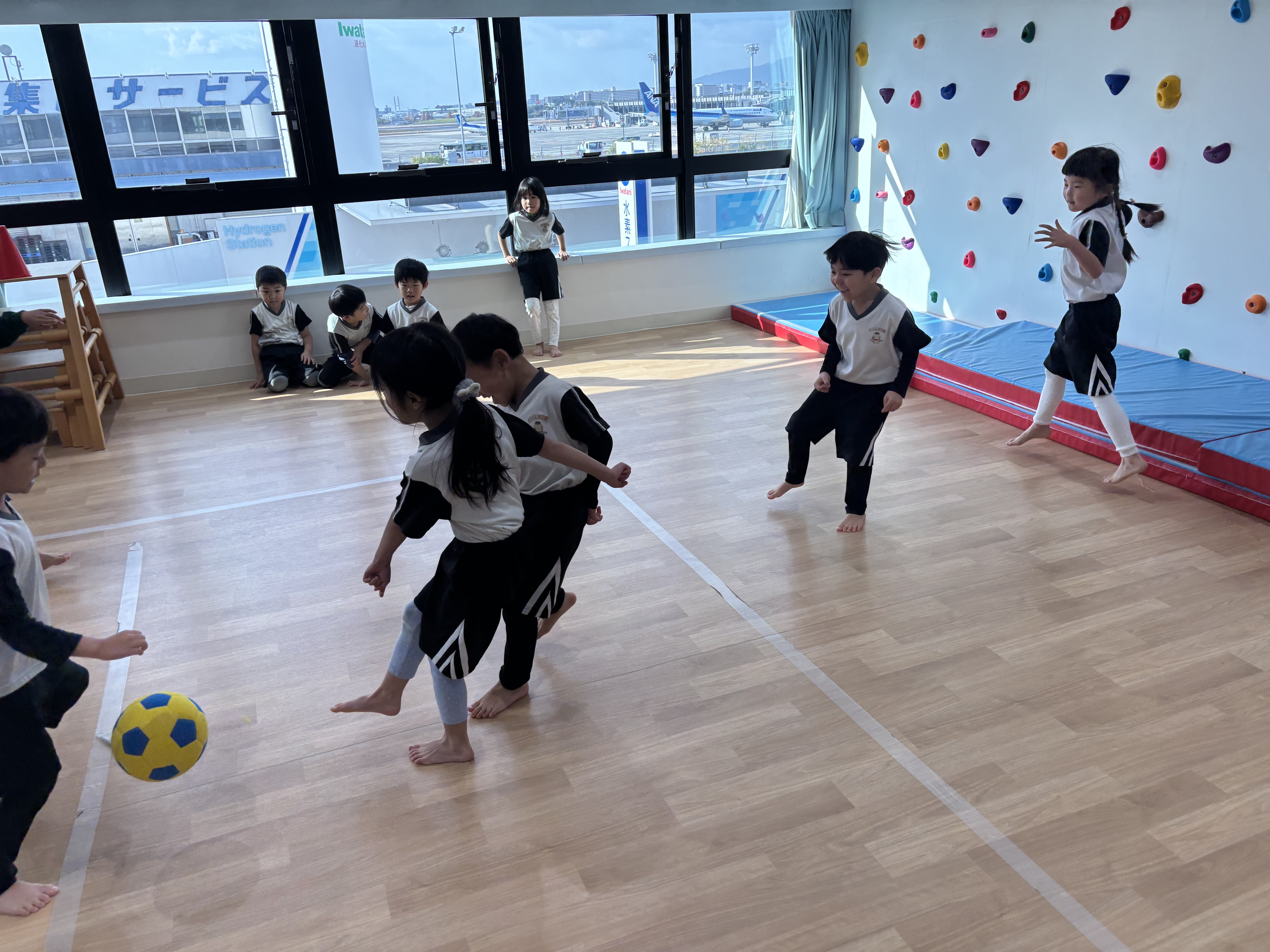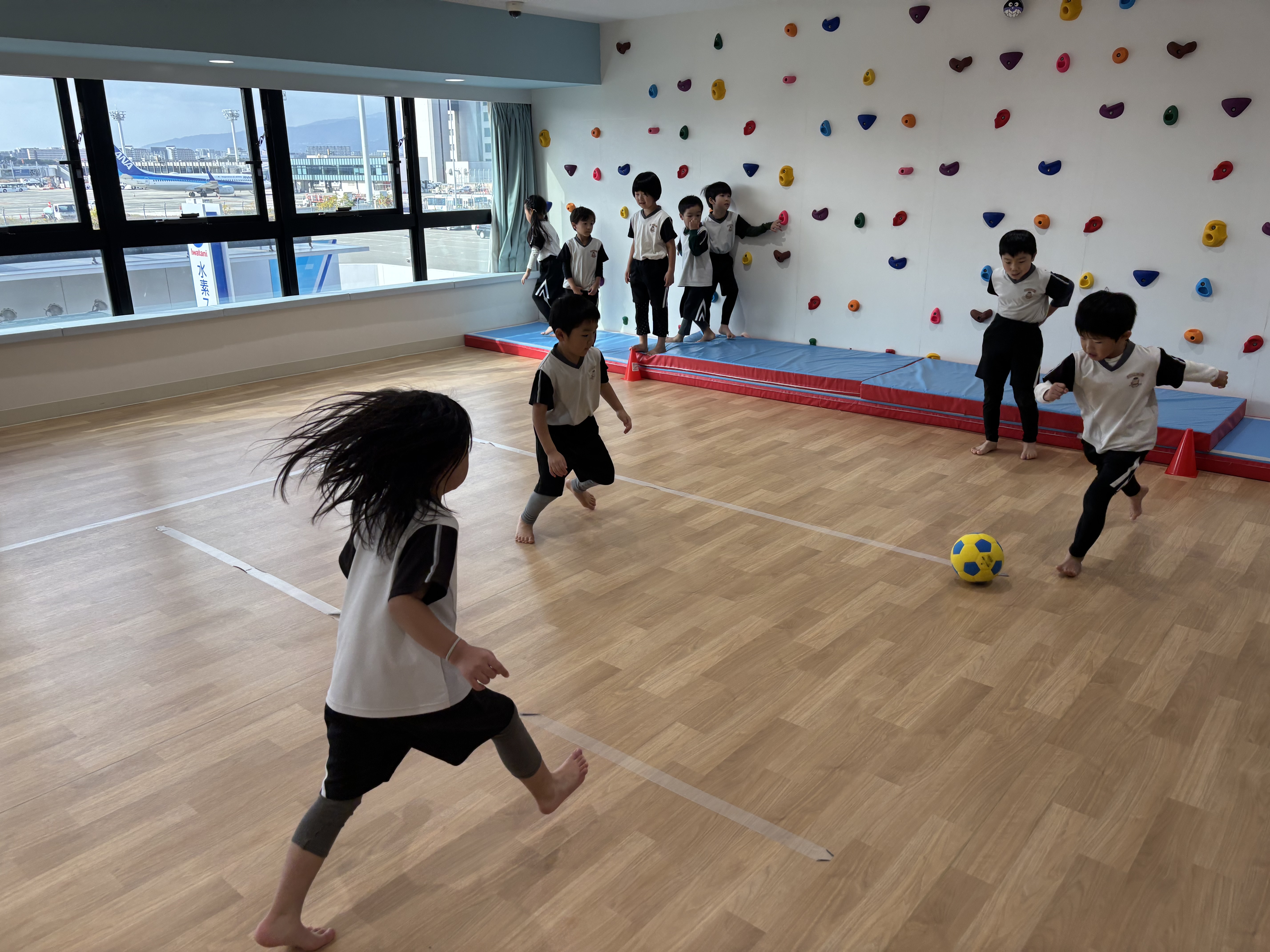 そして今日は体操がお休みなので、ホールでサッカーをしました。