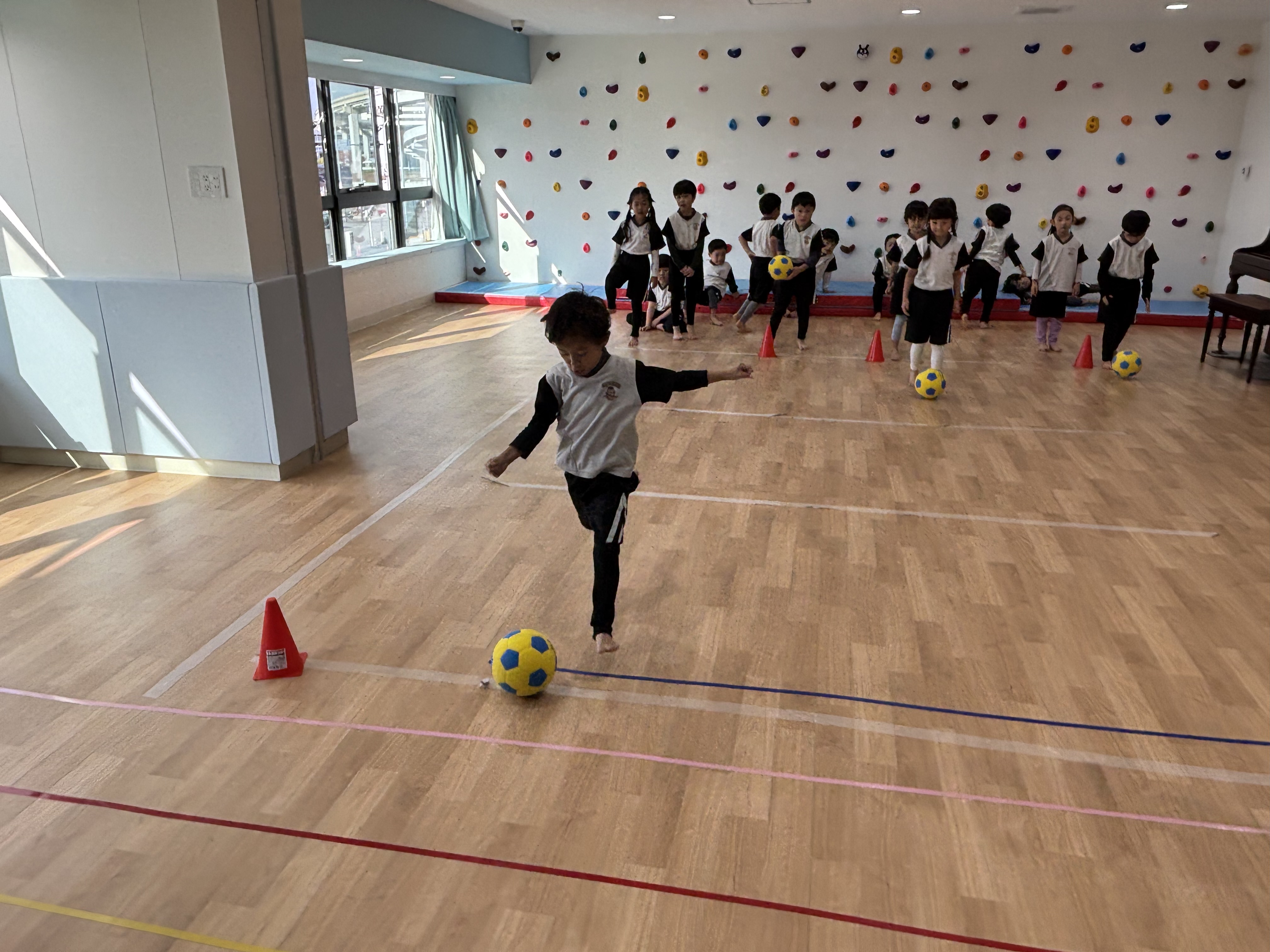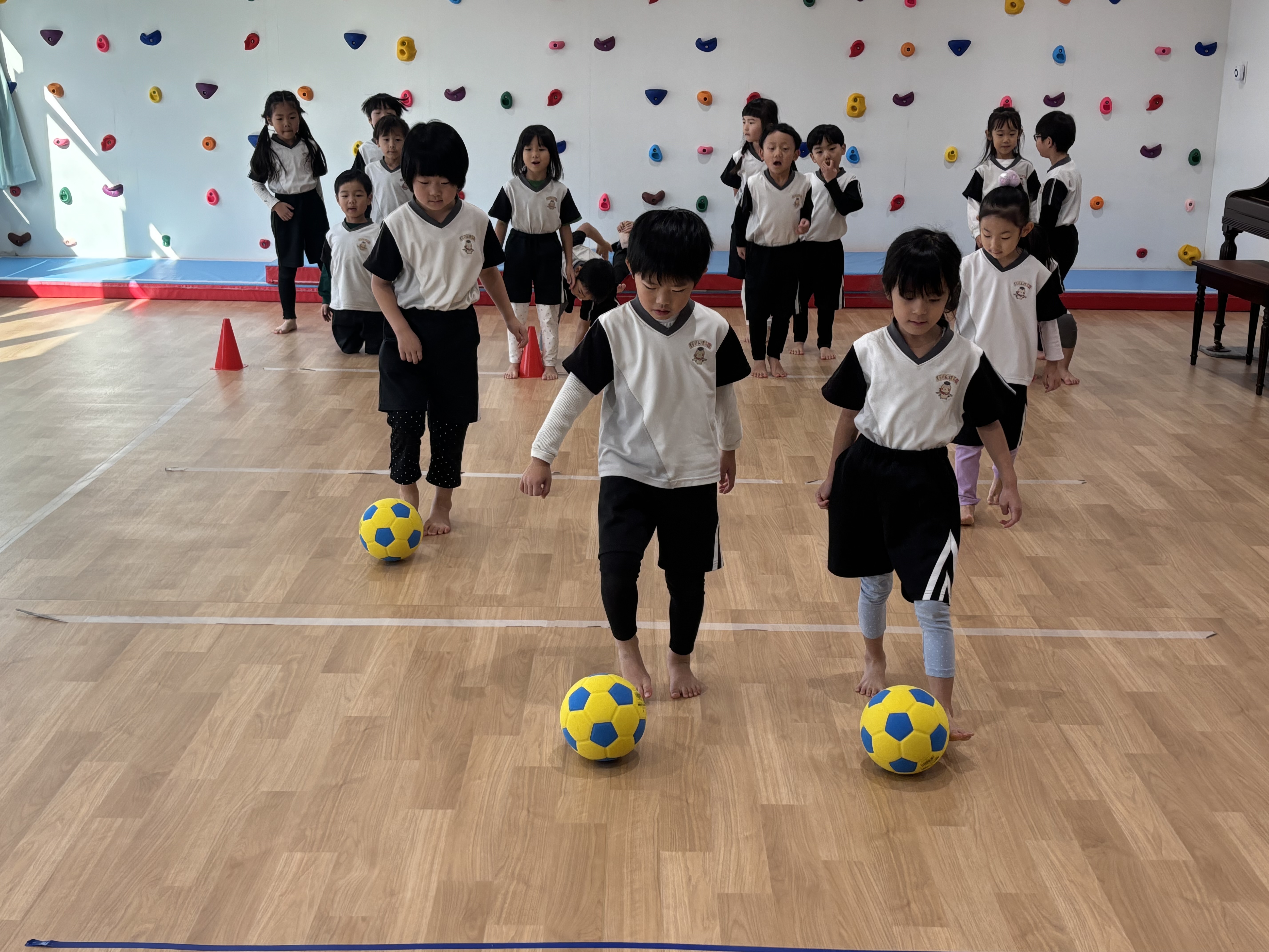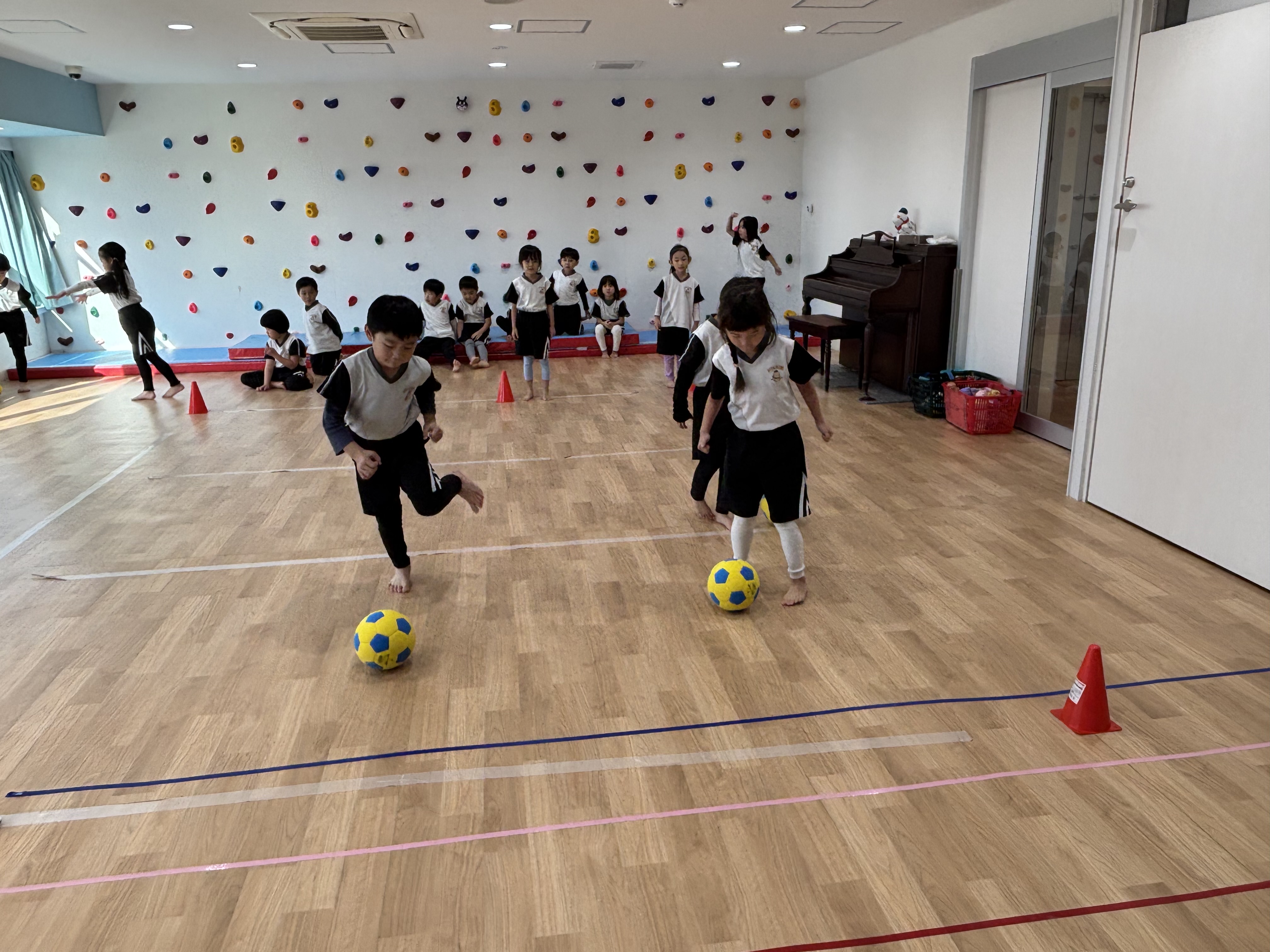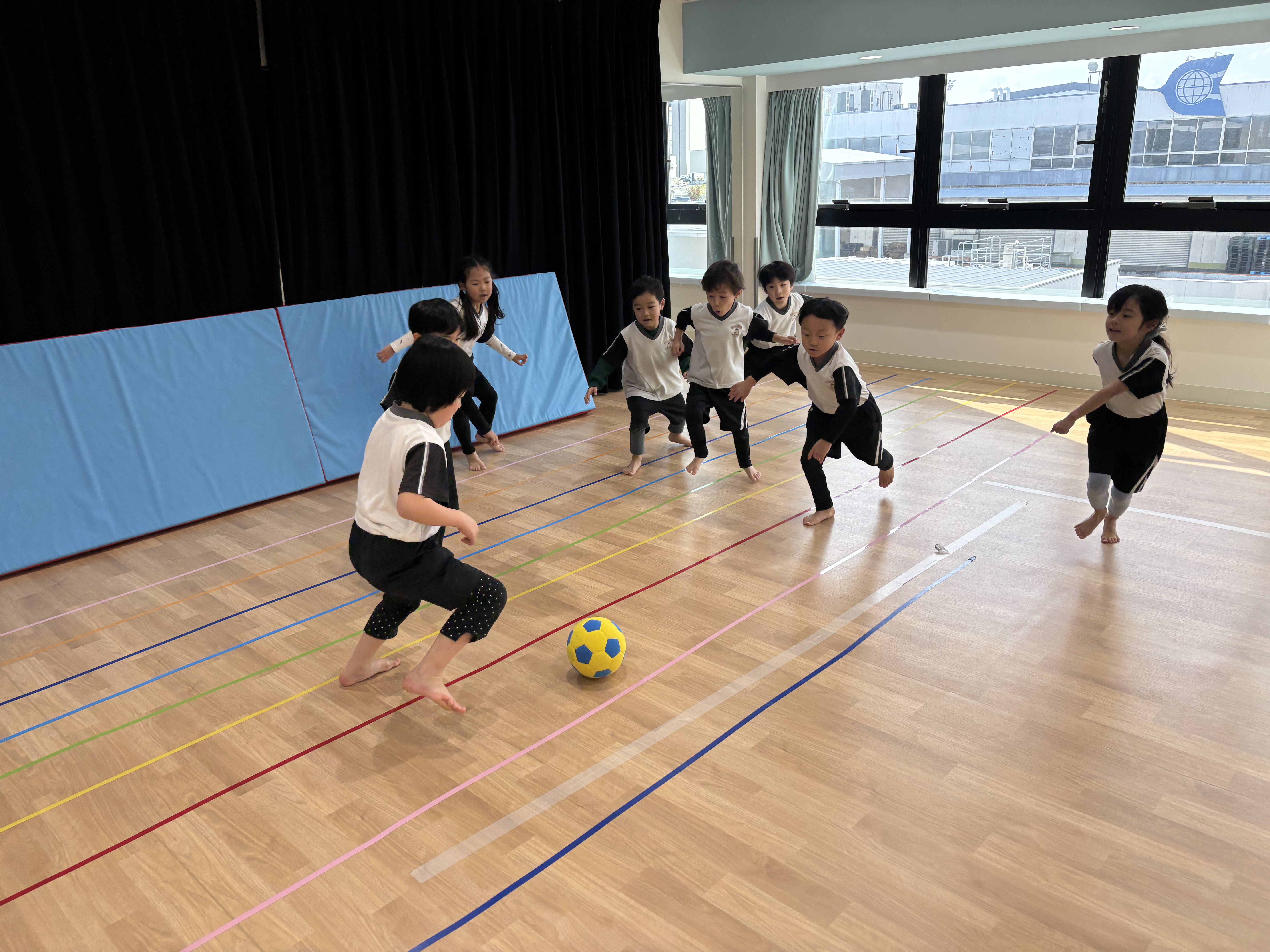 そして今日は体操がお休みなので、ホールでサッカーをしました。